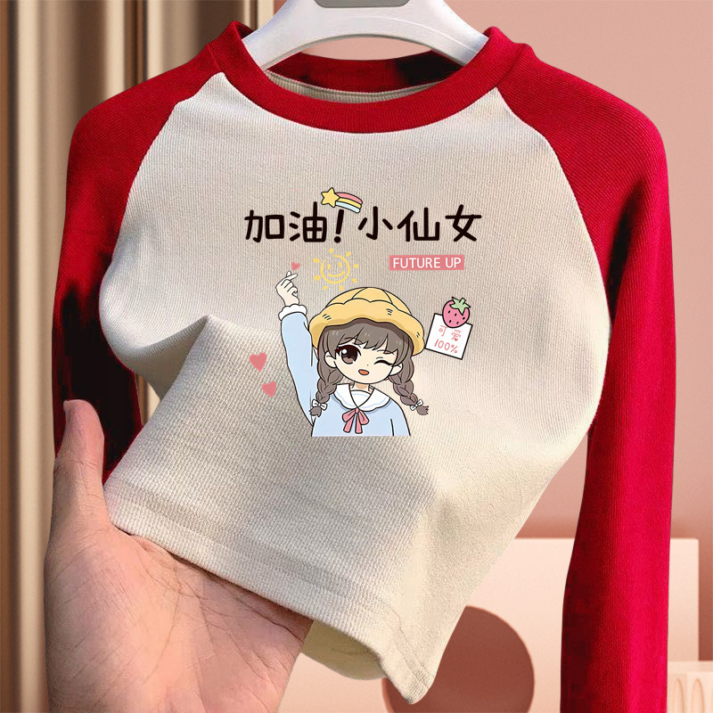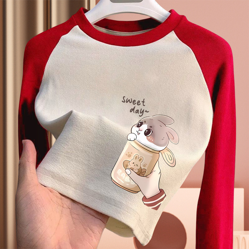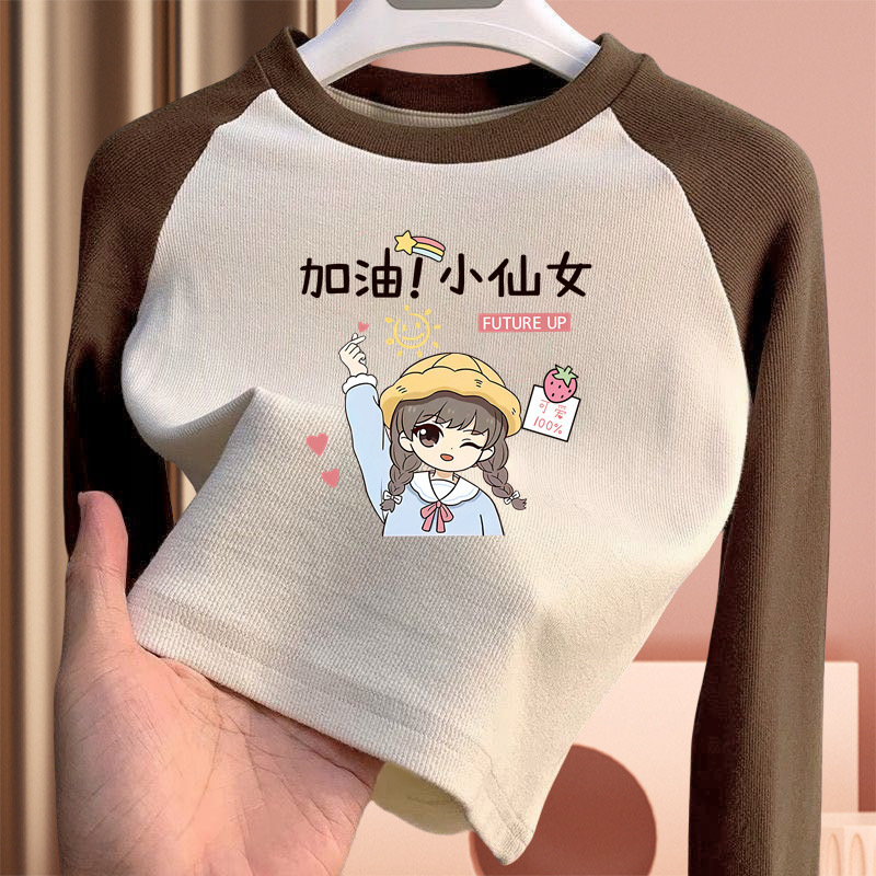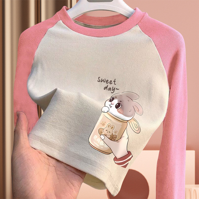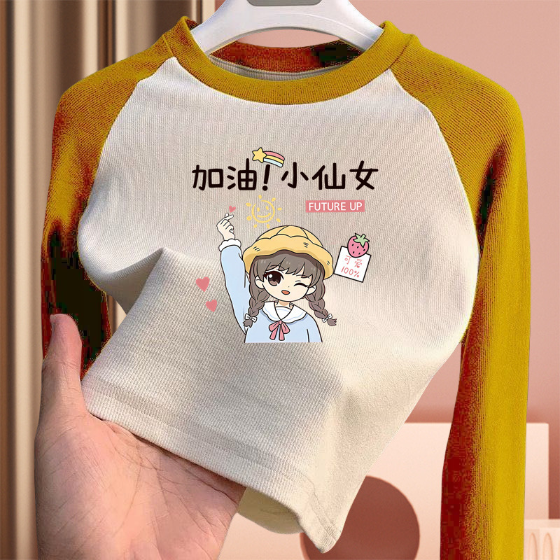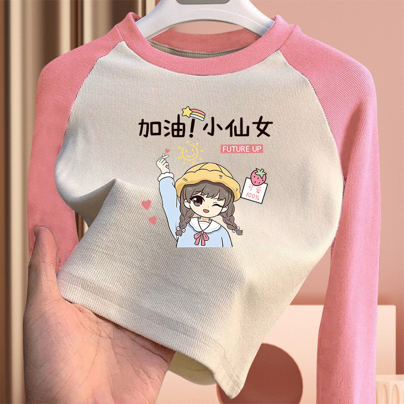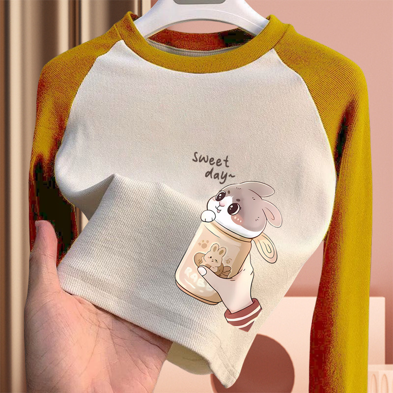 어린이 귀여운 만화 따뜻한 내부 착용 어린이 소녀 가을 및 겨울 백업 셔츠 드 벨벳 긴 소매 티셔츠 대외 무역 도매스토어 가기