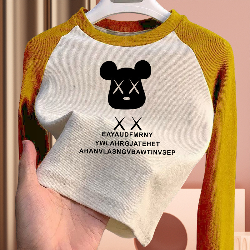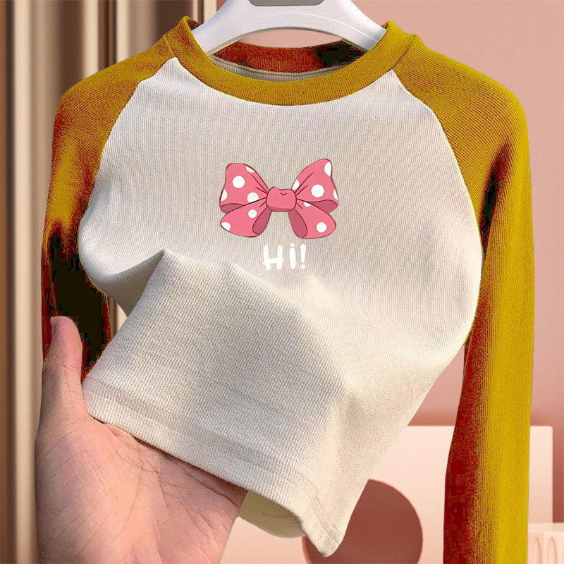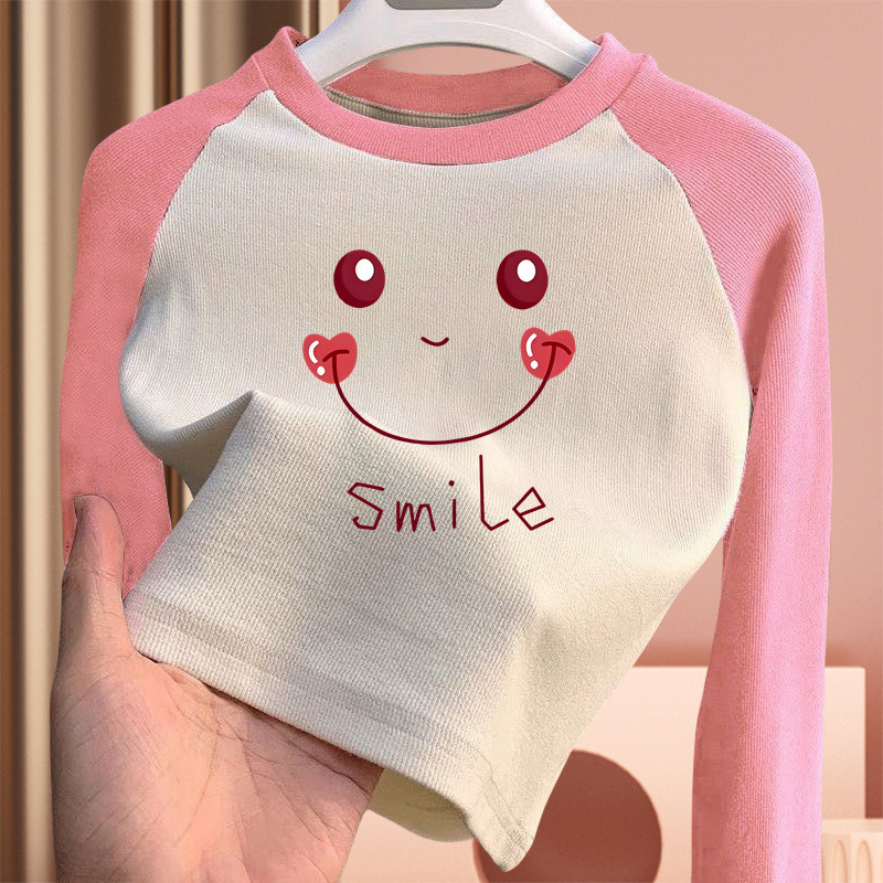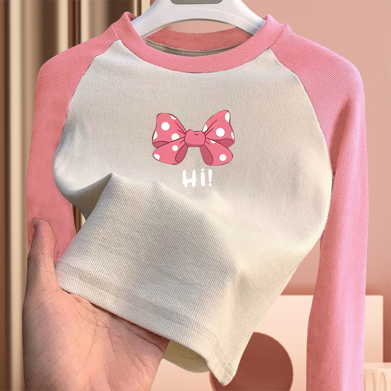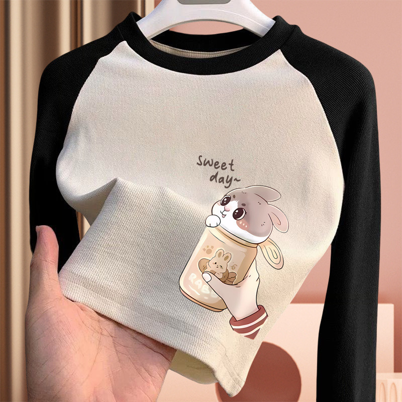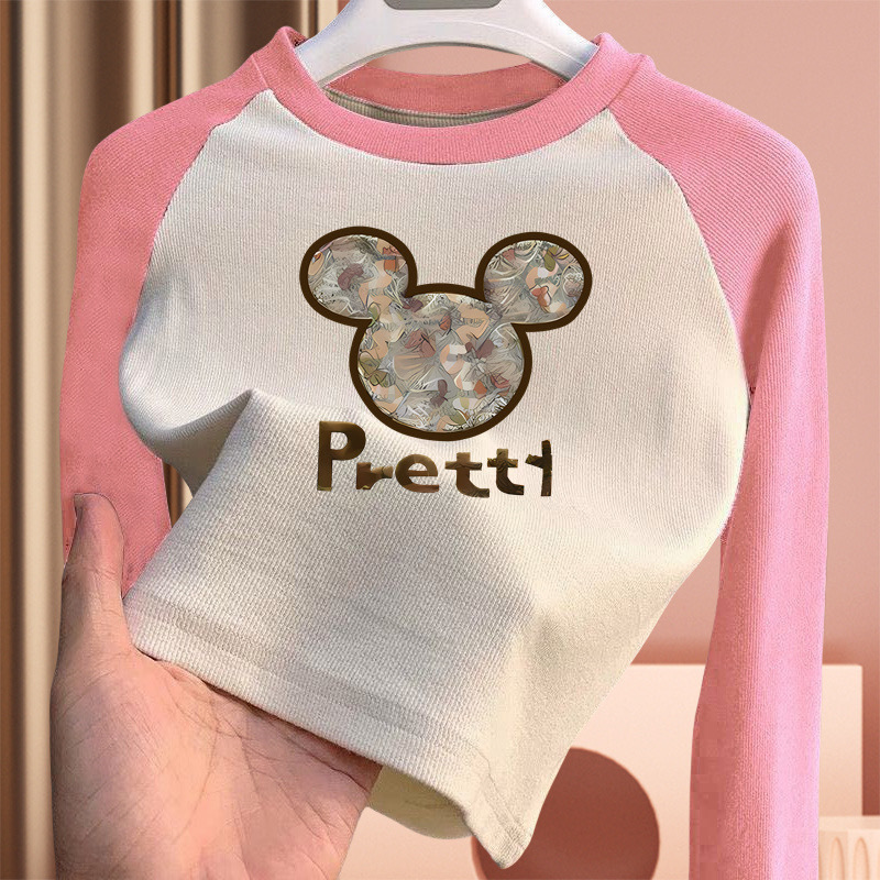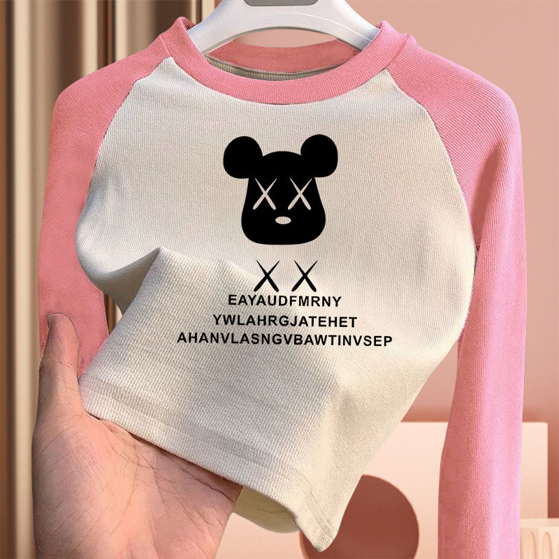 어린이 귀여운 만화 따뜻한 내부 착용 어린이 소녀 가을 및 겨울 백업 셔츠 드 벨벳 긴 소매 티셔츠 대외 무역 도매스토어 가기