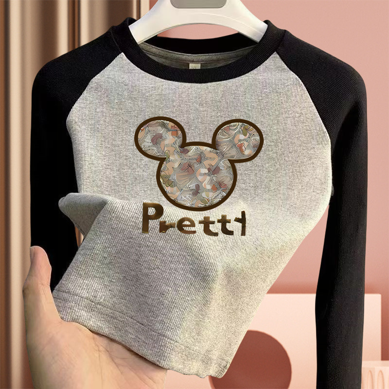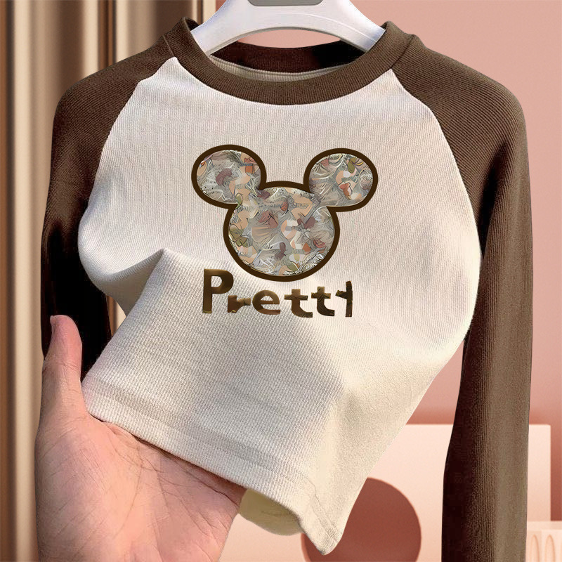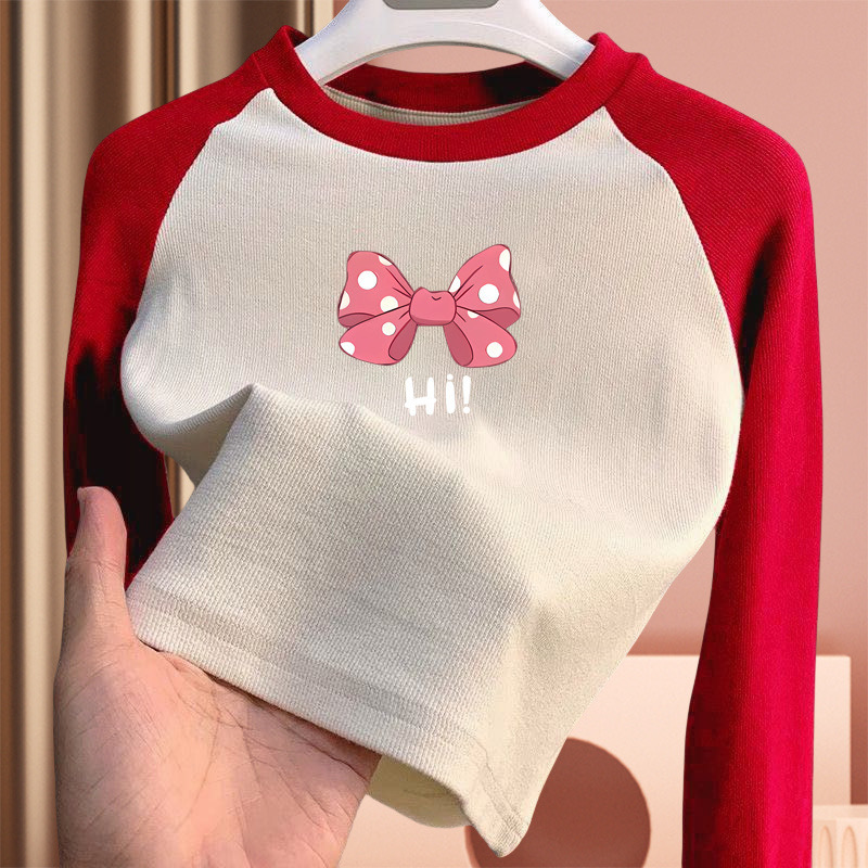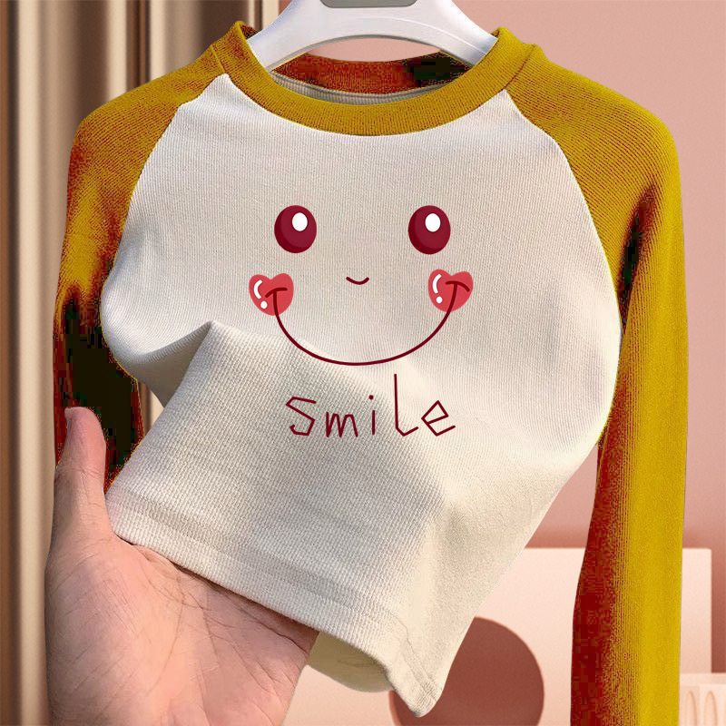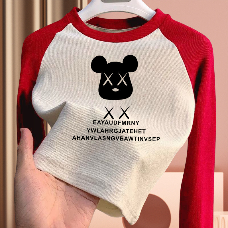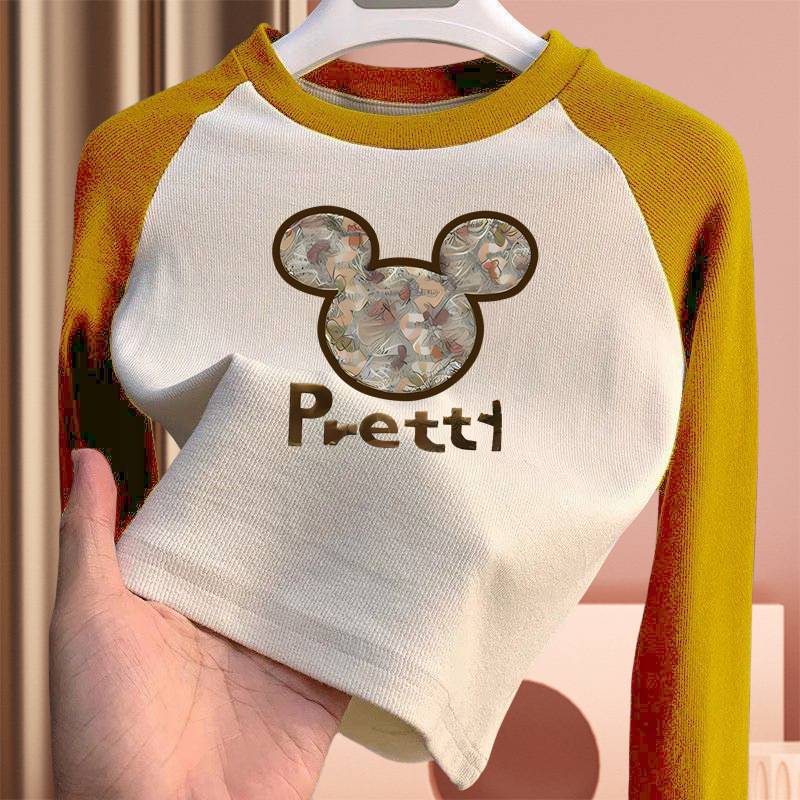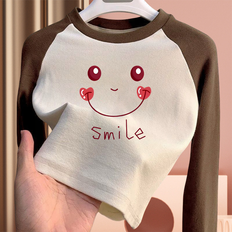 어린이 귀여운 만화 따뜻한 내부 착용 어린이 소녀 가을 및 겨울 백업 셔츠 드 벨벳 긴 소매 티셔츠 대외 무역 도매스토어 가기
