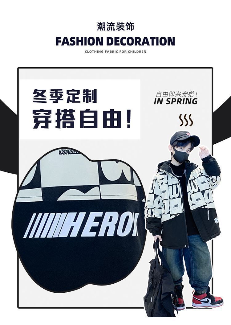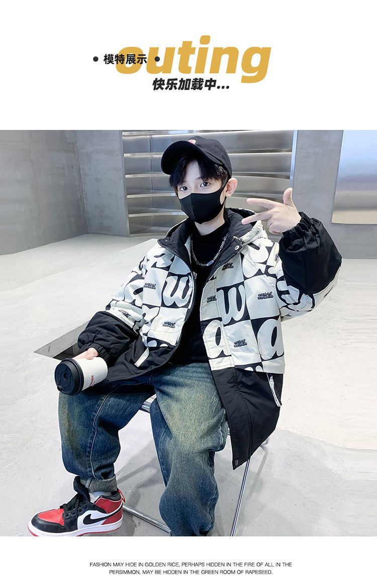 가을과 겨울 면화 패딩 의류 2023 새로운 스타일 소년 겨울 중간 및 대형 어린이 면화 패딩 재킷 따뜻한 서양식 스타일을위한 인쇄 된면 패딩 재킷
