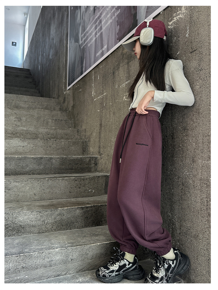 여자 기모 바지 2024 겨울 새로운 큰 어린이 유행 서양식 거리 댄스 레저 스포츠 바지 어린이 두꺼운 바지스토어 가기