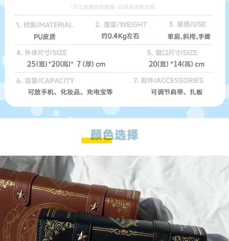 이차원 계약 마법책 투명 숄더백/크로스백 여성용 가방, 데일리용으로 다양하게 활용 가능, 대용량 학생 가방