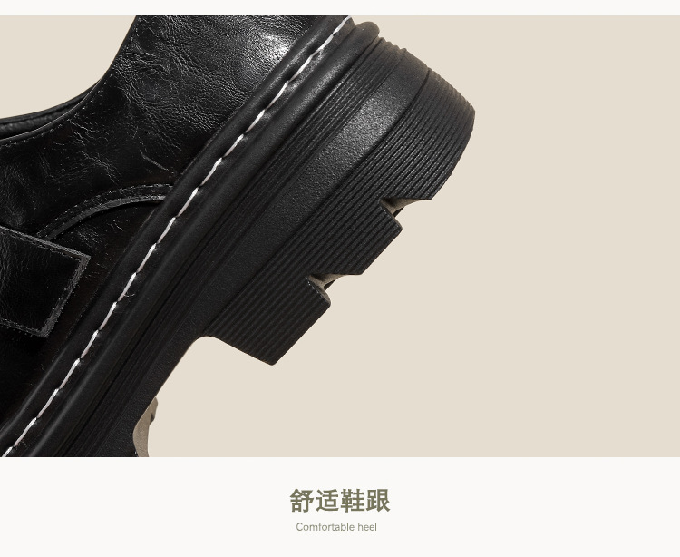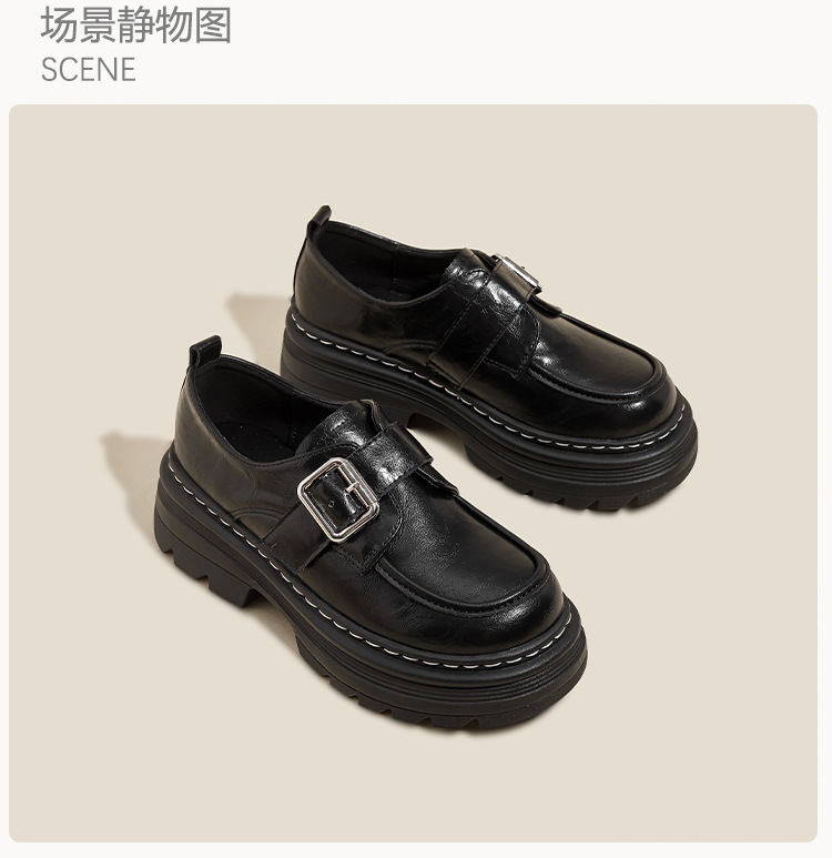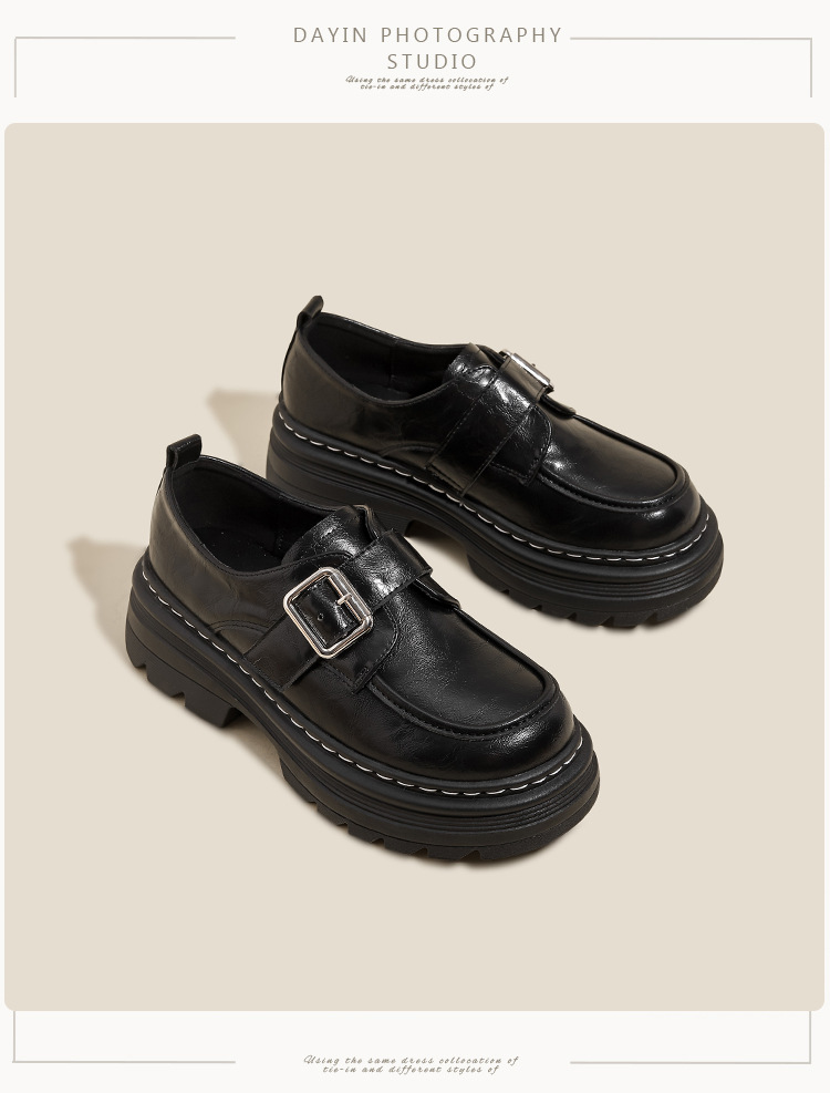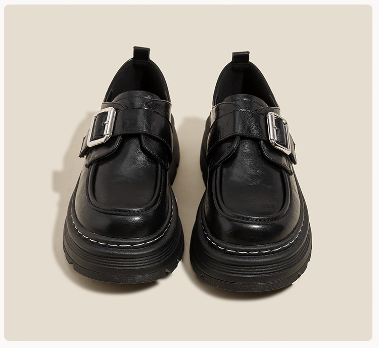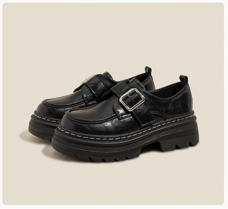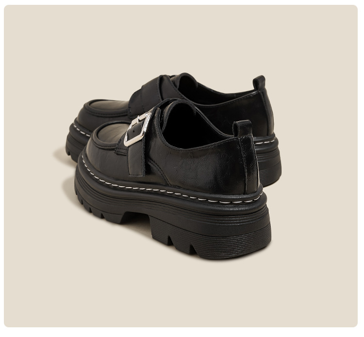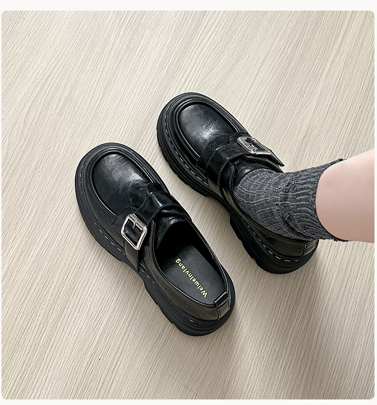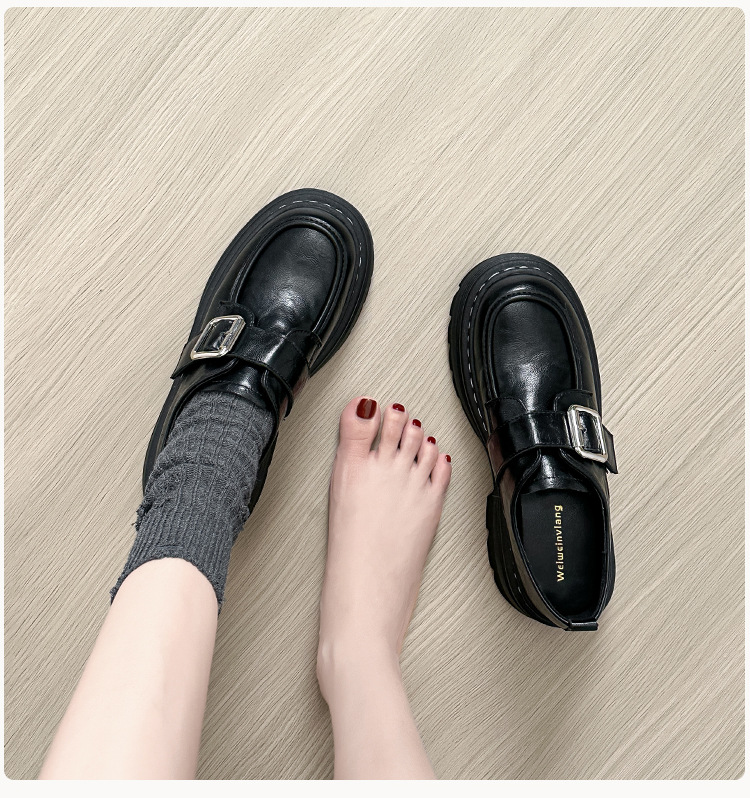 Weiwei 소녀 1388-2 두꺼운 바닥 로퍼 여성의 가을과 겨울 한 단어 버클 레트로 작은 가죽 신발 대학 스타일 싱글 신발스토어 가기
