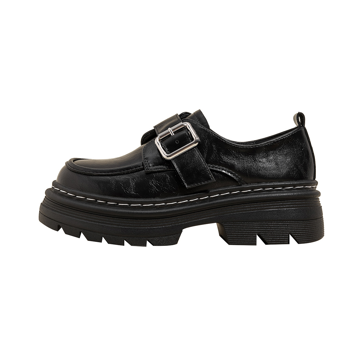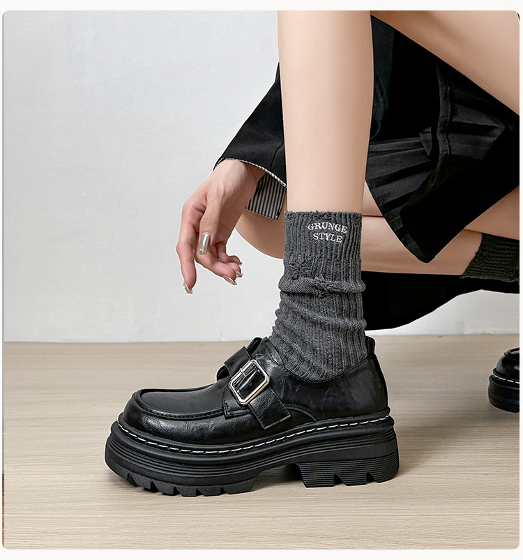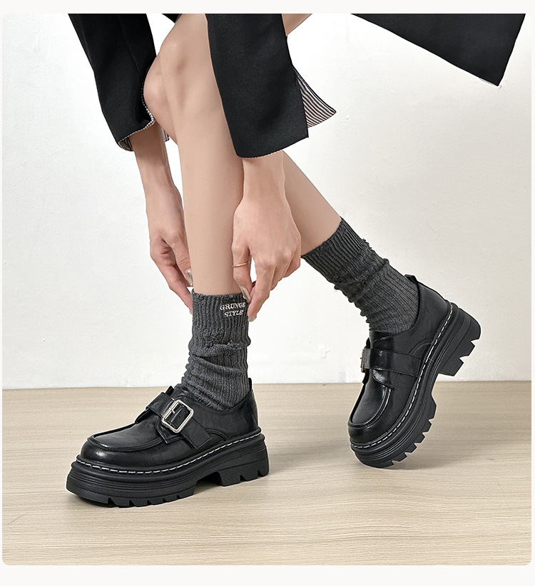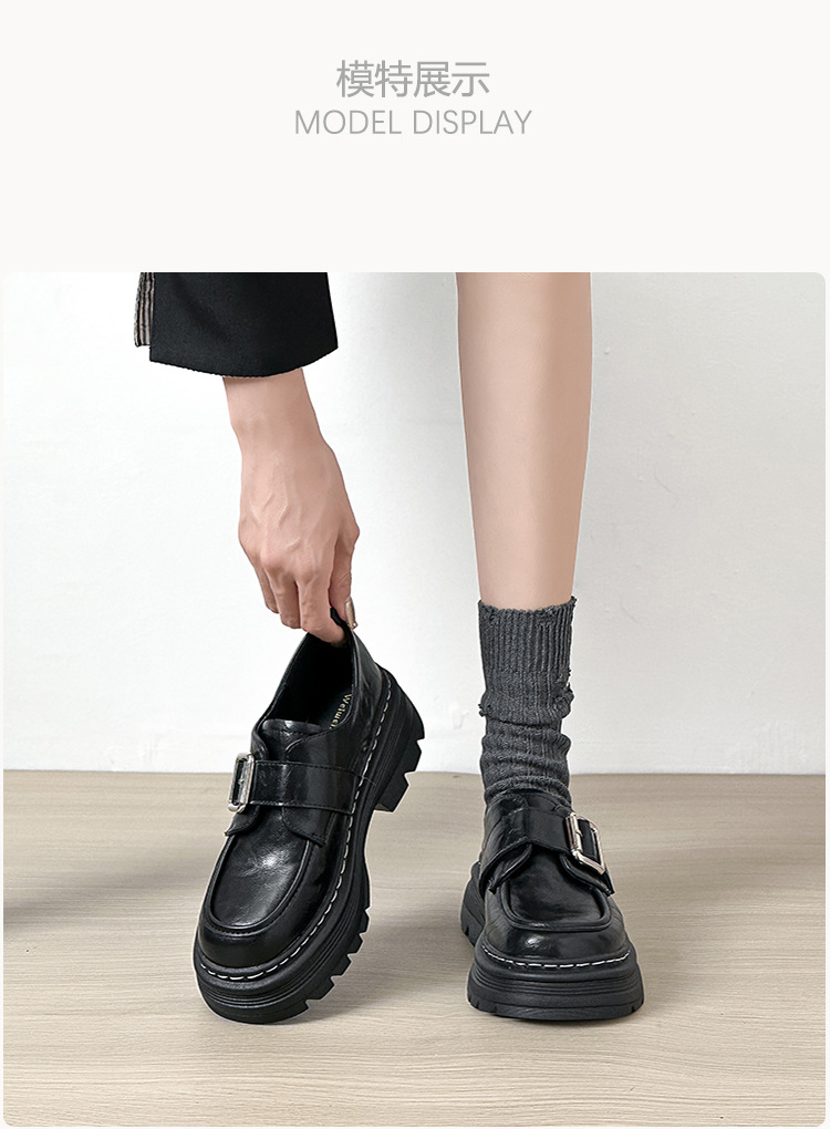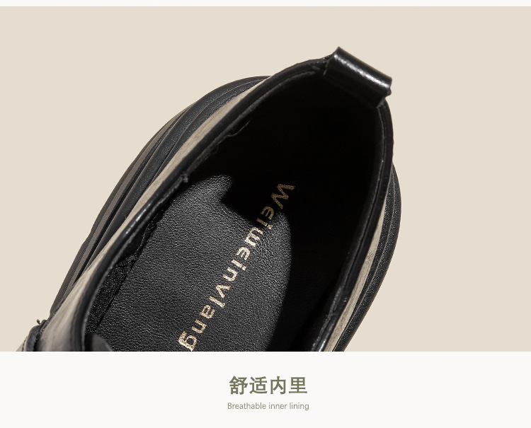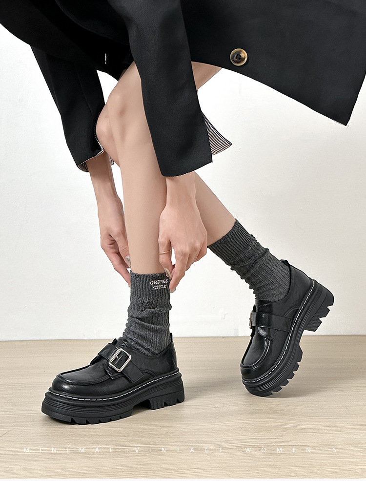 Weiwei 소녀 1388-2 두꺼운 바닥 로퍼 여성의 가을과 겨울 한 단어 버클 레트로 작은 가죽 신발 대학 스타일 싱글 신발스토어 가기