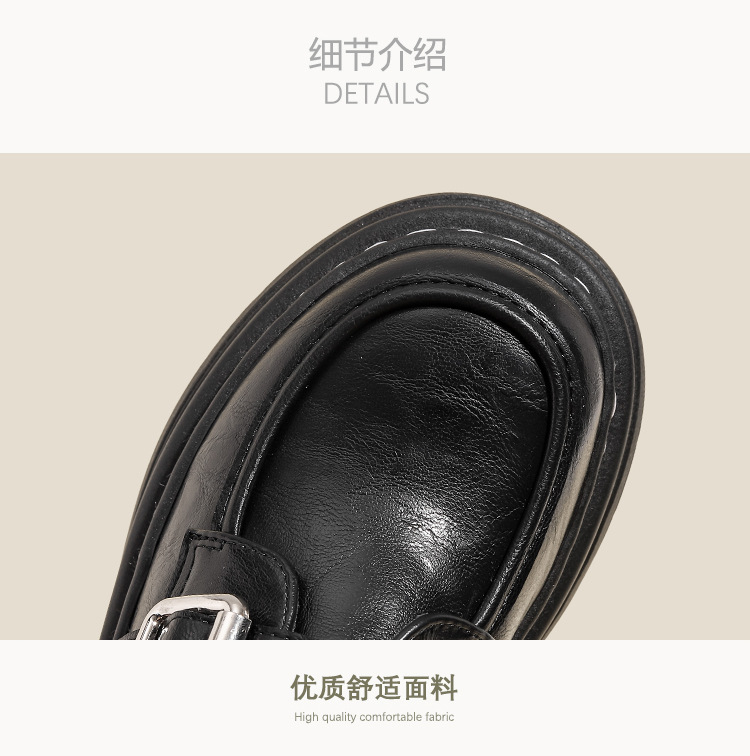 Weiwei 소녀 1388-2 두꺼운 바닥 로퍼 여성의 가을과 겨울 한 단어 버클 레트로 작은 가죽 신발 대학 스타일 싱글 신발