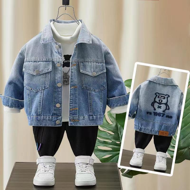 남학생의 봄 · 가을 데님 코트 2023 새 중소형 어린이 점진적 변화 잘 생긴 남학생 코트 청바지스토어 가기