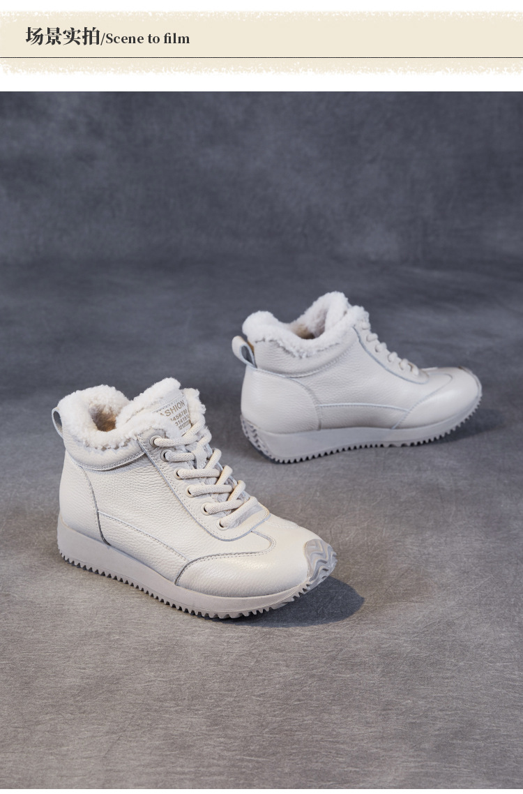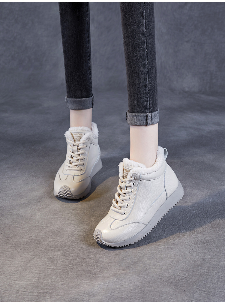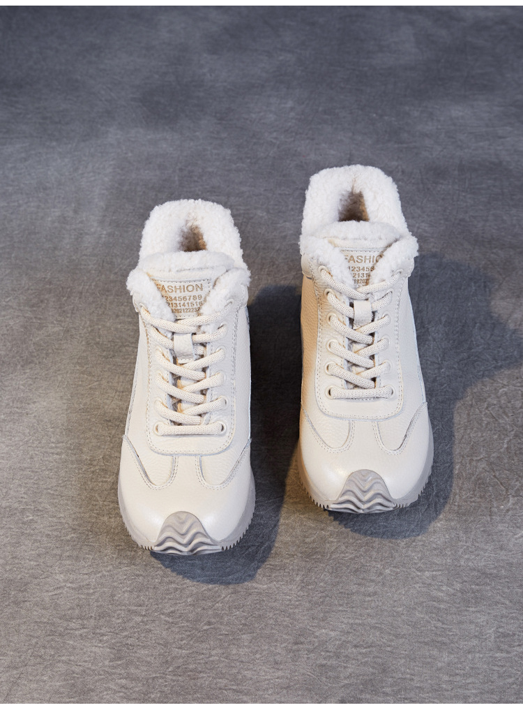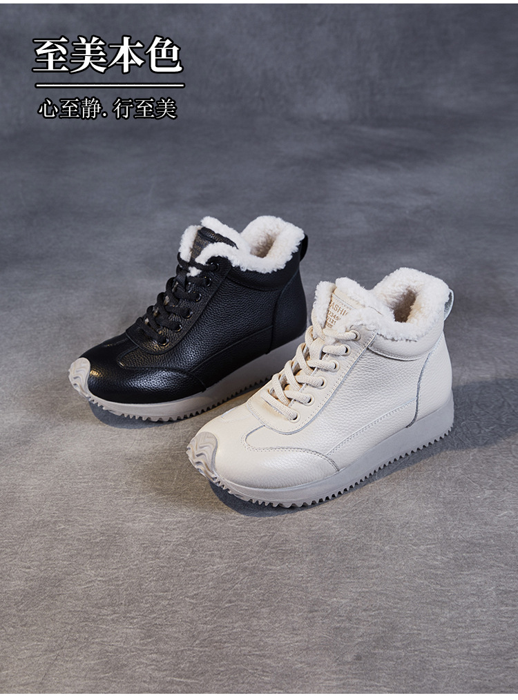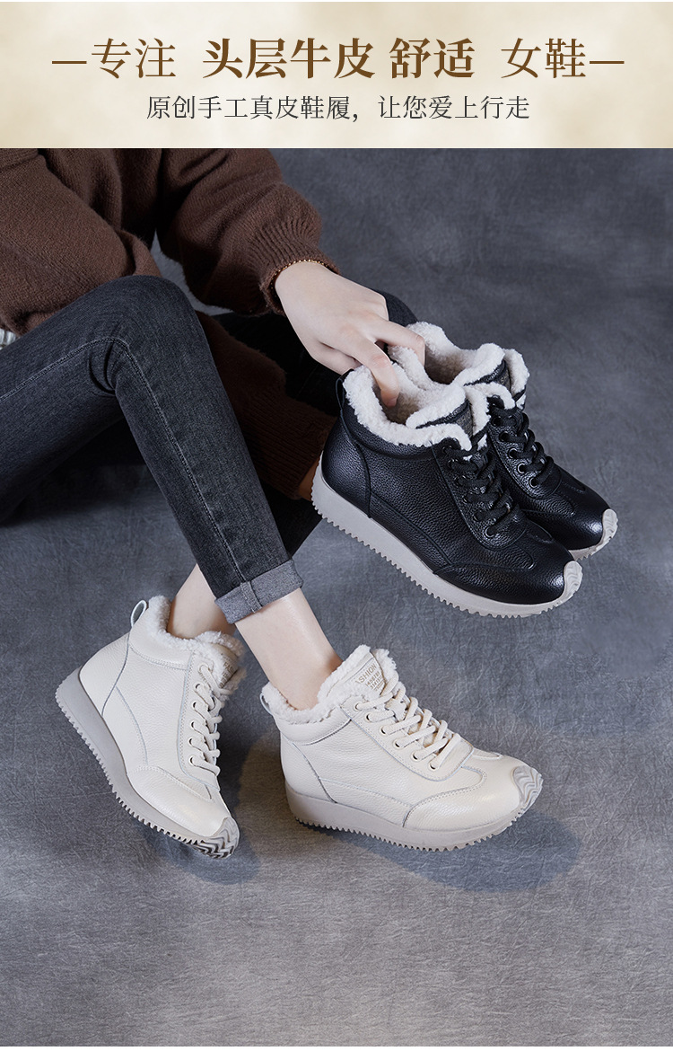 소가죽 복고풍 하이 탑 기모 따뜻한 포레스트 검프 신발 2024 가을과 겨울의 새로운 부드러운 울 입 스포츠 캐주얼 슈즈의 첫 번째 레이어