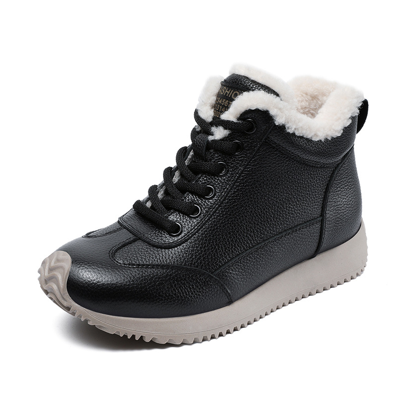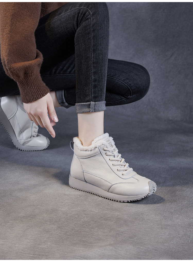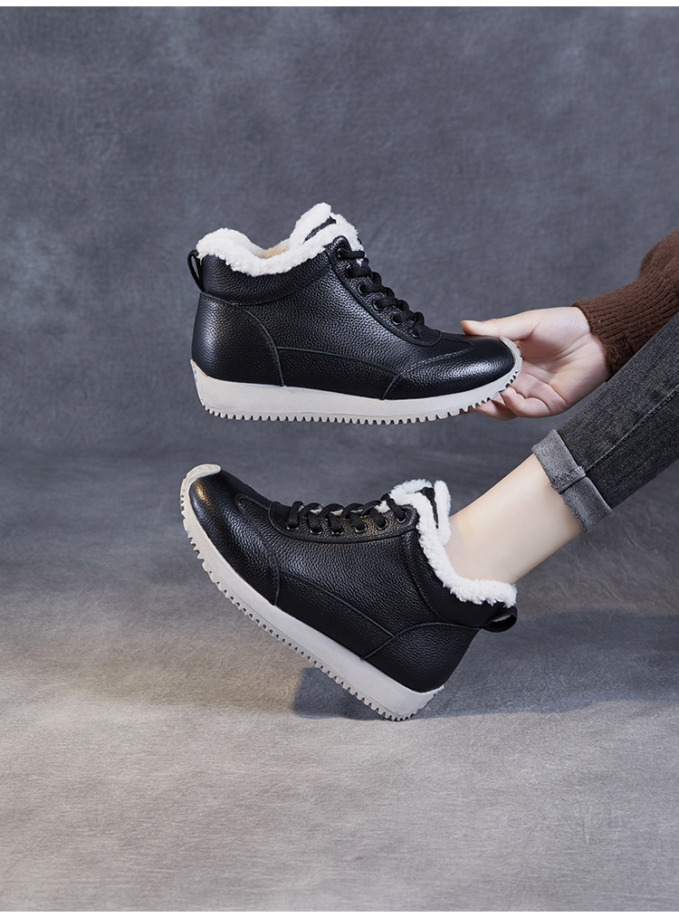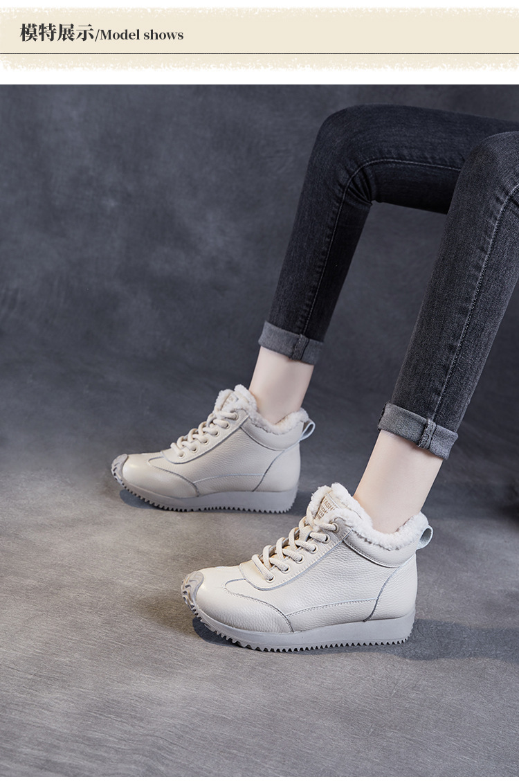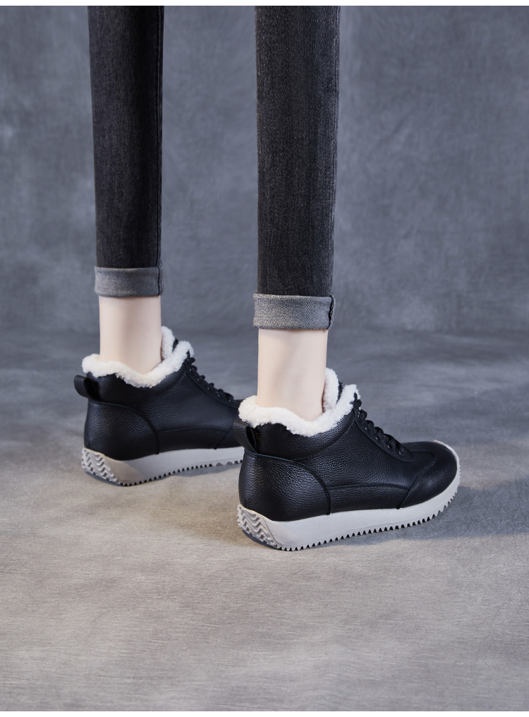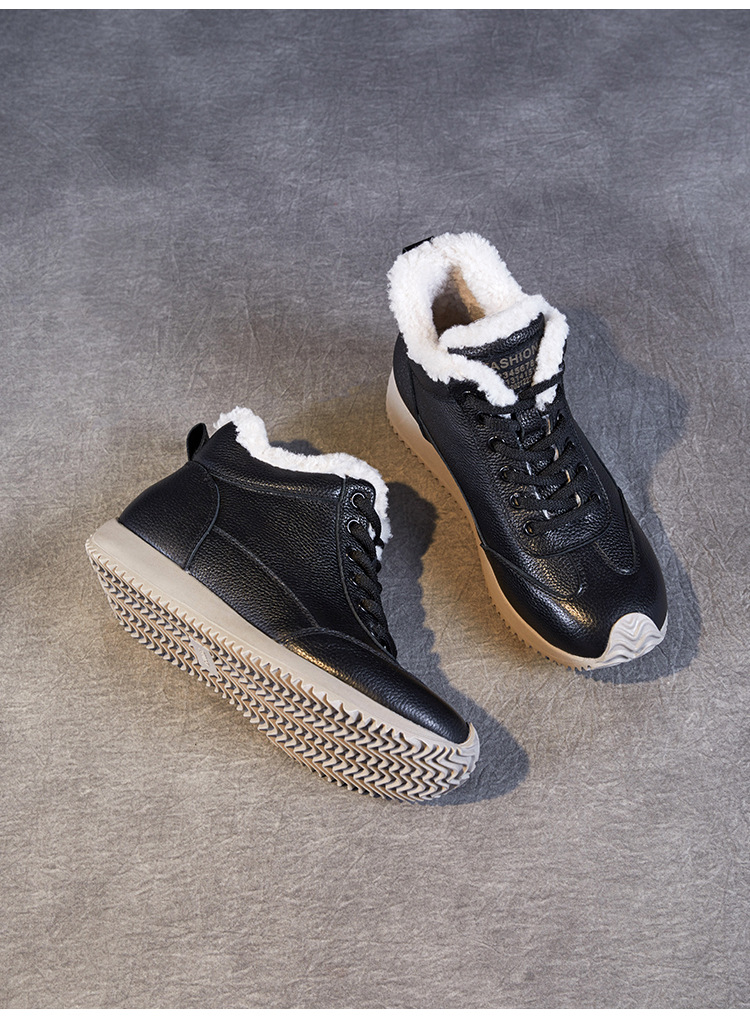 소가죽 복고풍 하이 탑 기모 따뜻한 포레스트 검프 신발 2024 가을과 겨울의 새로운 부드러운 울 입 스포츠 캐주얼 슈즈의 첫 번째 레이어