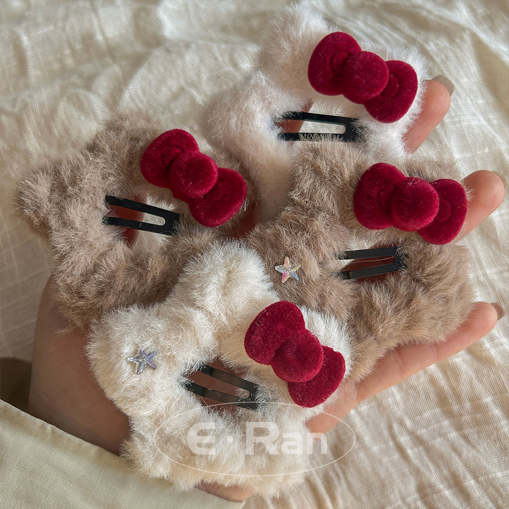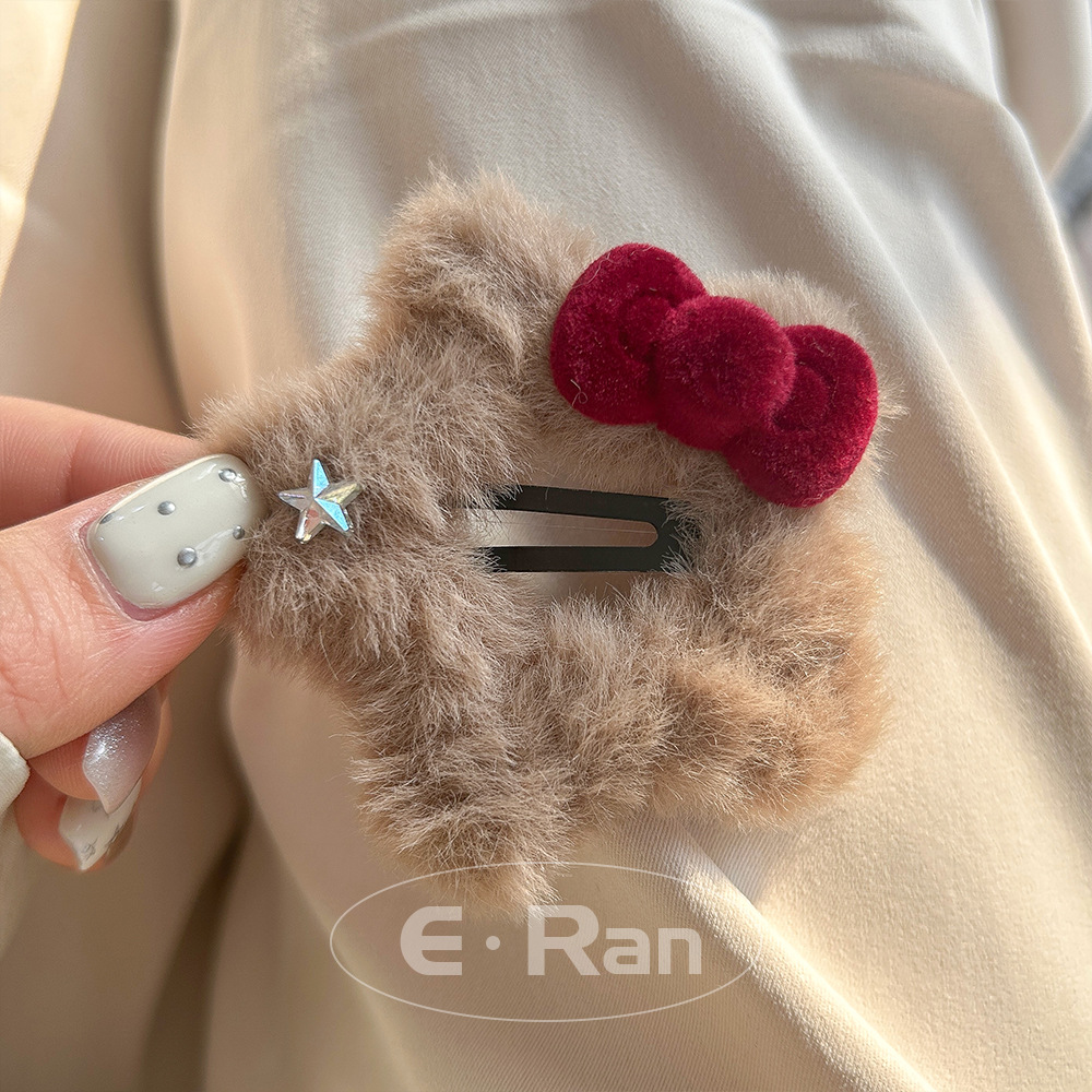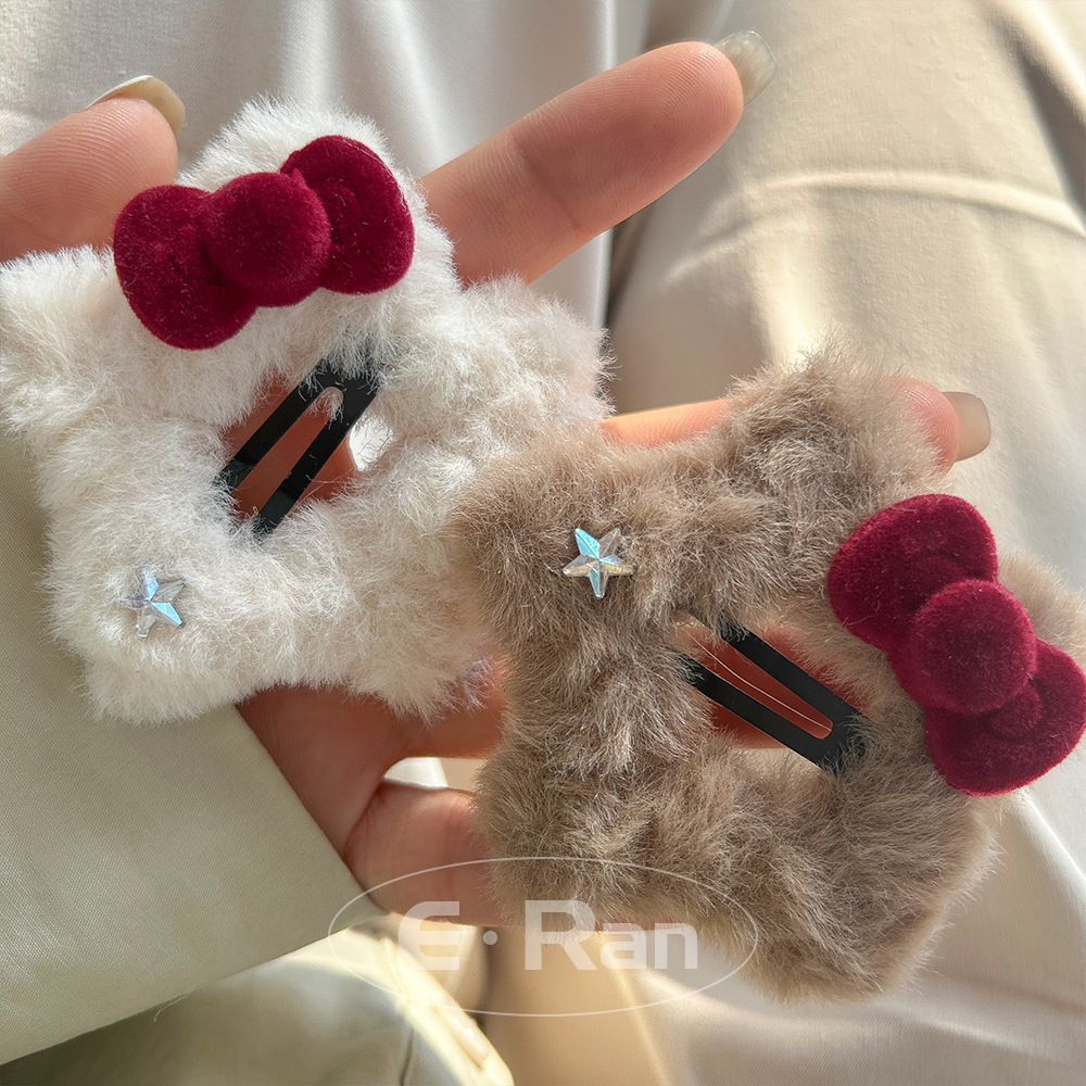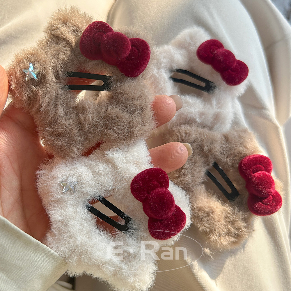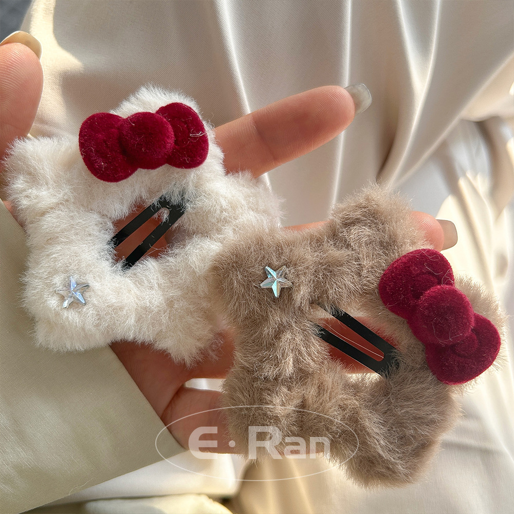 모피 다섯개 별 BB 클립 버건디 활 머리핀 소녀의 달콤한 심장 가을과 겨울 봉제 스타 헤드웨어