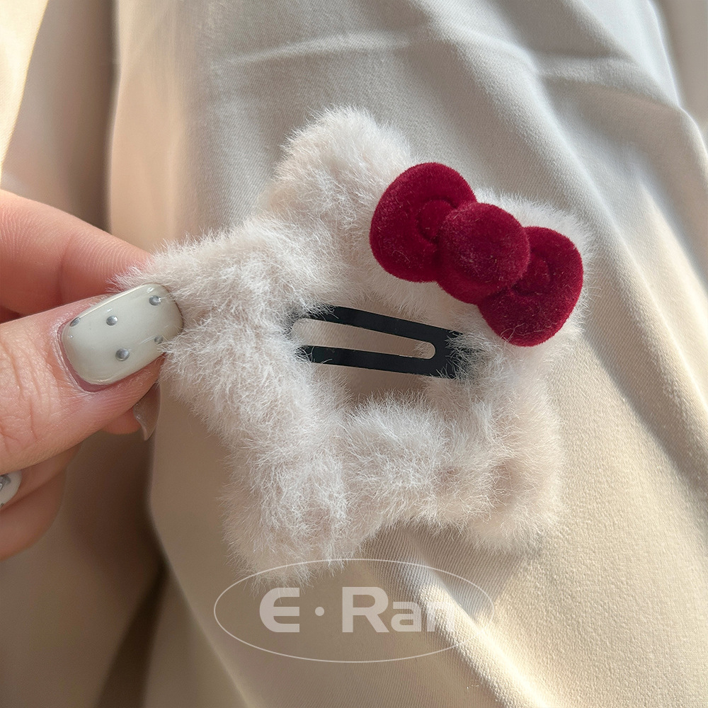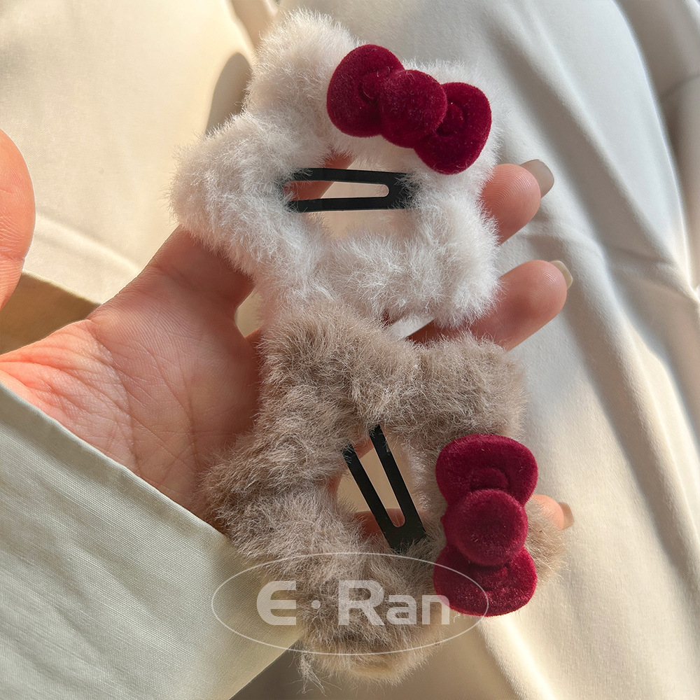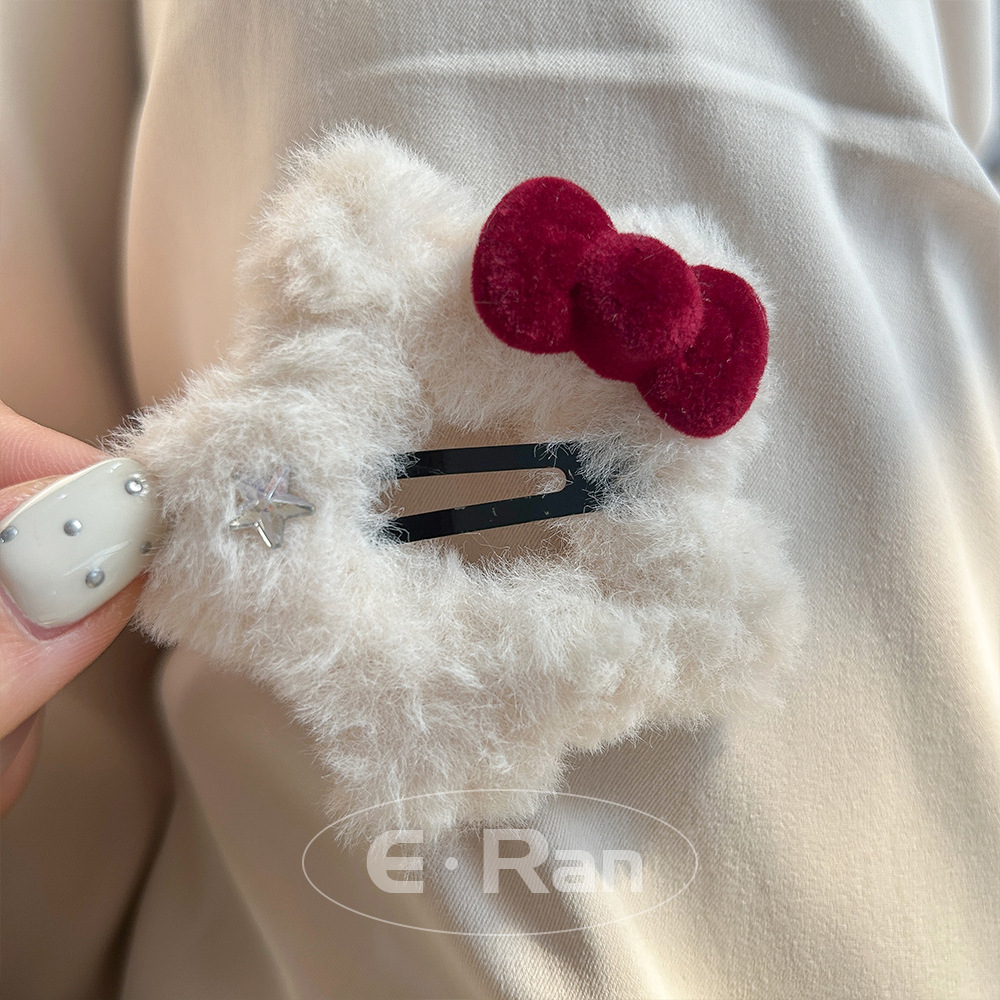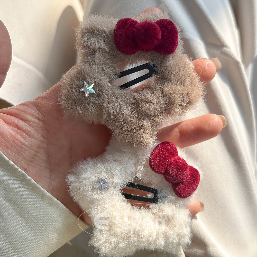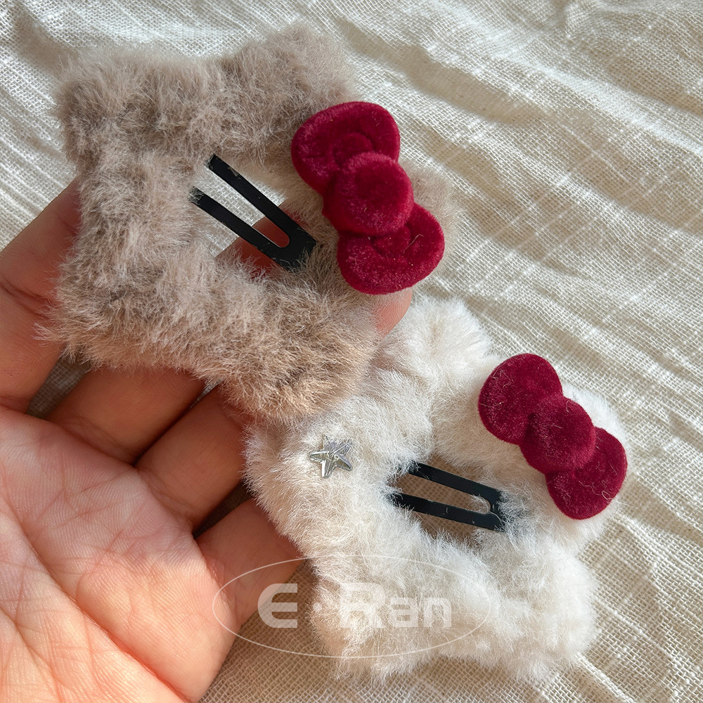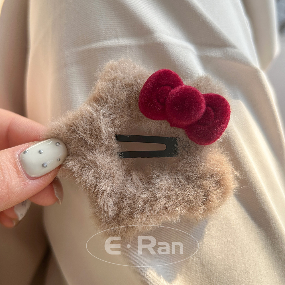 모피 다섯개 별 BB 클립 버건디 활 머리핀 소녀의 달콤한 심장 가을과 겨울 봉제 스타 헤드웨어