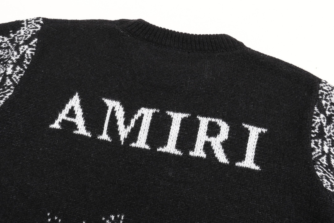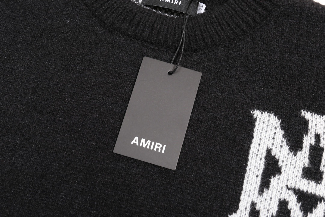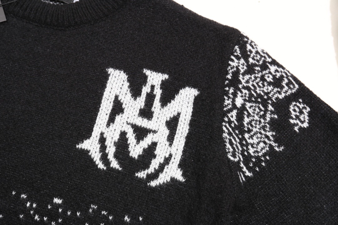 AMIRI 패션 브랜드 24ss 가을과 겨울 새로운 편지 자수 자카드 Hiphorse 헤어 크루 넥 풀오버 스웨터 남성과 여성스토어 가기