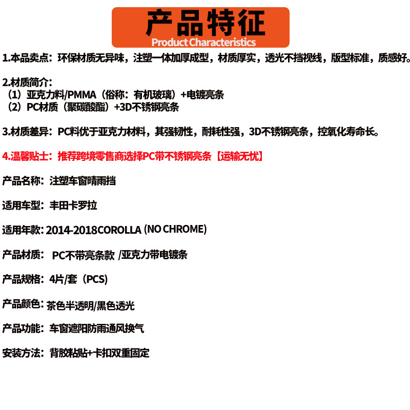 Toyota Corolla 레인 브로우 2014-18toyotacorollaWindowvisor 방수에 적합