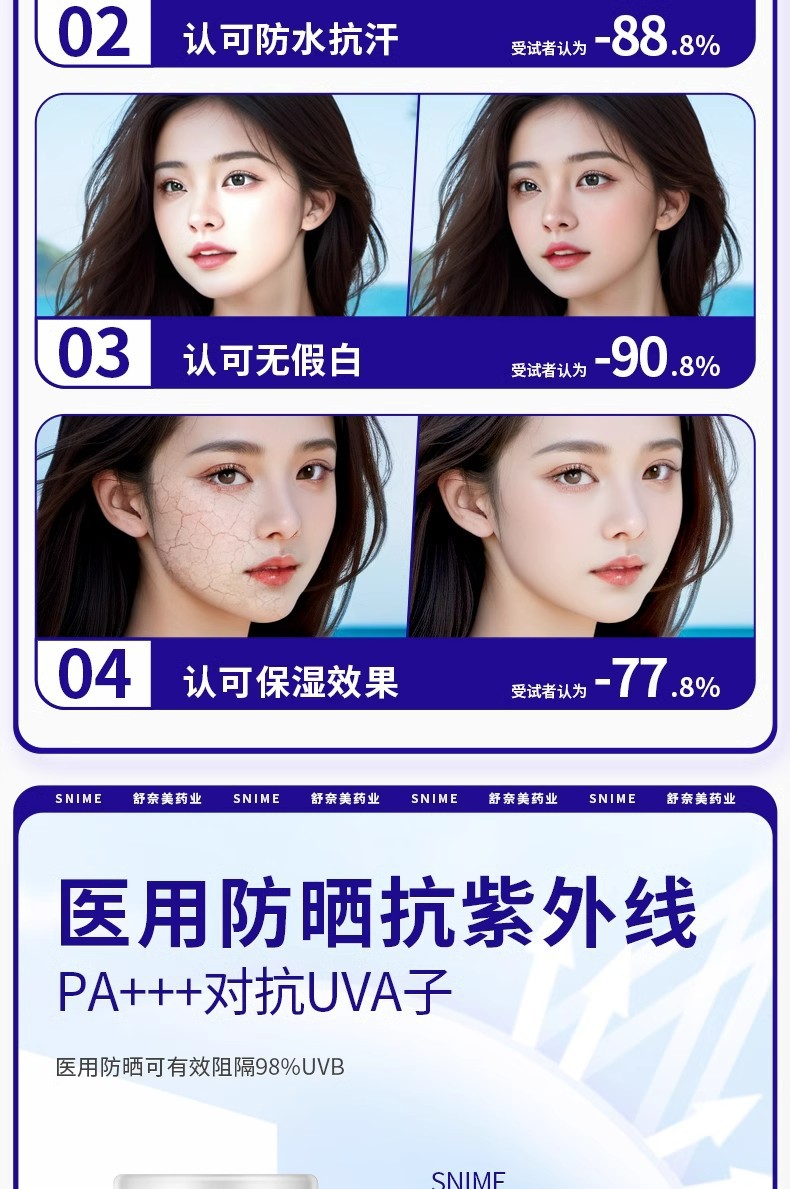 • 의료용 자외선 차단제 A+B6 병의 총 함량은 90ML입니다((민감한 피부의 80% 선택)