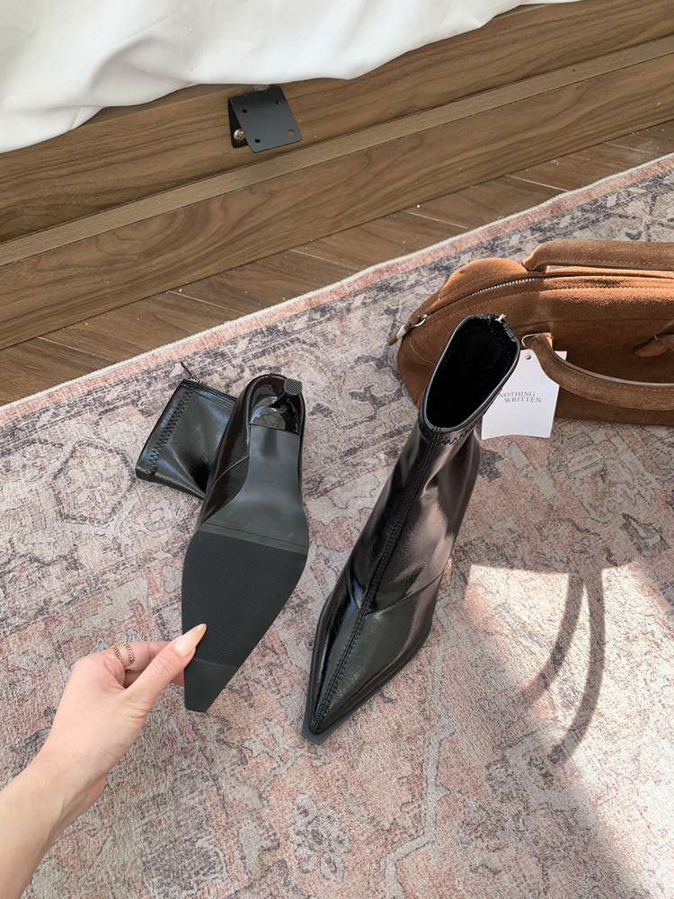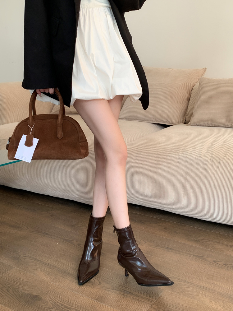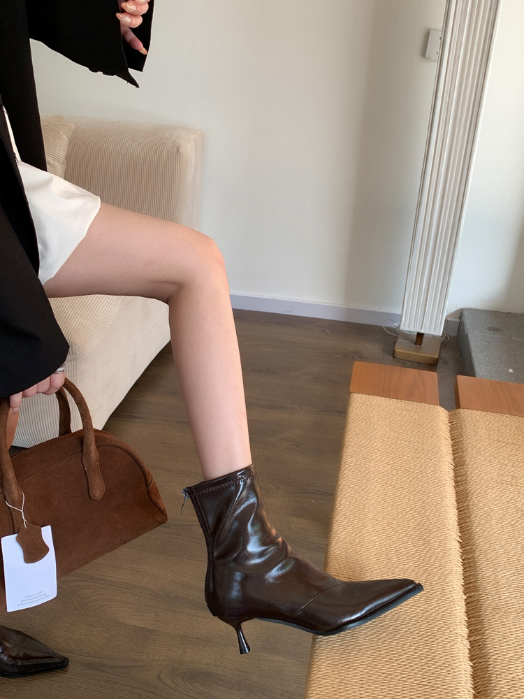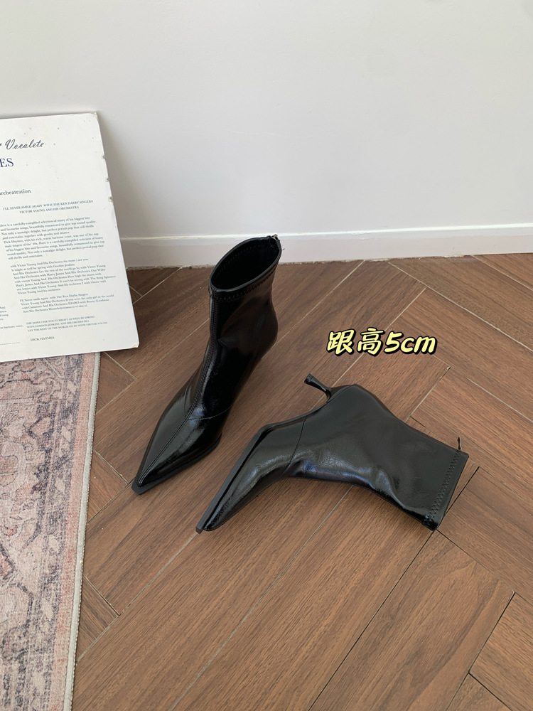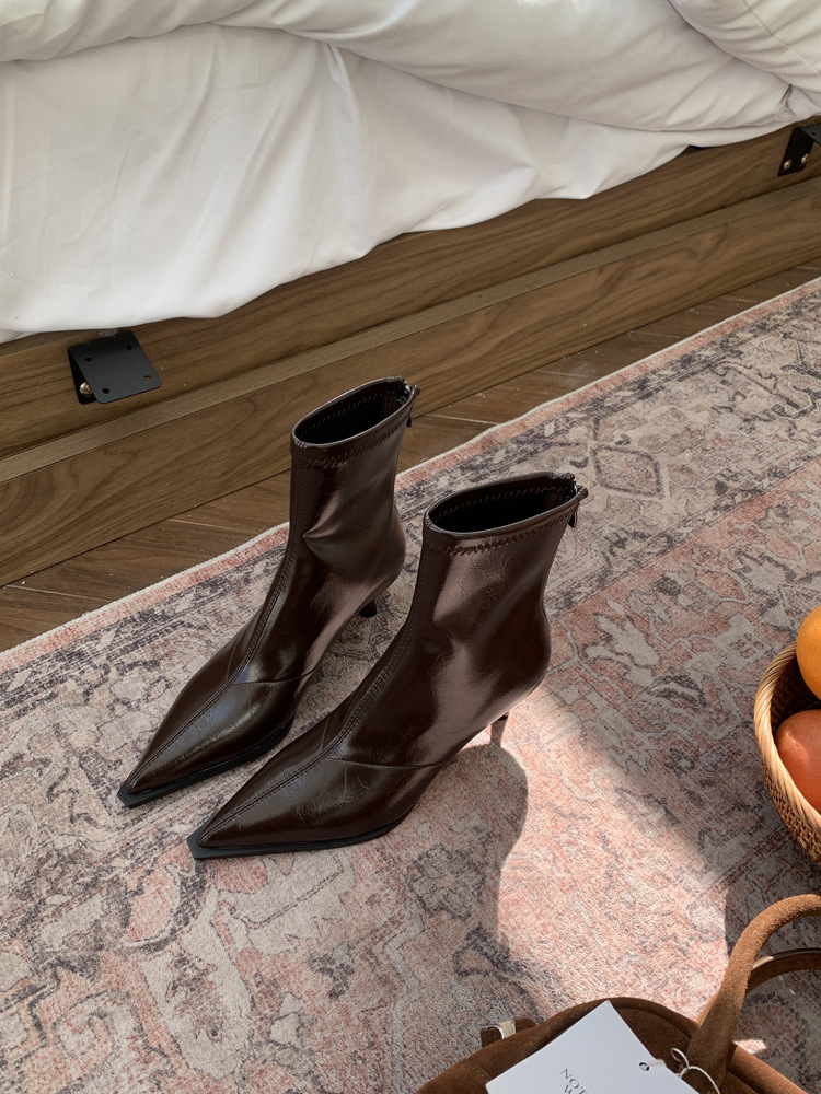 프랑스 스타일 포인팅 우아한 하이힐 발목 부츠 여성 2024 새로운 스트레치 얇은 부츠 한국식 스틸레토 리어 지퍼 부츠스토어 가기