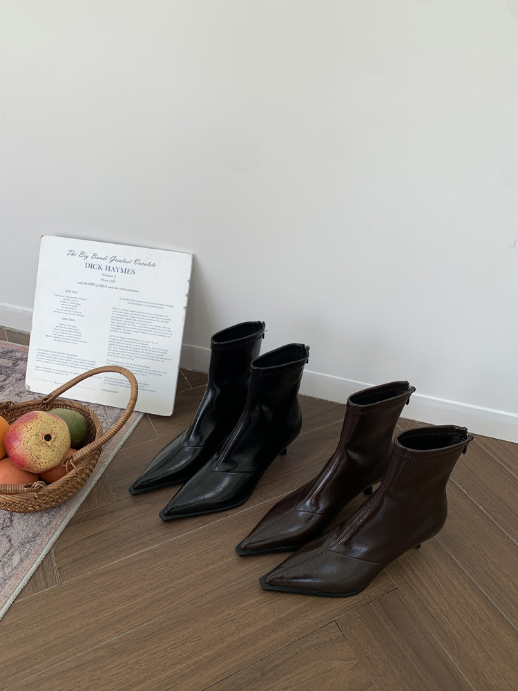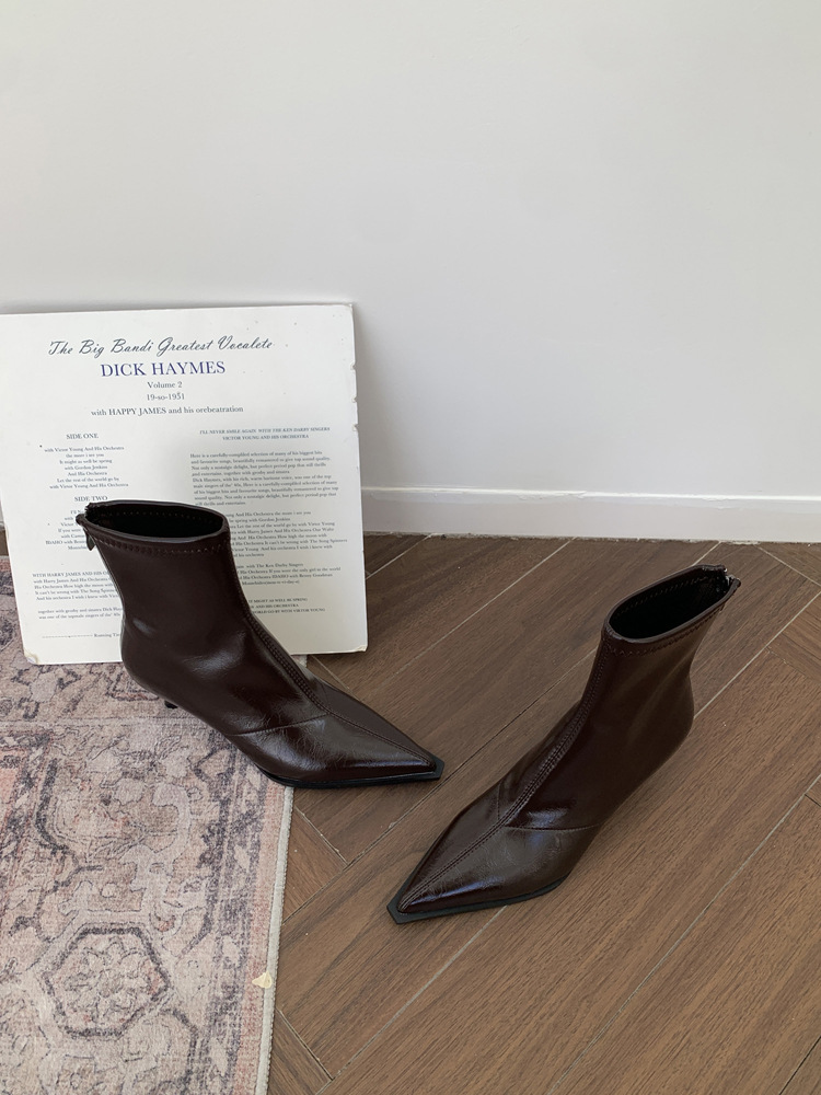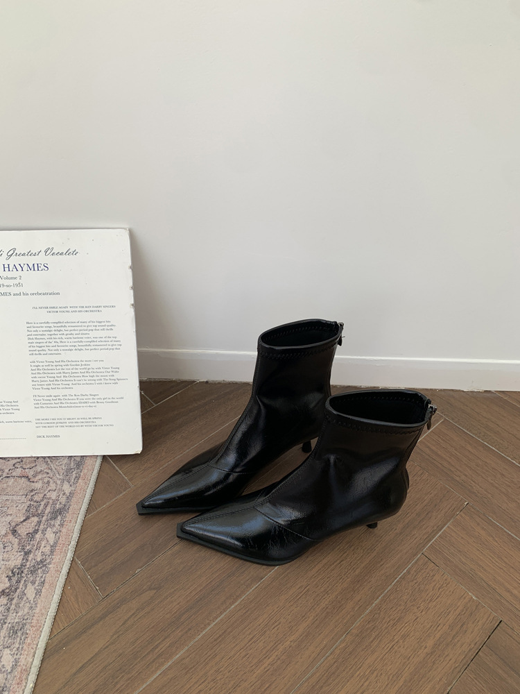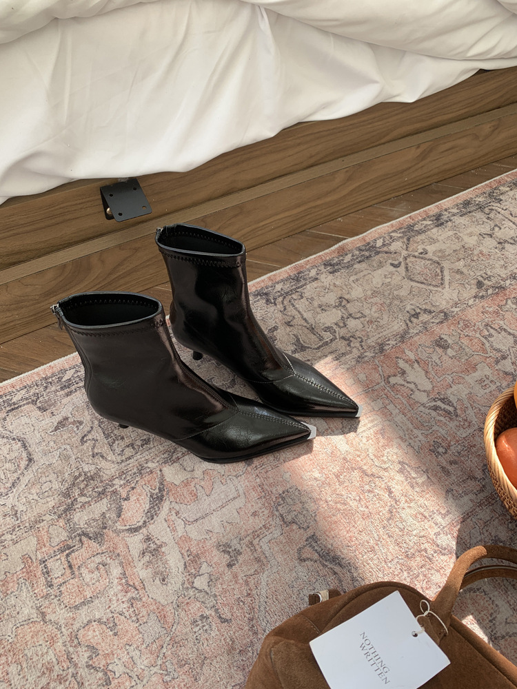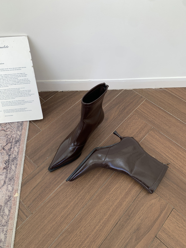 프랑스 스타일 포인팅 우아한 하이힐 발목 부츠 여성 2024 새로운 스트레치 얇은 부츠 한국식 스틸레토 리어 지퍼 부츠스토어 가기