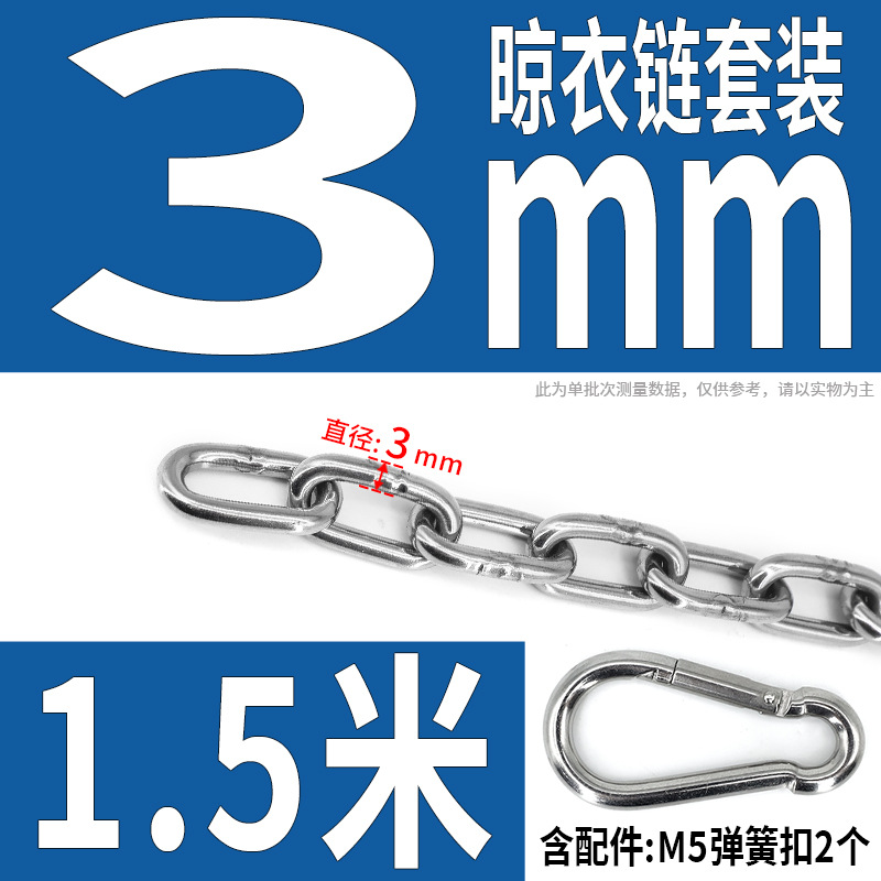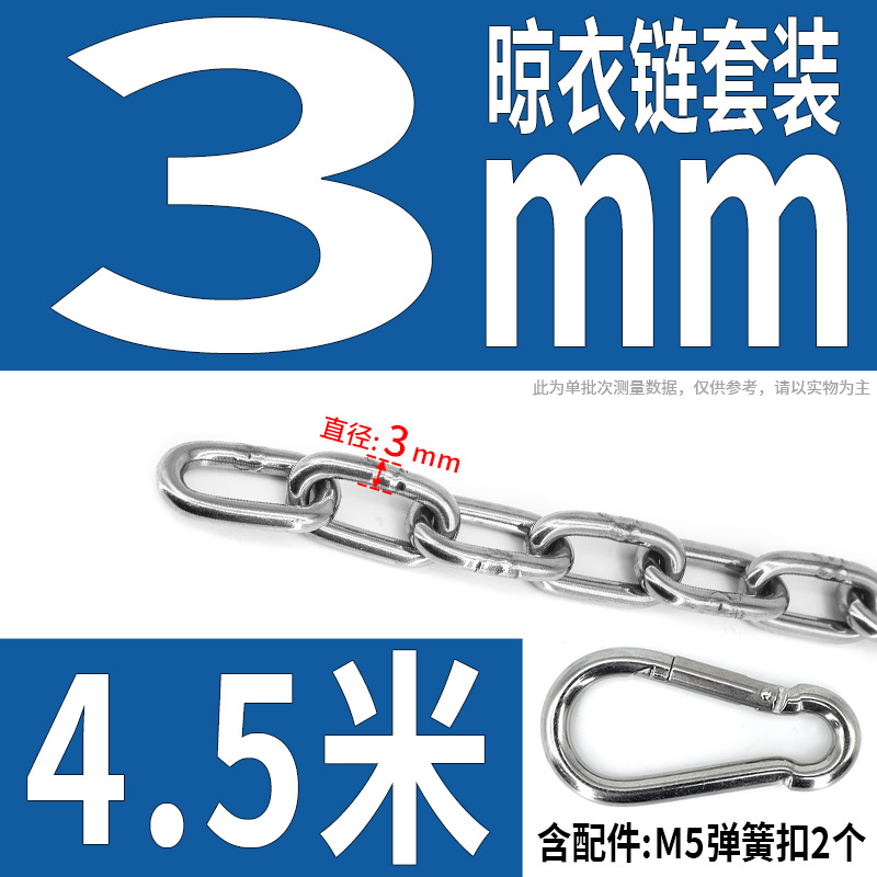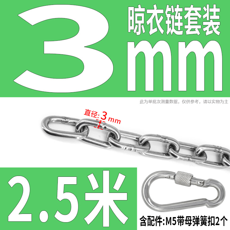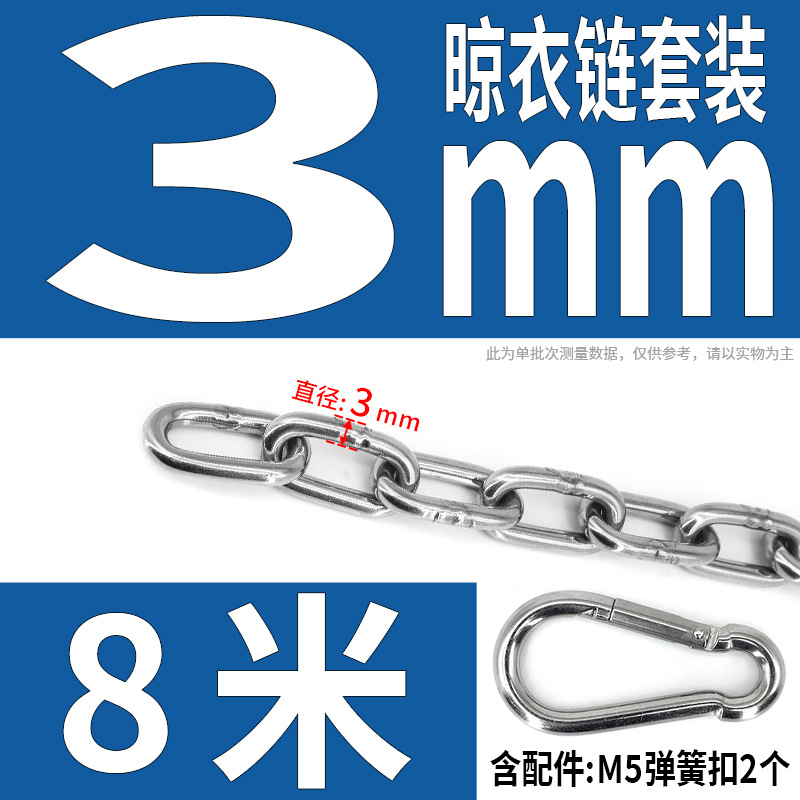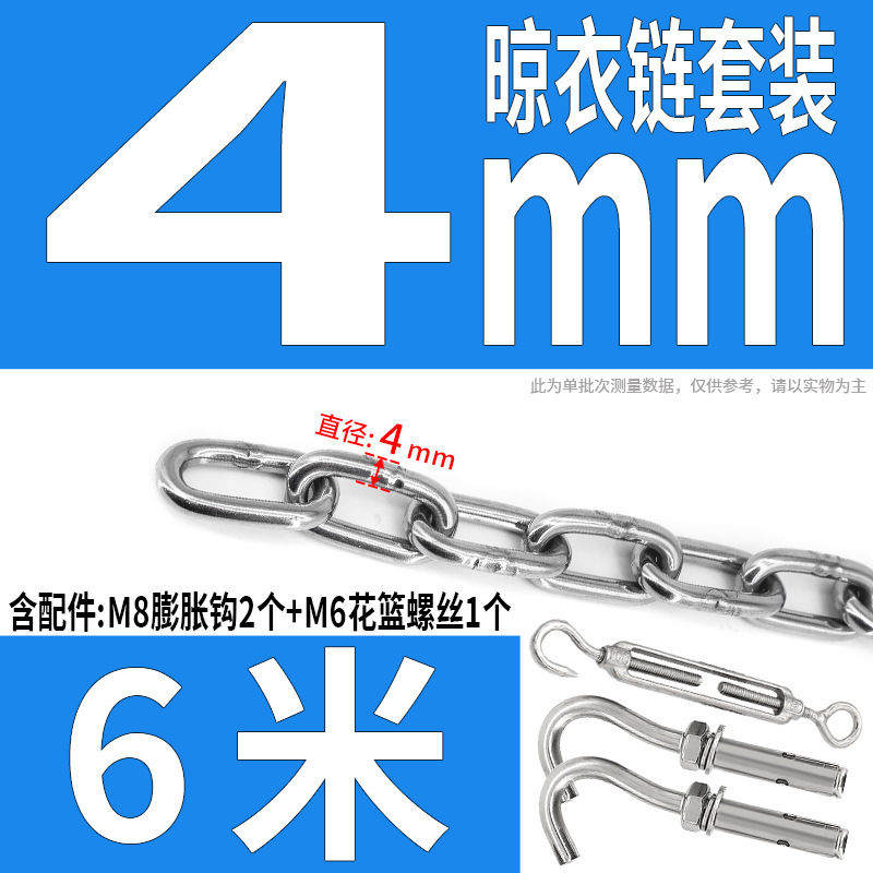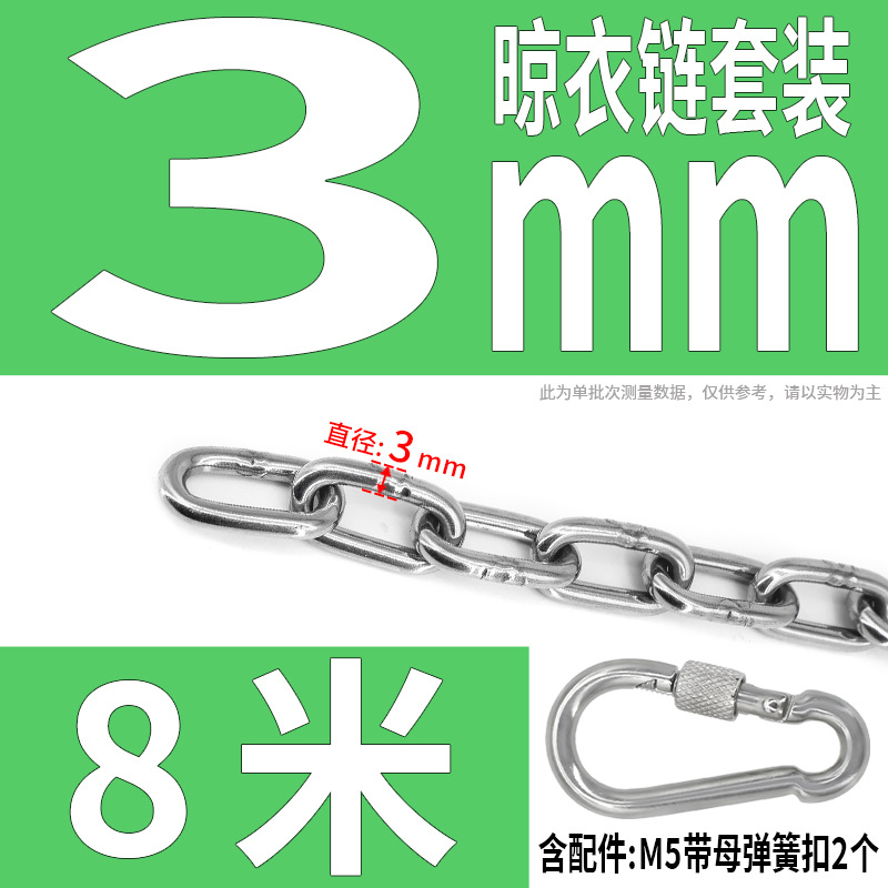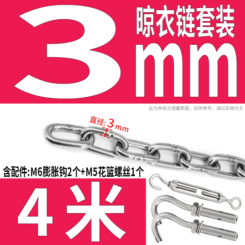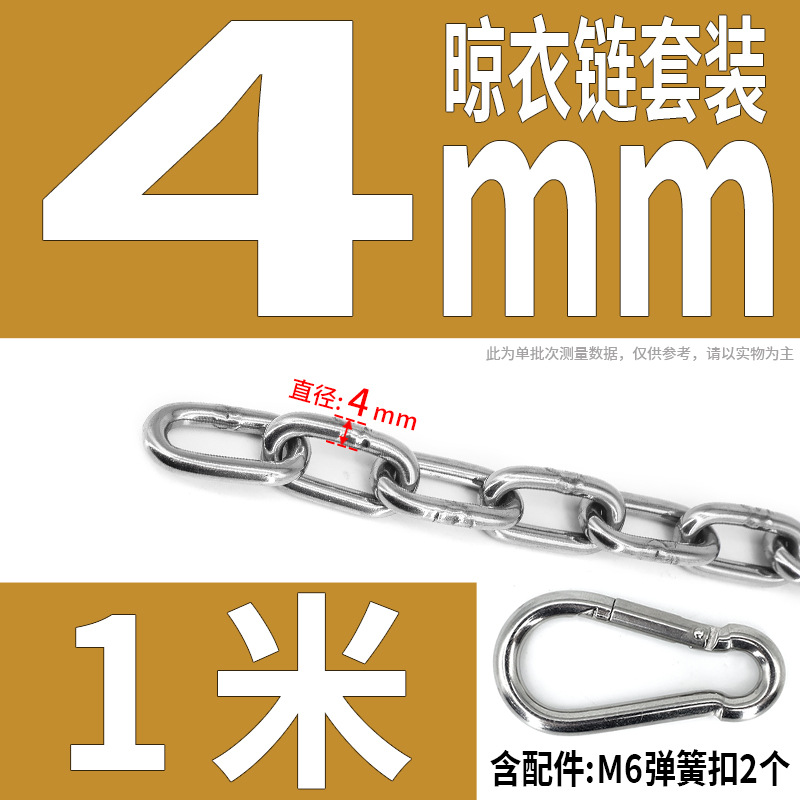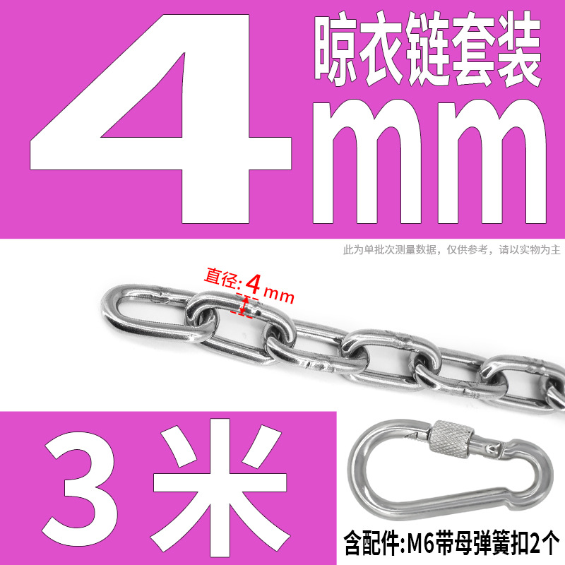 • 304 스테인레스 스틸 M4 체인 3m + [암컷 스프링 버클이 있는 M6 2개]