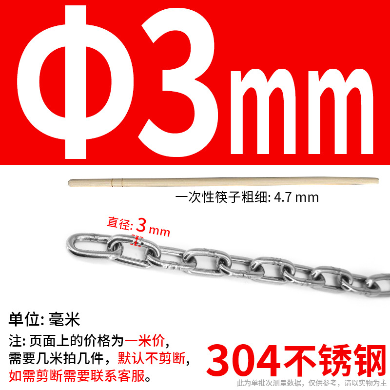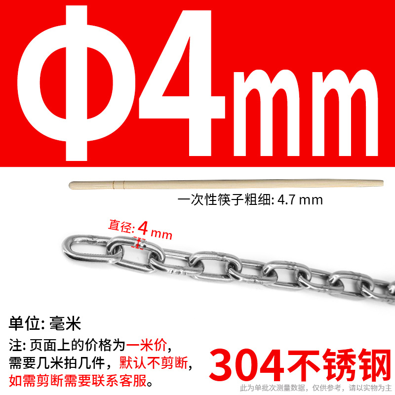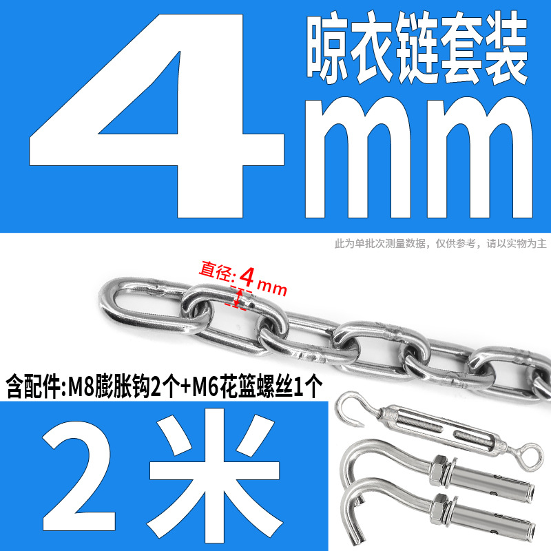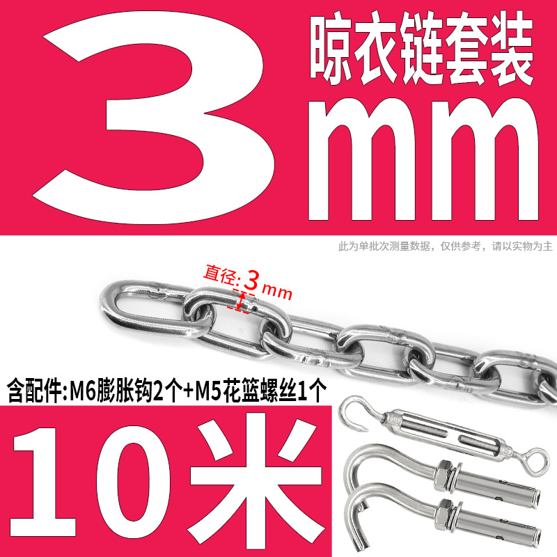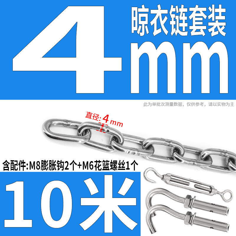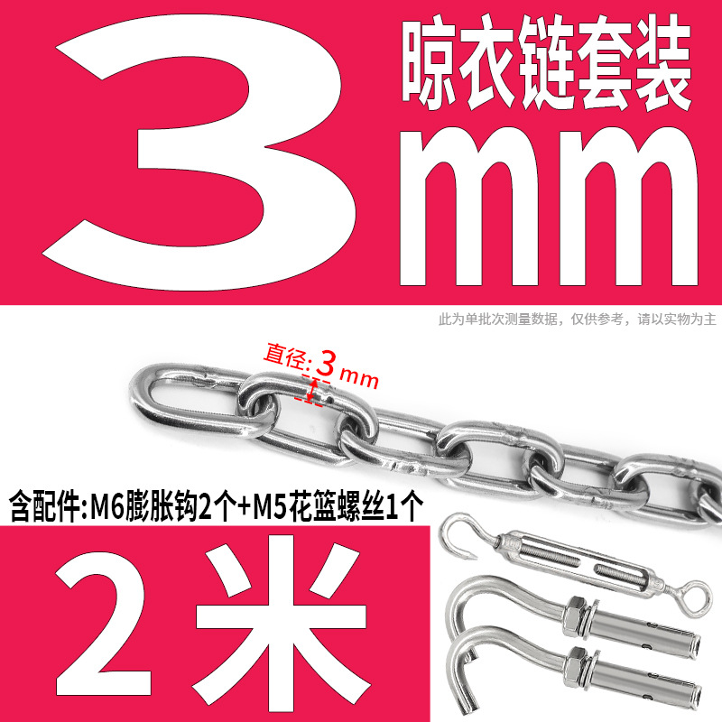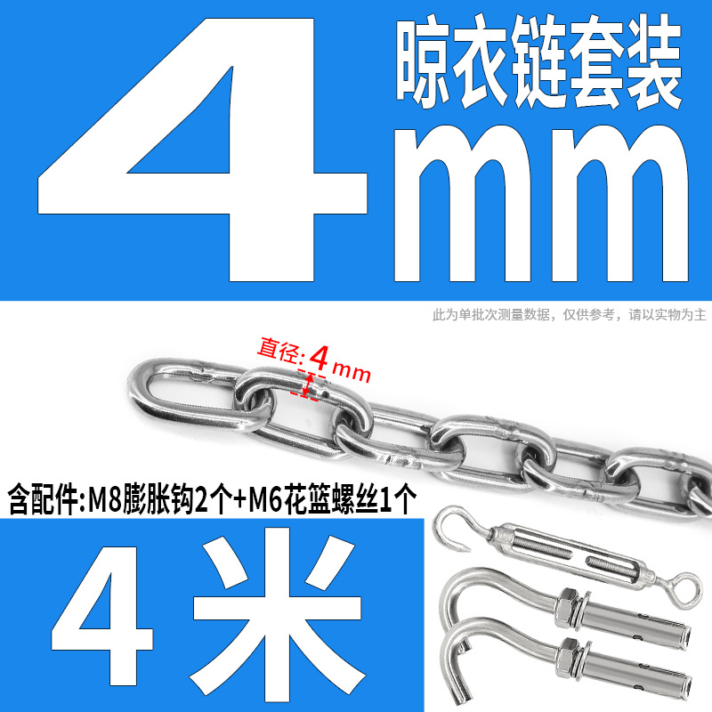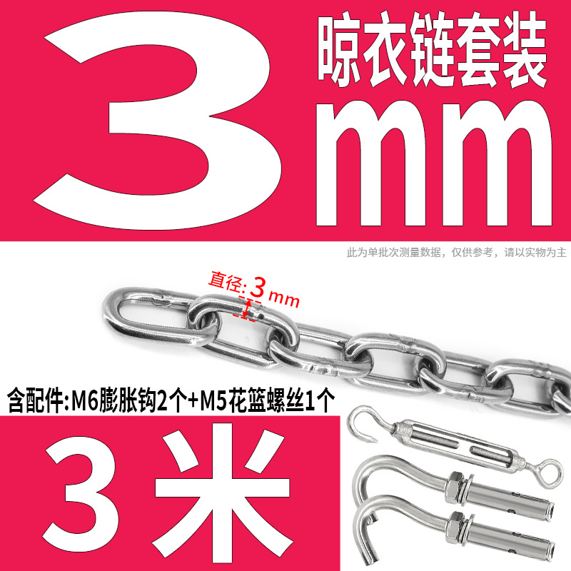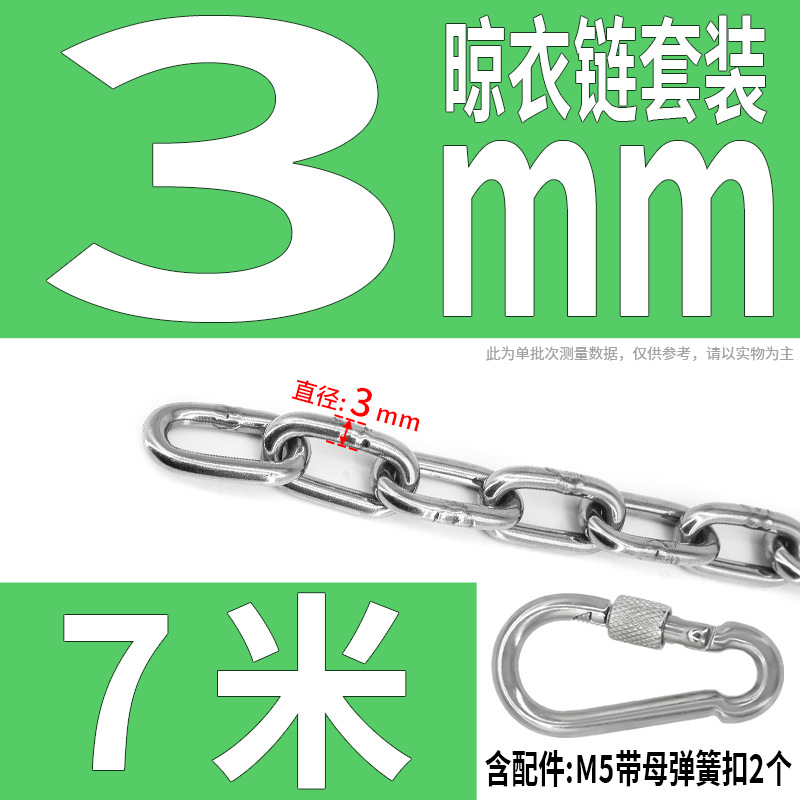 • 304 스테인레스 스틸 M4 체인 3m + [암컷 스프링 버클이 있는 M6 2개]