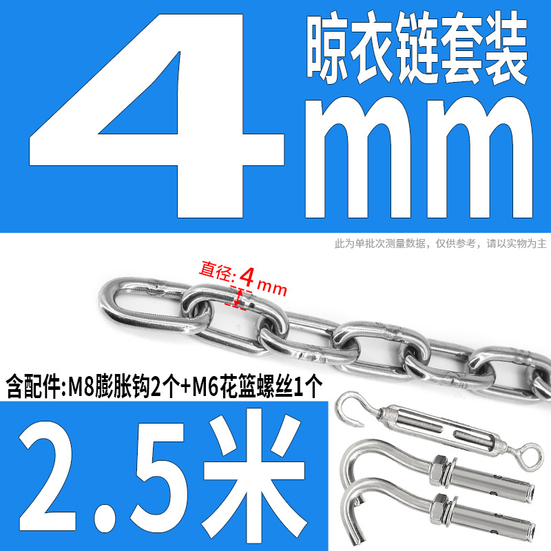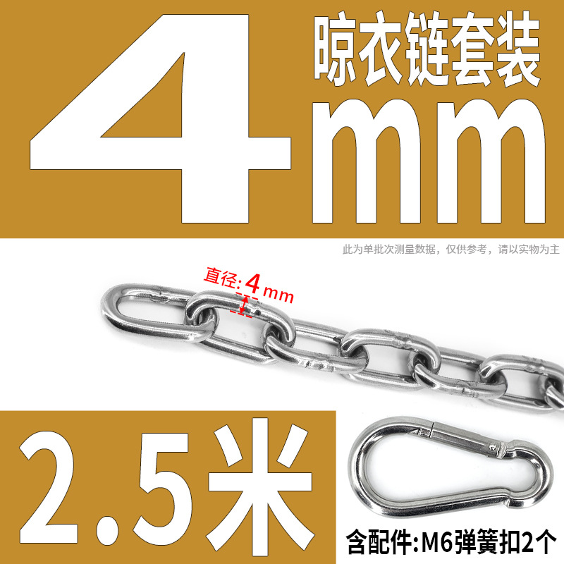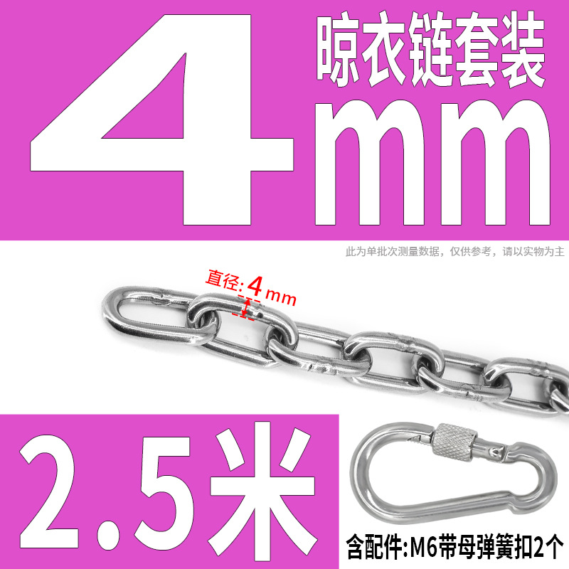 • 304 스테인레스 스틸 M4 체인 2.5m + [암컷 스프링 버클이 있는 M6 2개]