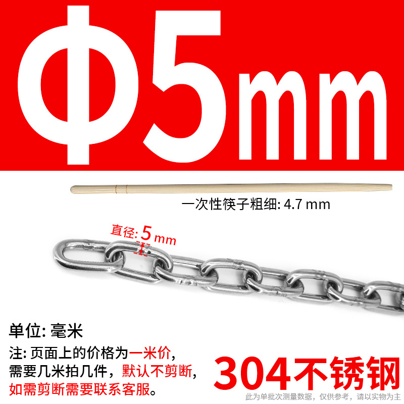 • 304 스테인레스 스틸 M4 체인 5m + [암컷 스프링 버클이 있는 M6 2개]