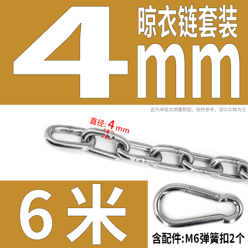 • 304 스테인레스 스틸 M4 체인 6m + [암컷 스프링 버클이 있는 M6 2개]