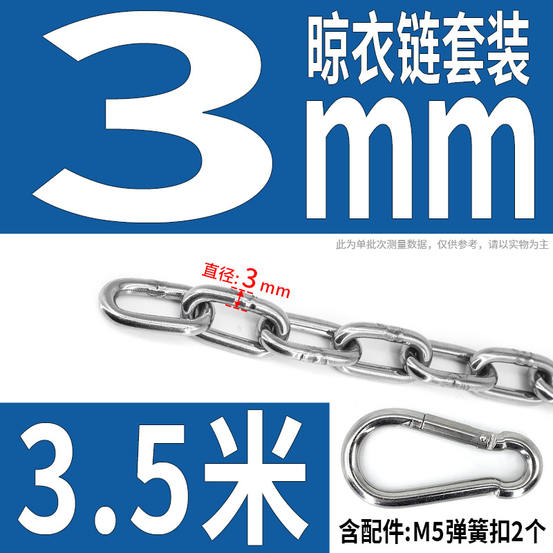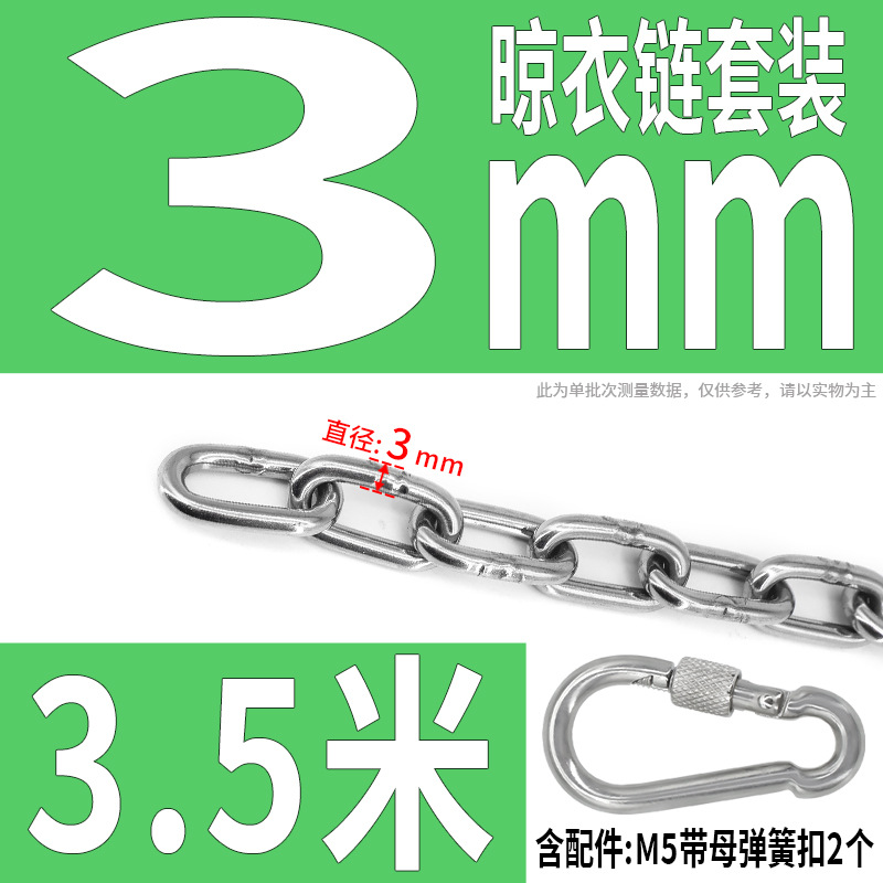 • 304 스테인레스 스틸 M3 체인 3.5m + [2 M 스프링 버클]