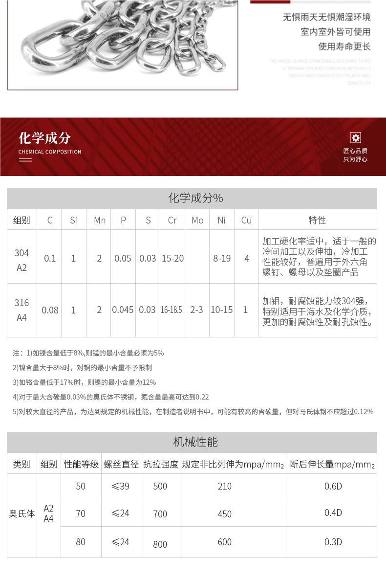 • 304 스테인레스 스틸 M4 체인 2m + [암컷 스프링 버클이 있는 M6 2개]