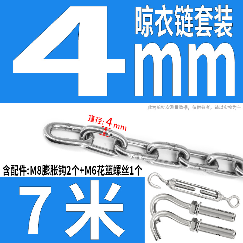 • 304 스테인레스 스틸 M4 체인 7m + [암컷 스프링 버클이 있는 M6 2개]