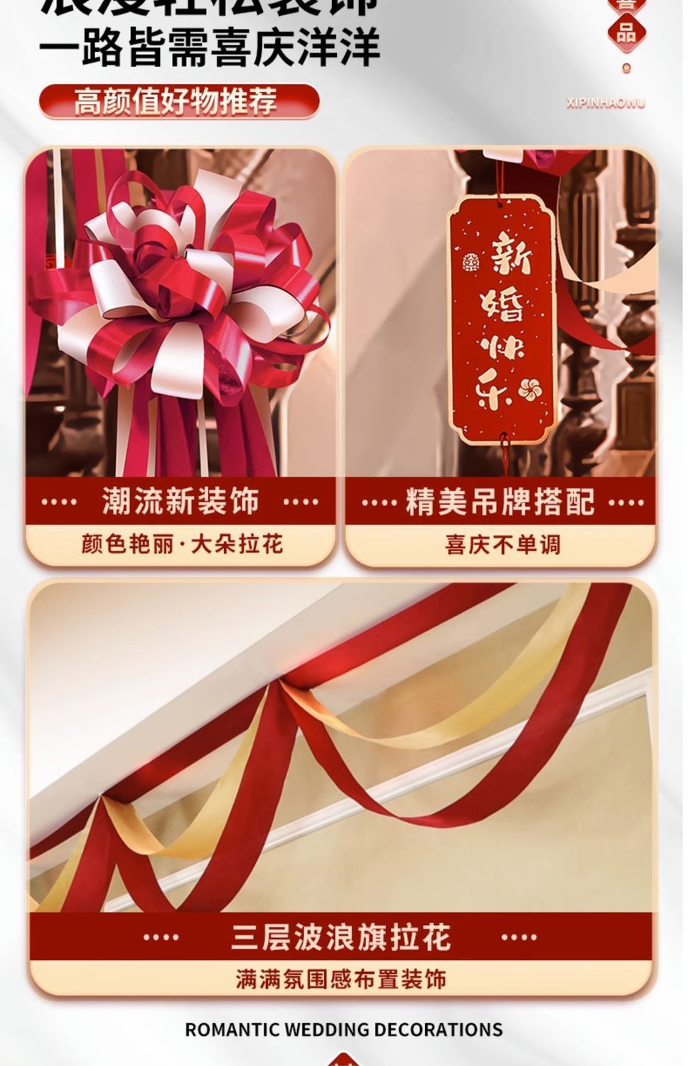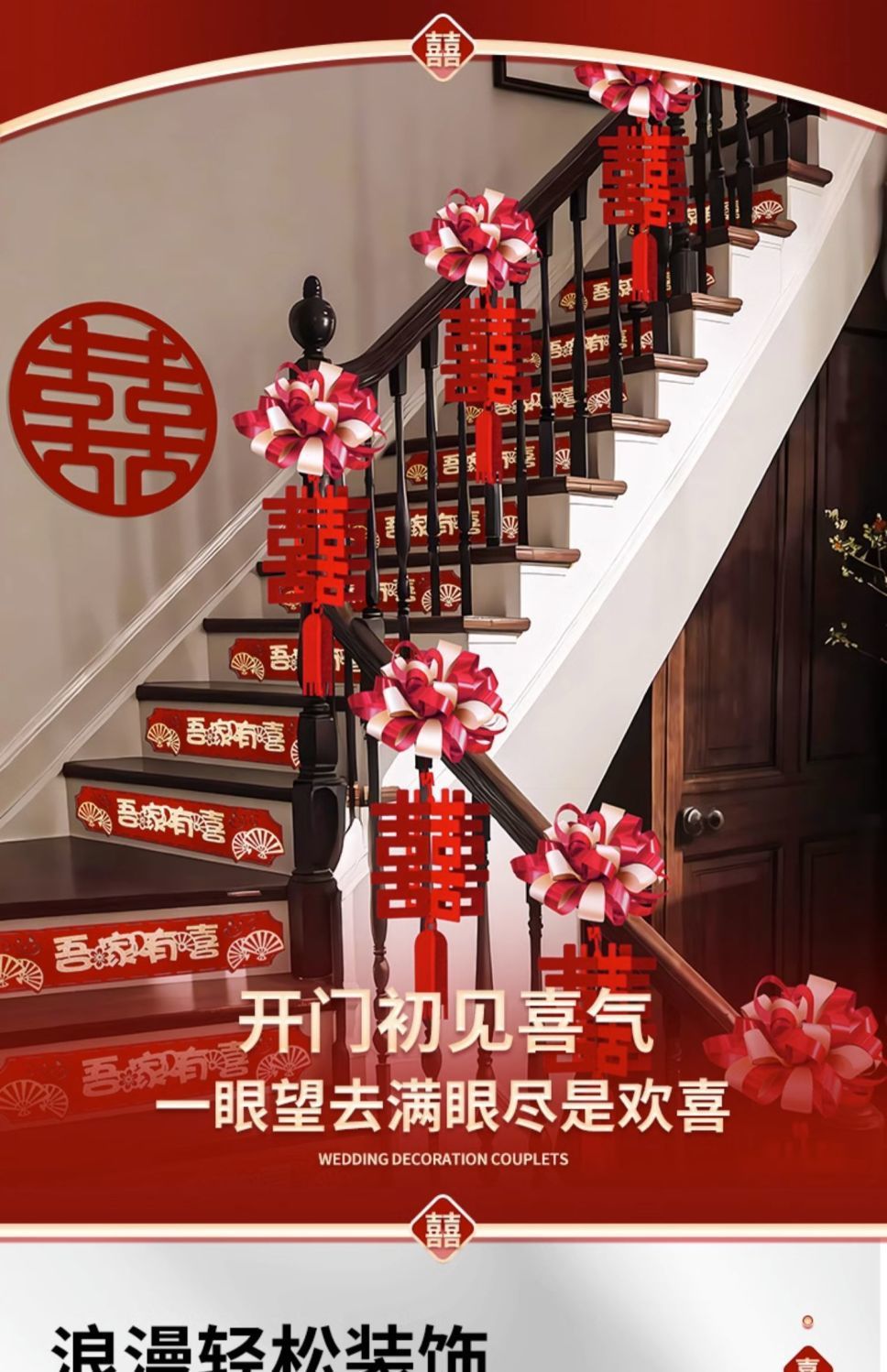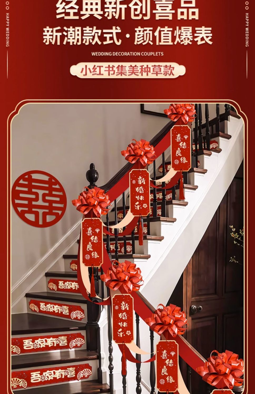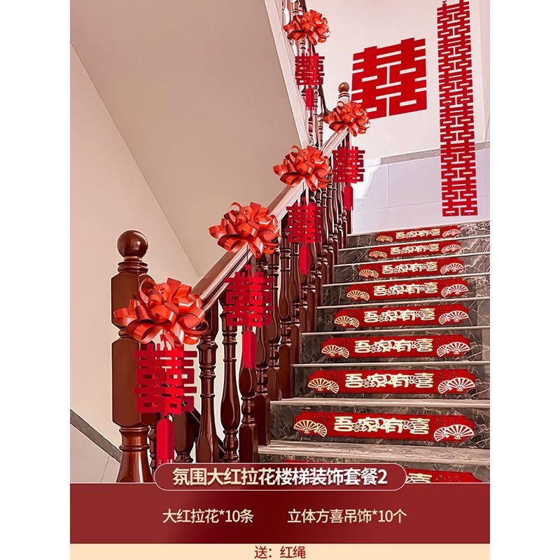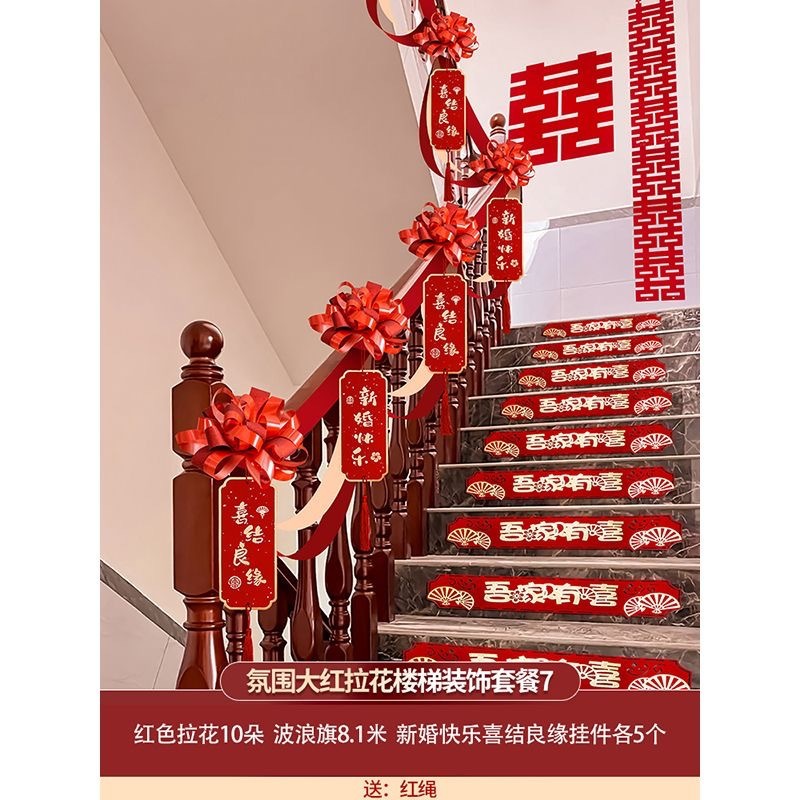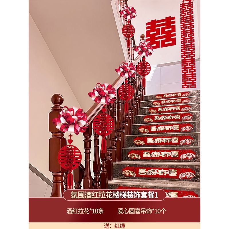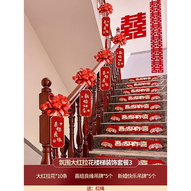 웨딩 계단 난간 꽃 장식 웨딩 룸 레이아웃 야드 리본 웨딩 카 꽃 뒷모습 거울 리본