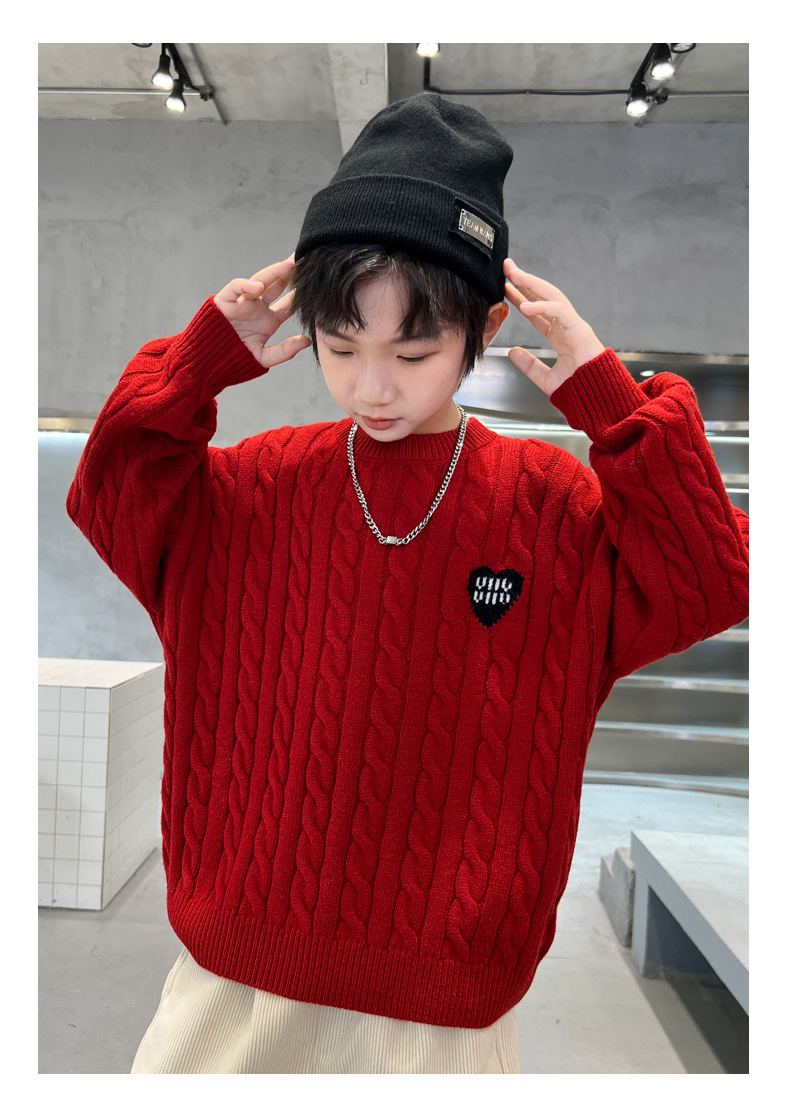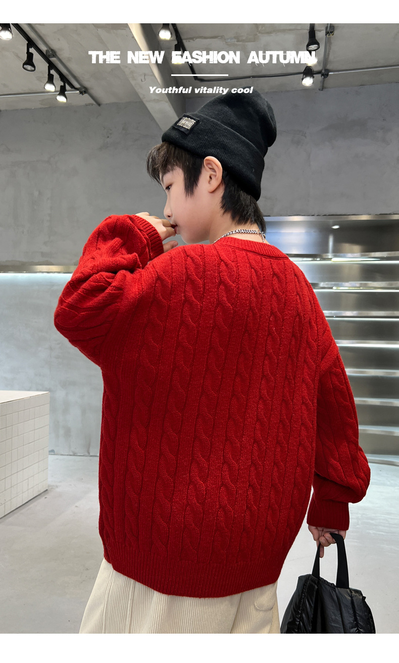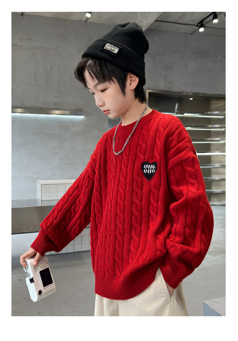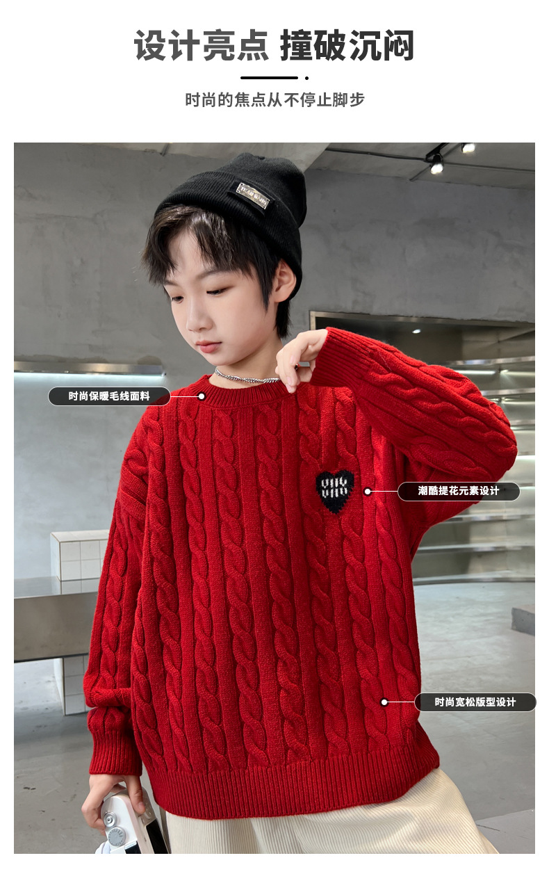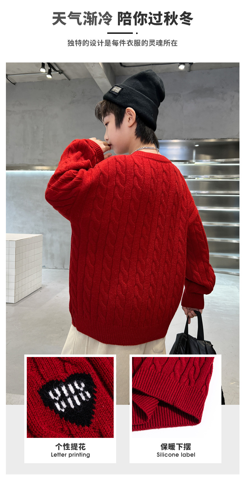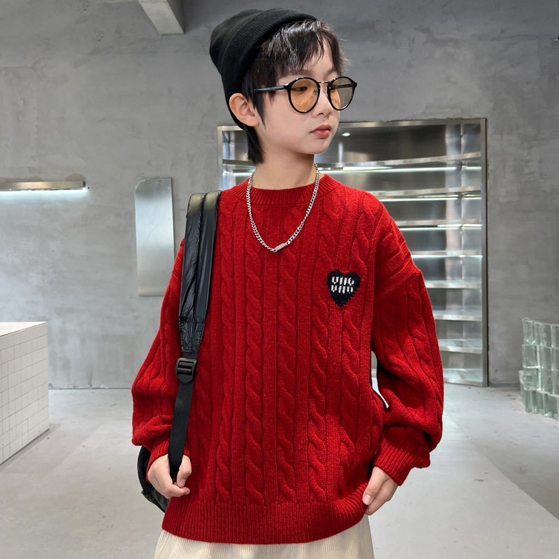 소년의 세련된 스웨터 가을과 겨울 아동복 2024 새로운 cuhk 겨울 소년 빨간 스웨터 겨울 대외 무역스토어 가기