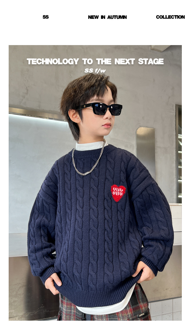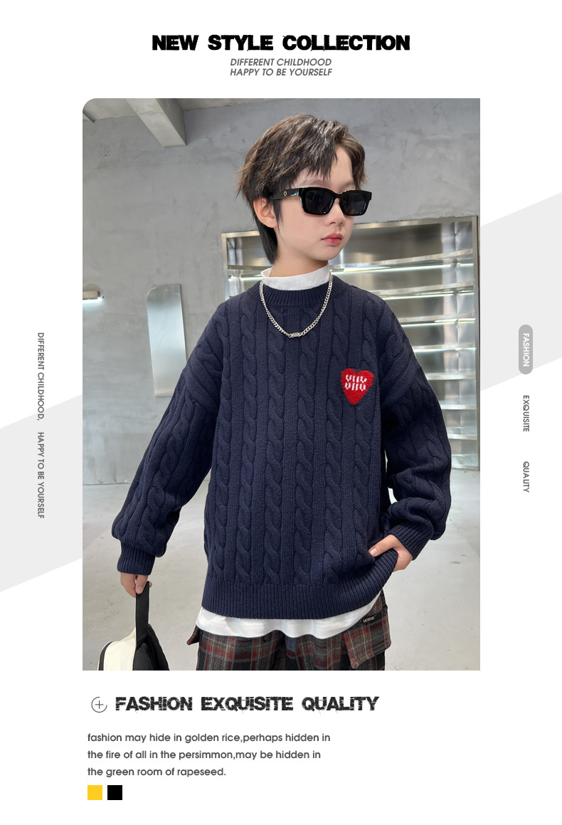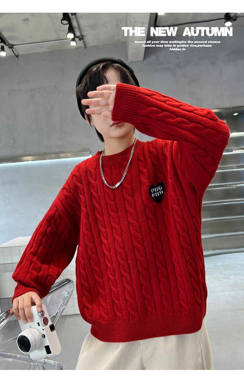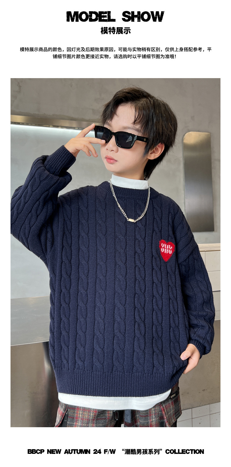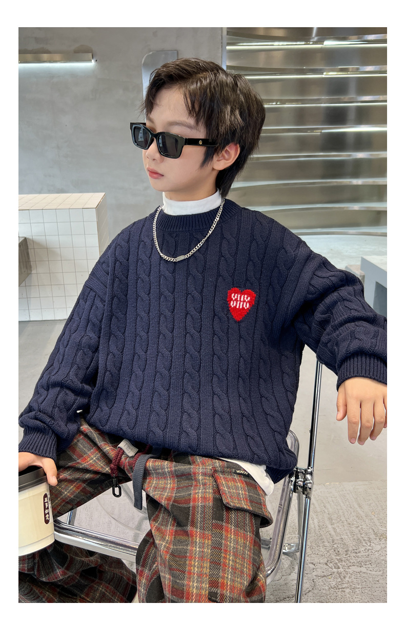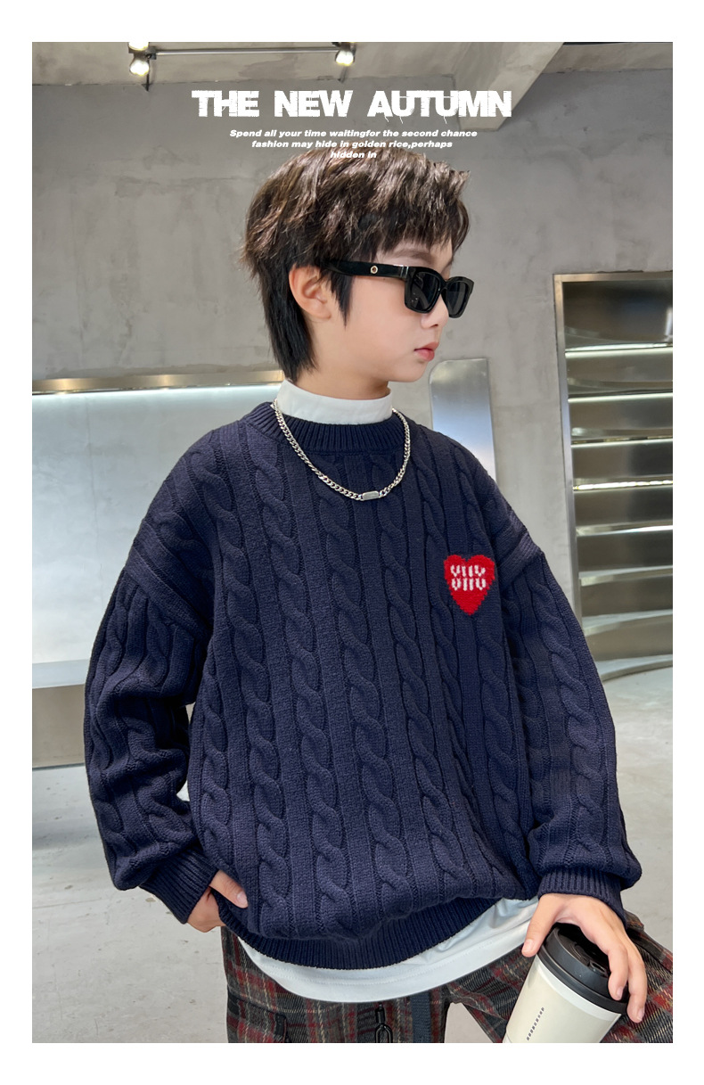 소년의 세련된 스웨터 가을과 겨울 아동복 2024 새로운 cuhk 겨울 소년 빨간 스웨터 겨울 대외 무역스토어 가기