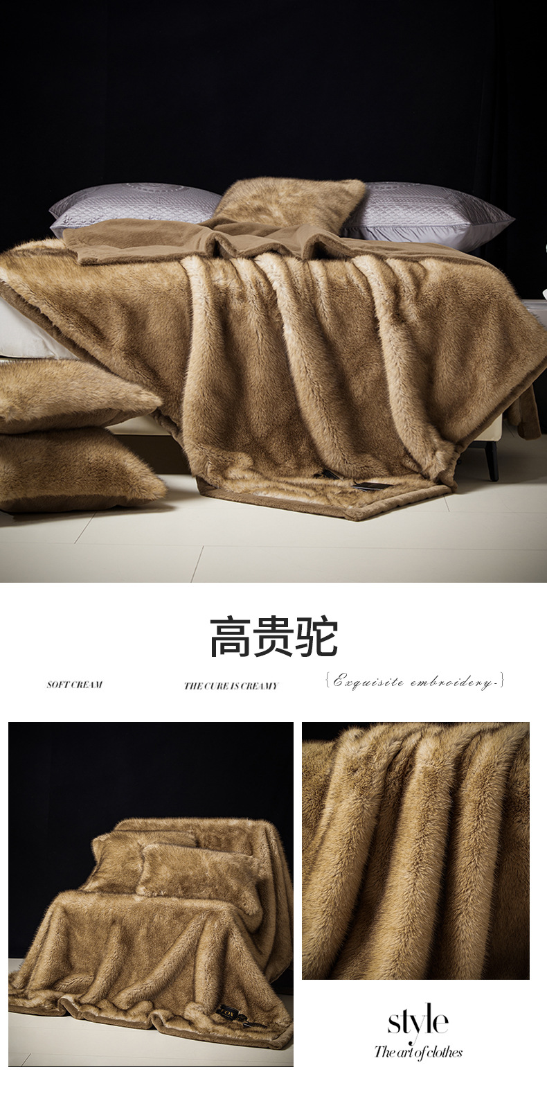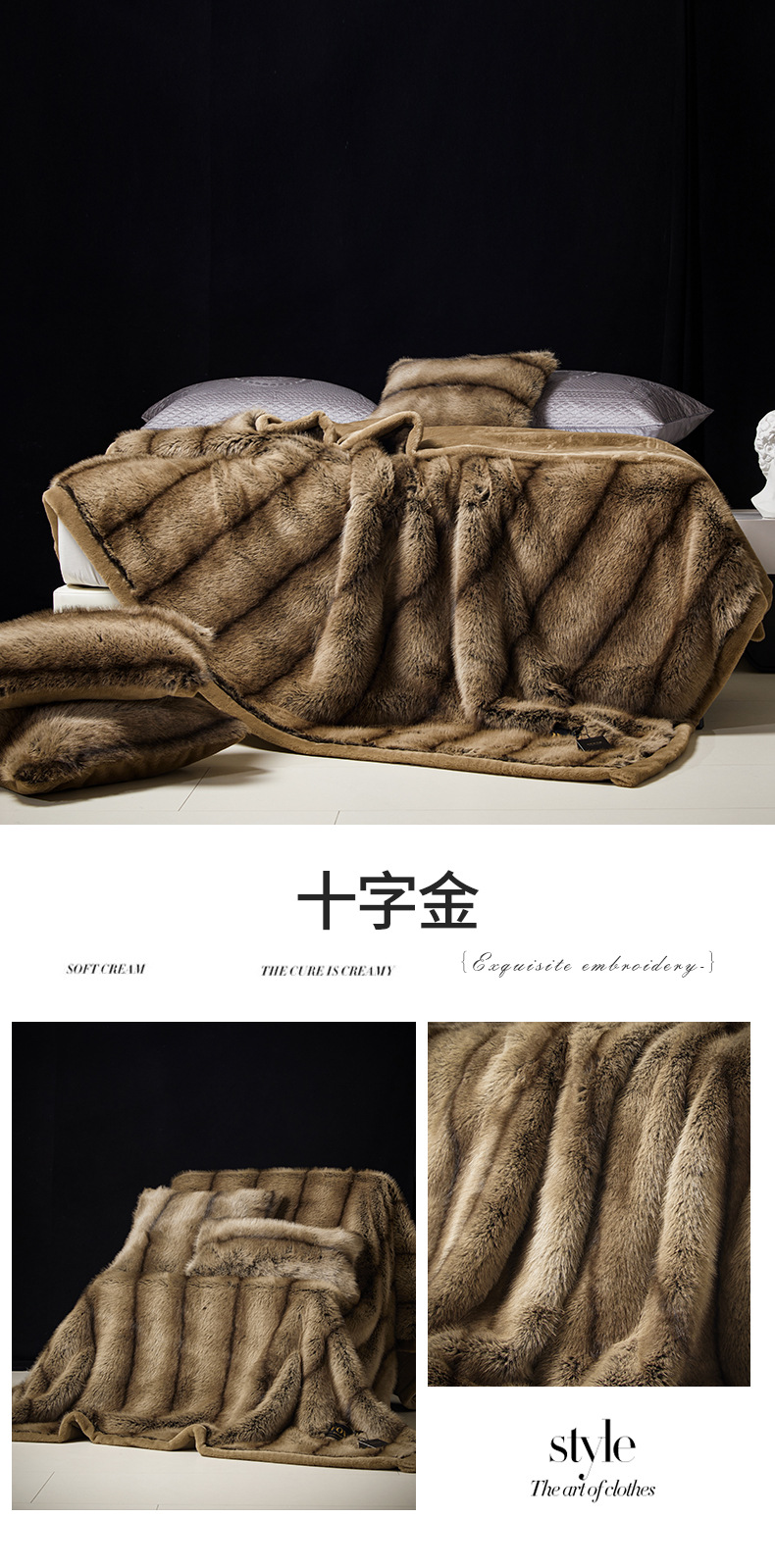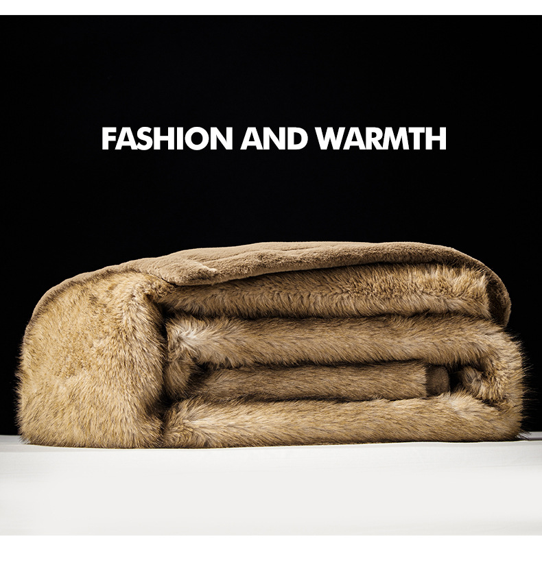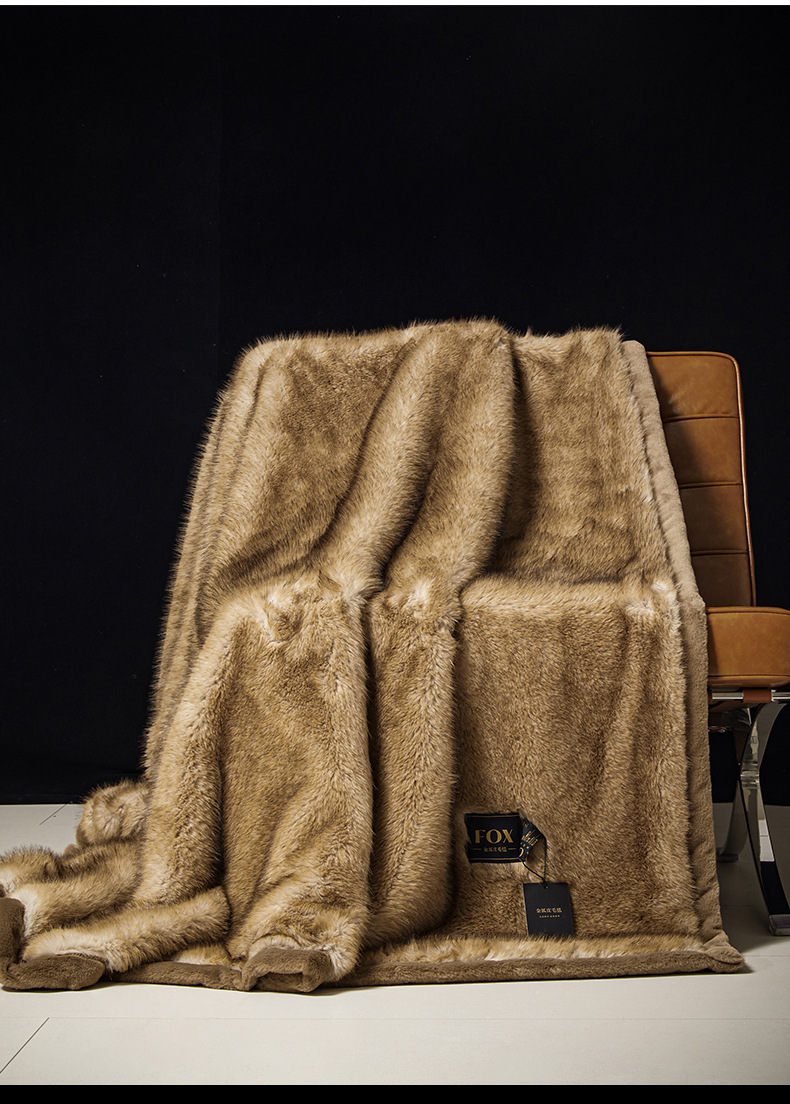 밝은 럭셔리 더블 레이어 모방 황금 폭스 모피 담요 가을과 겨울 더블 두꺼운 따뜻한 담요 대외 무역 라셀 담요