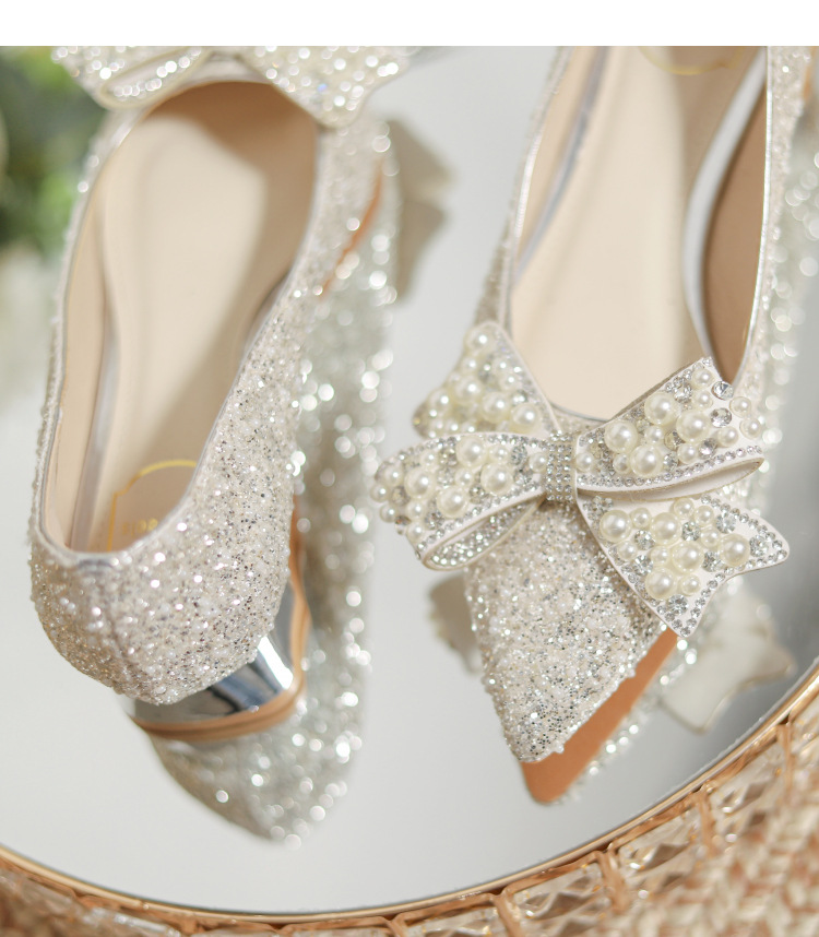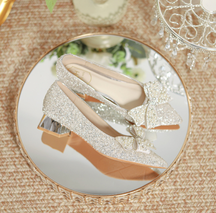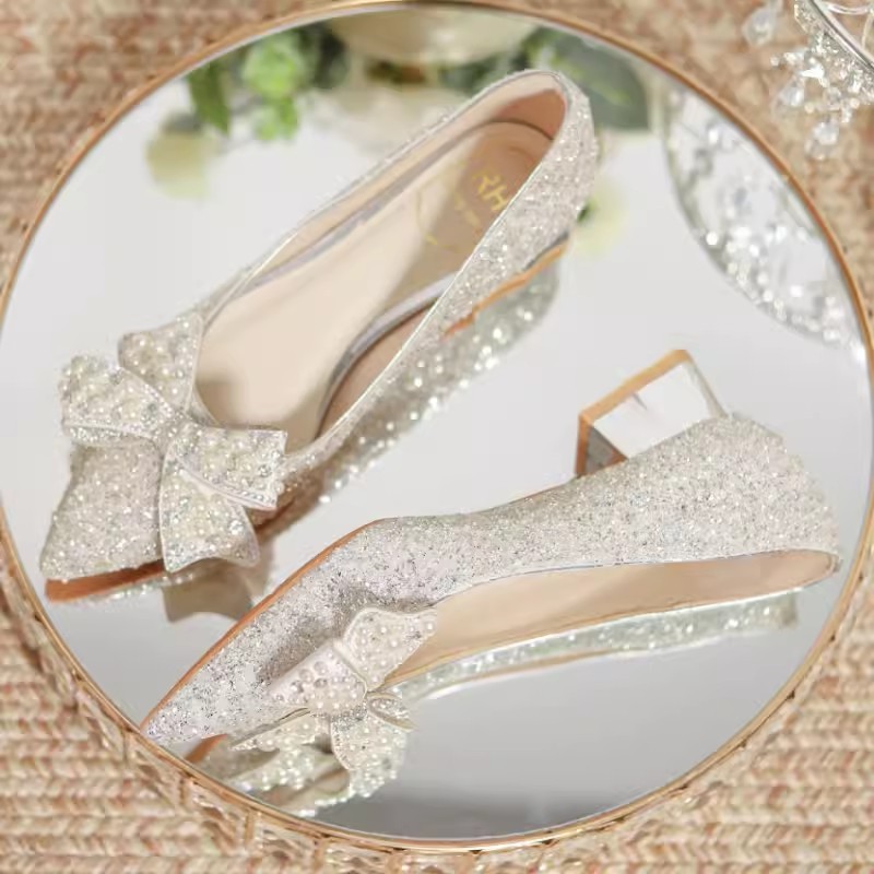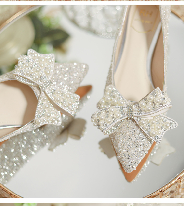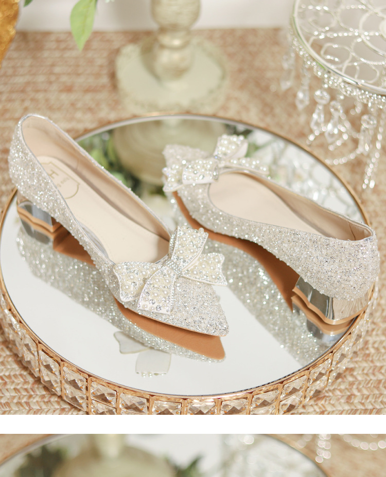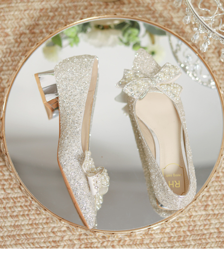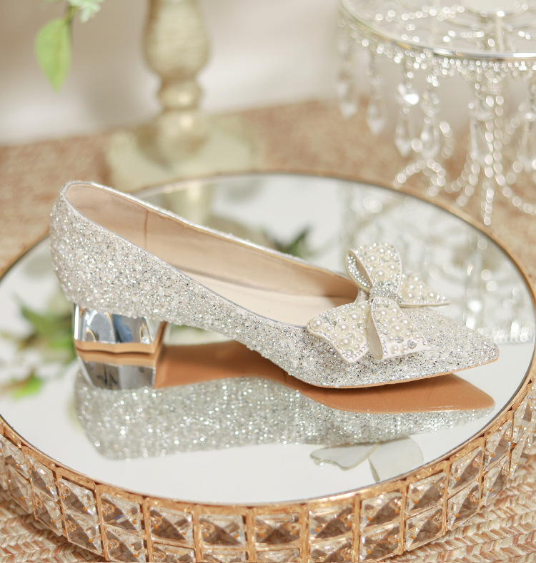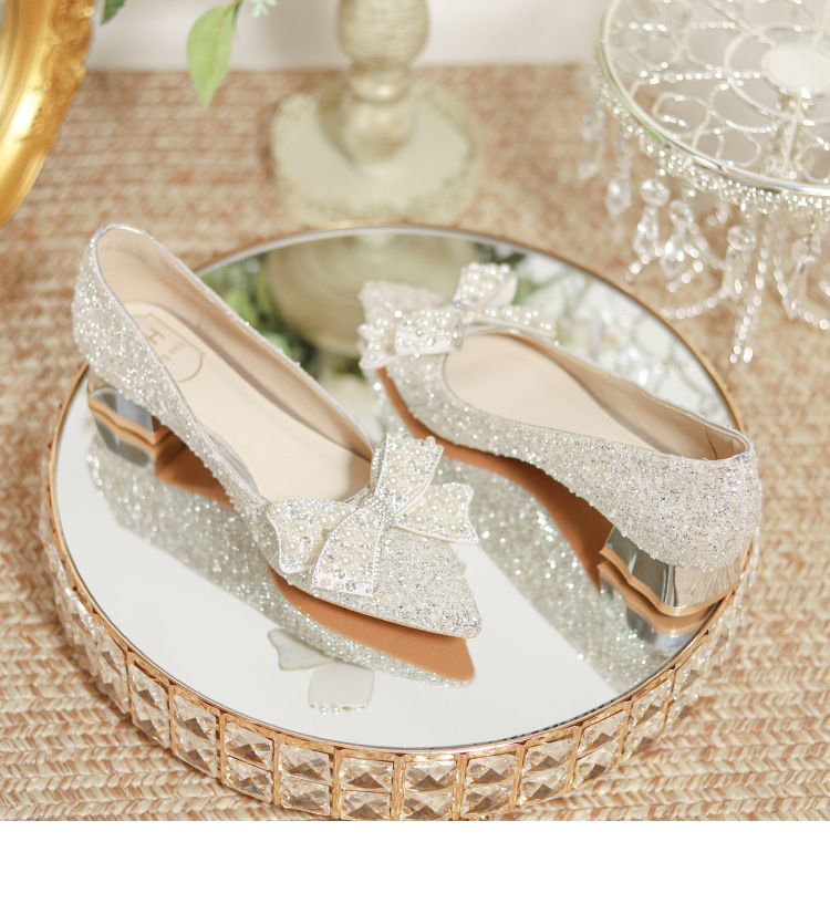 한국 스타일 포인팅 라인스톤 고급 스퀘어 힐 웨딩 신발 2024 새로운 올매치 패션 신부 웨딩 원피스 크리스탈 여성 신발스토어 가기
