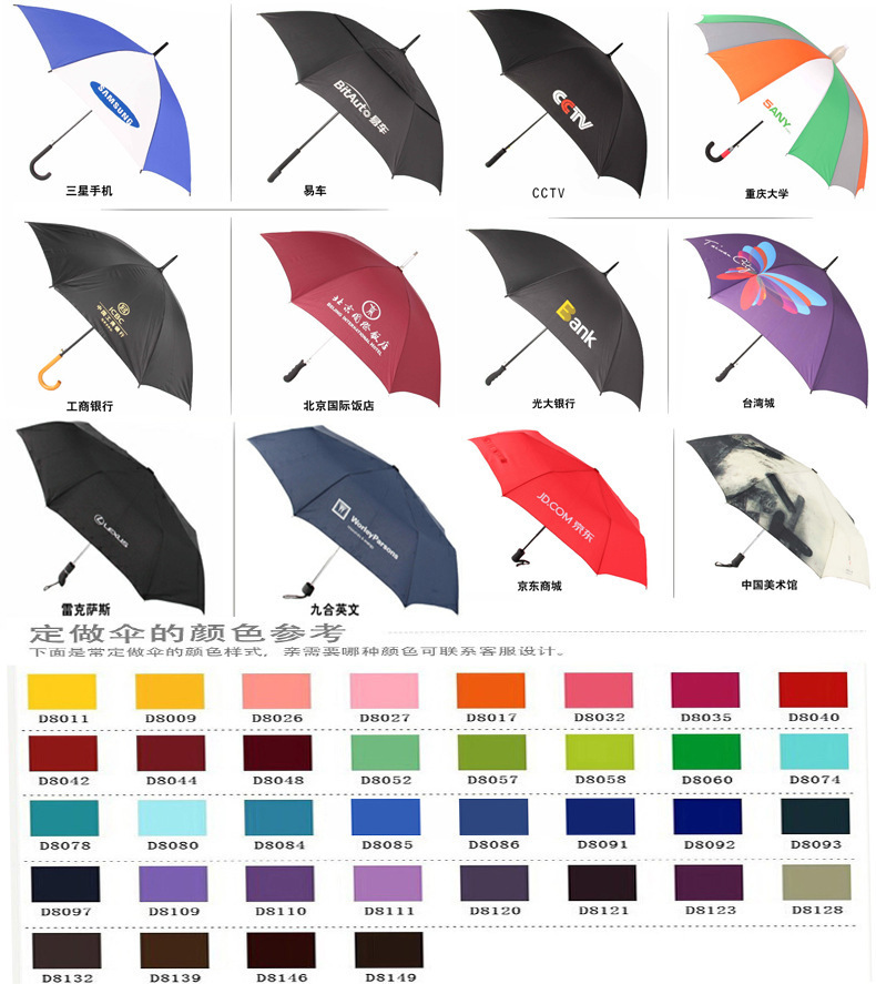 印刷订做须知: 1.全场标价都是不含印刷的伞的价格,印刷是根据具体 要求另外收费的,需联系客服.