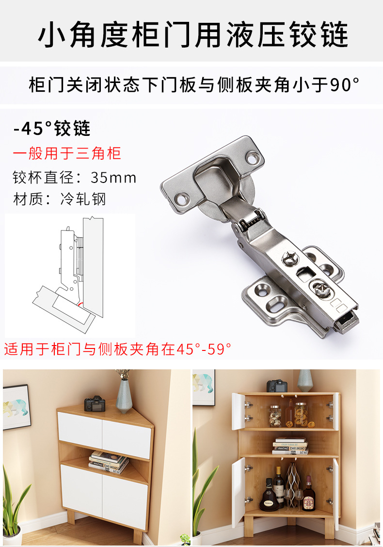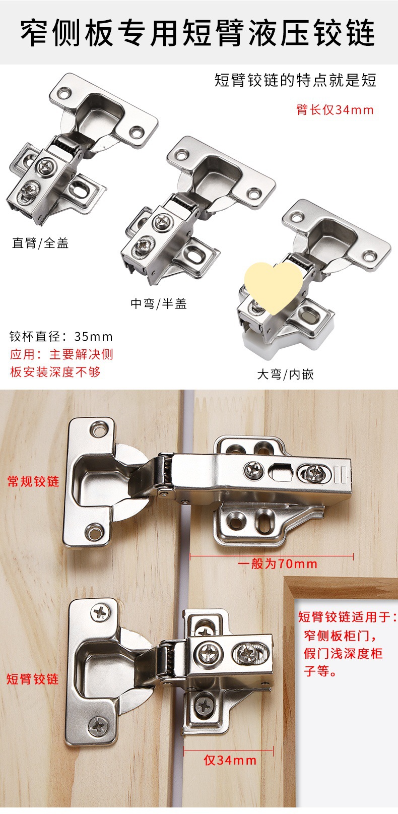 특수 캐비닛 도어 짧은 팔 힌지 큰 각도 165 도 135 도 90 도 플러스 또는 마이너스 45 도 30 도 음소거 버퍼 힌지스토어 가기