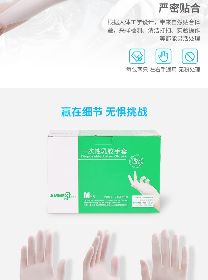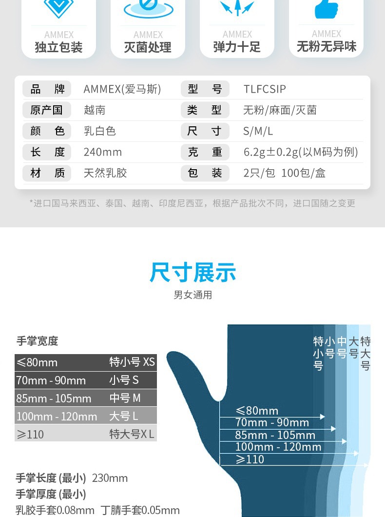AMAS 의료 장갑 일회용 멸균 라텍스 고무 별도의 포장 높은 탄성 분말 무료 의사 치과 검사스토어 가기