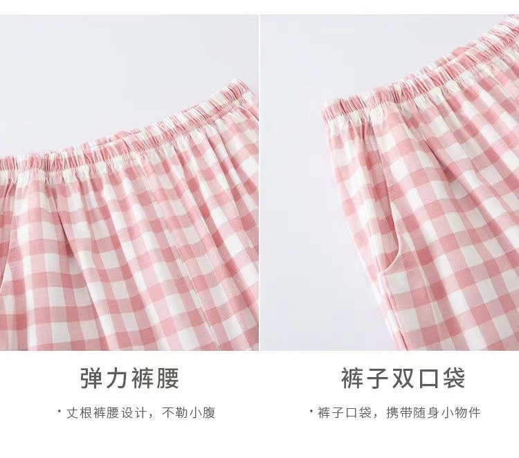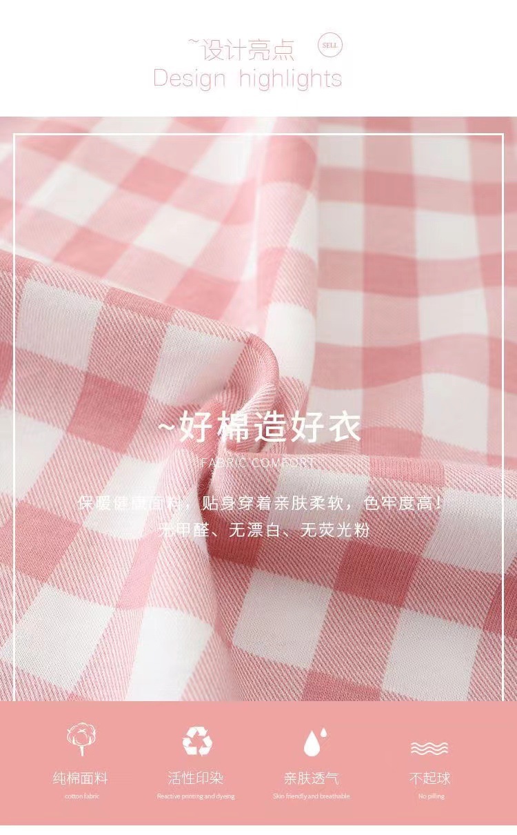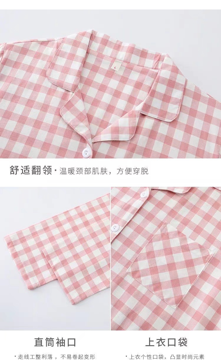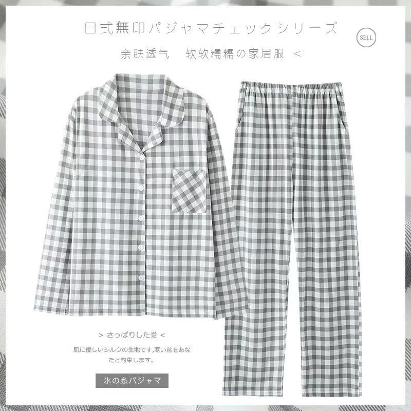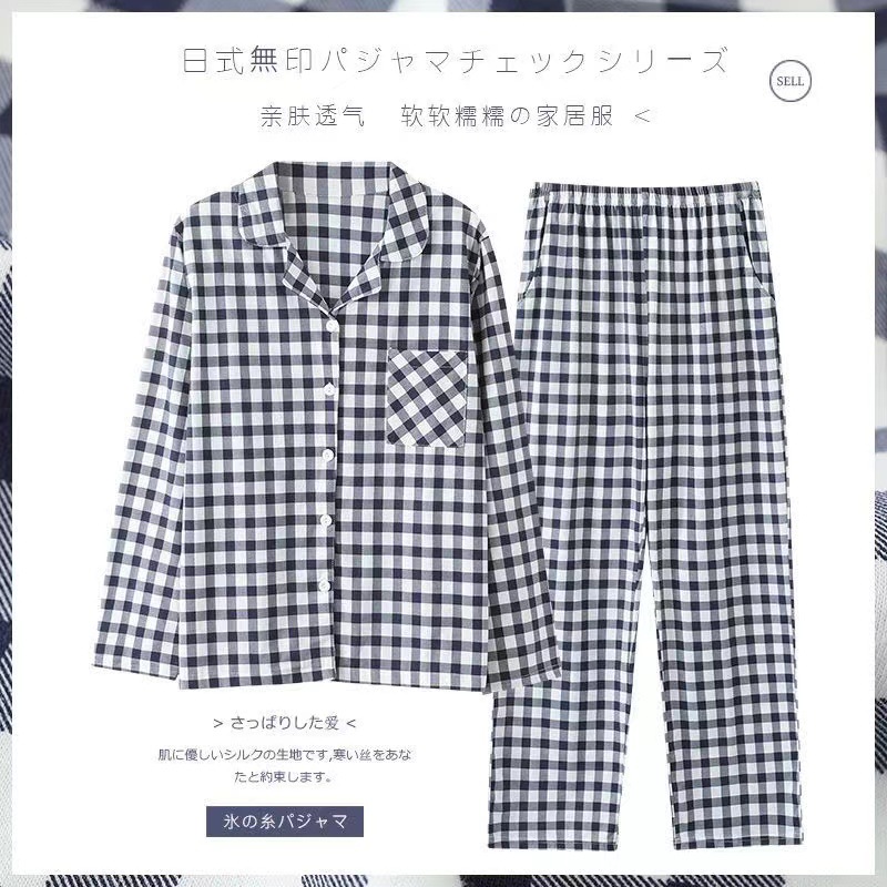 커플 잠옷 세트 일본식 심플 체크 무늬 코튼 여성 봄, 가을 옷깃 캐주얼 에어컨 룸 긴팔 홈웨어스토어 가기