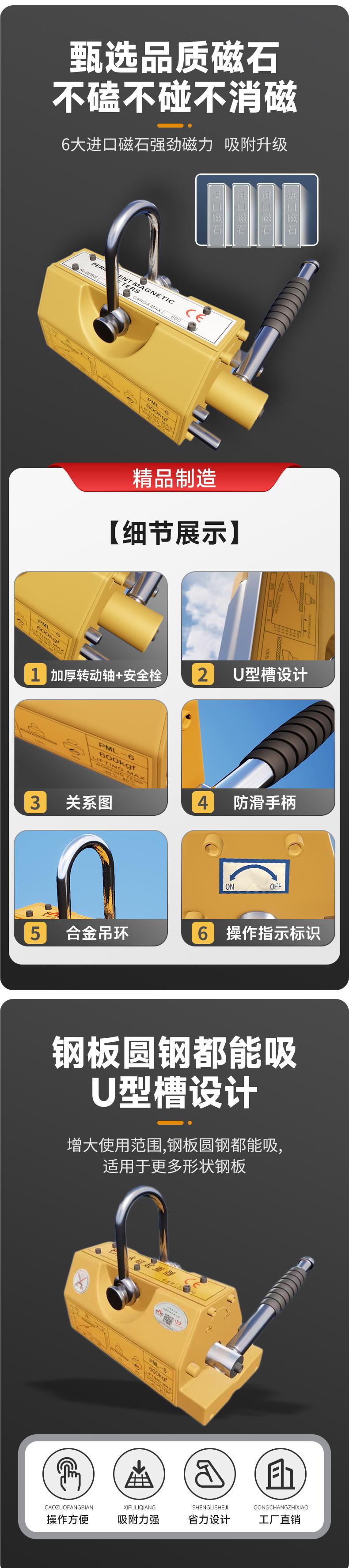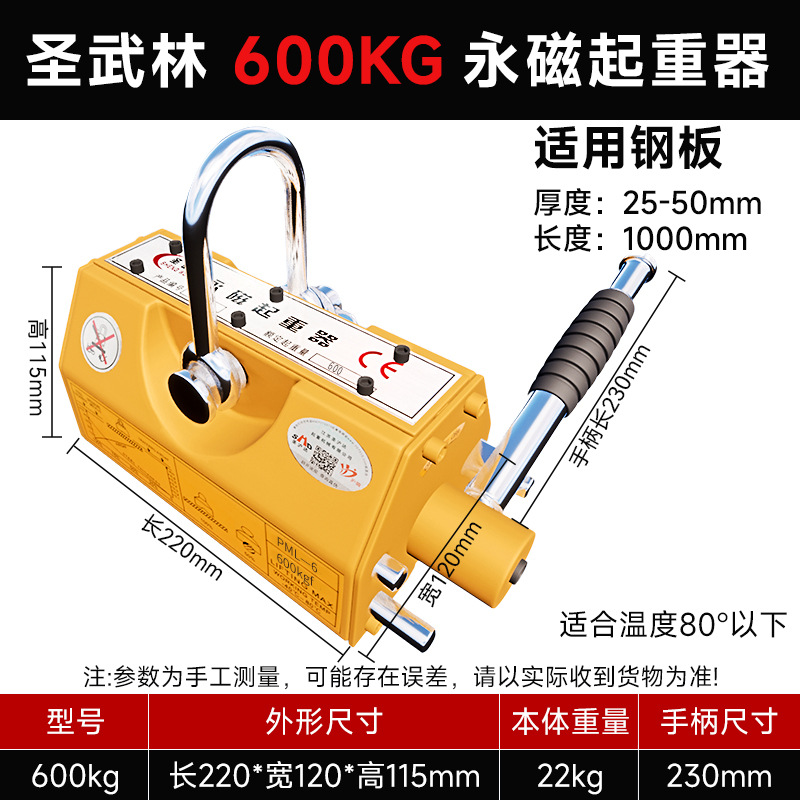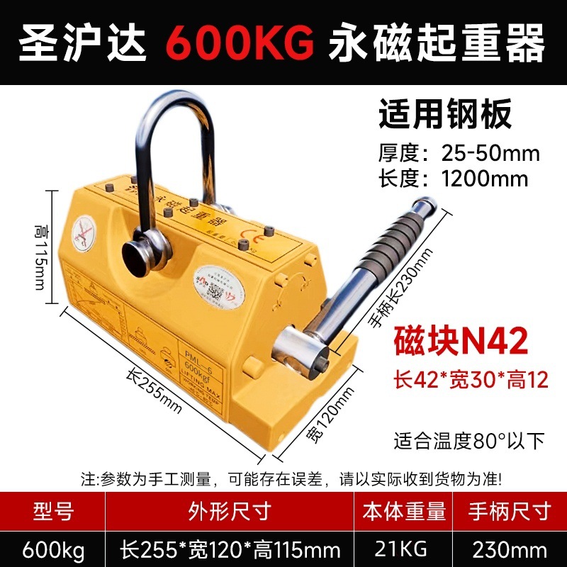 Shenghuda 영구 자석 크레인 강렬한 자기 크레인 400/600KG 흡입 컵 1/2T3/5 톤 자석 라운드 강판 걸이스토어 가기