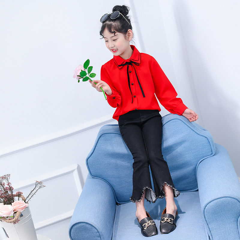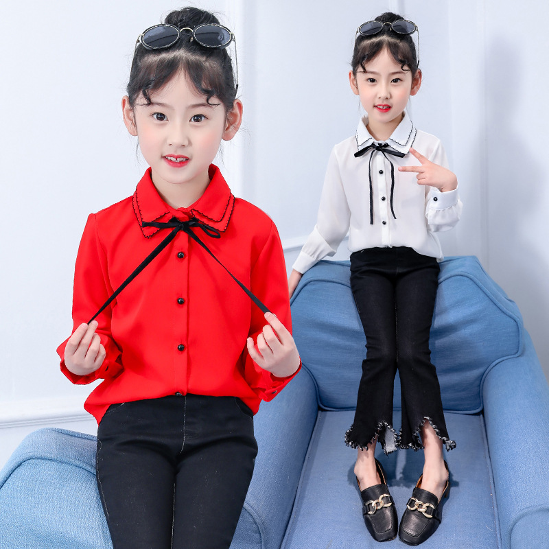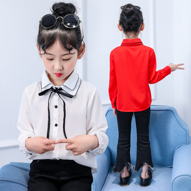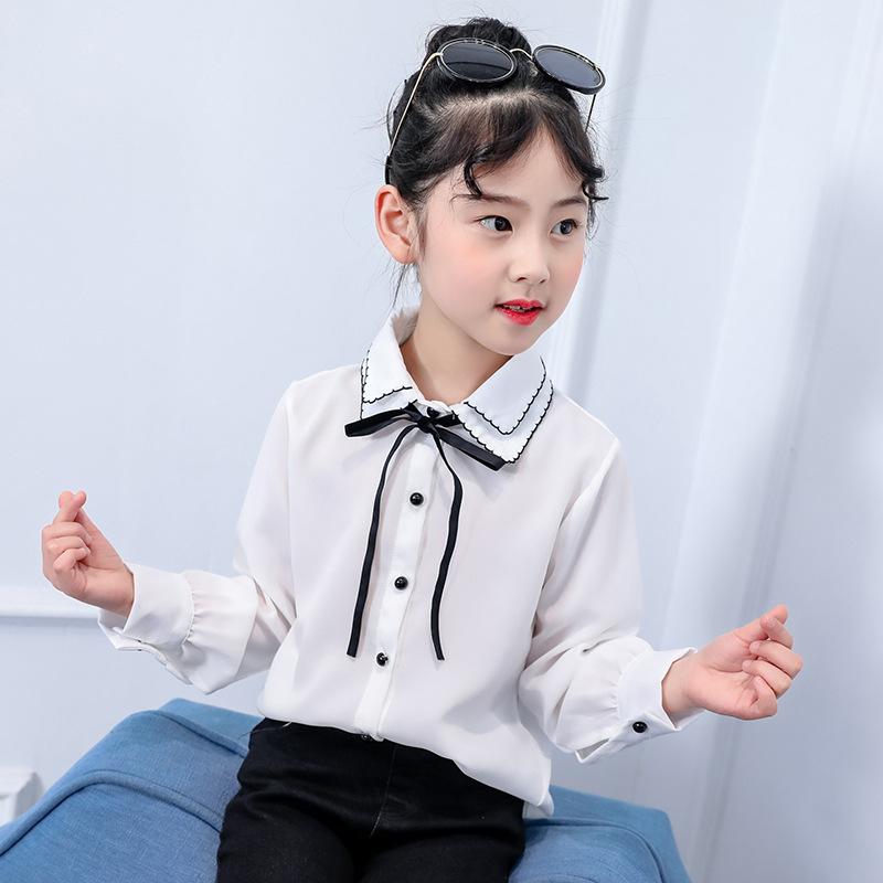 대외 무역 도매 소녀 셔츠 봄과 가을 큰 어린이 레이스 옷깃 쉬폰 긴 소매 얇은 셔츠 여성용 보물 기본 셔츠스토어 가기