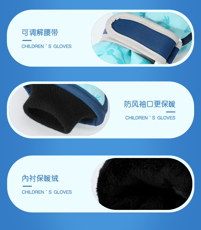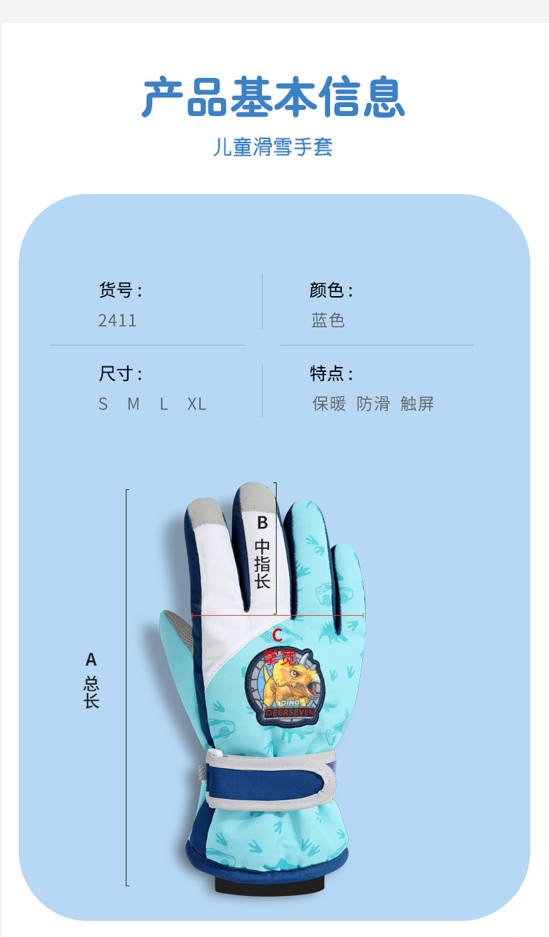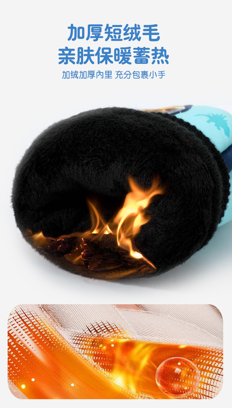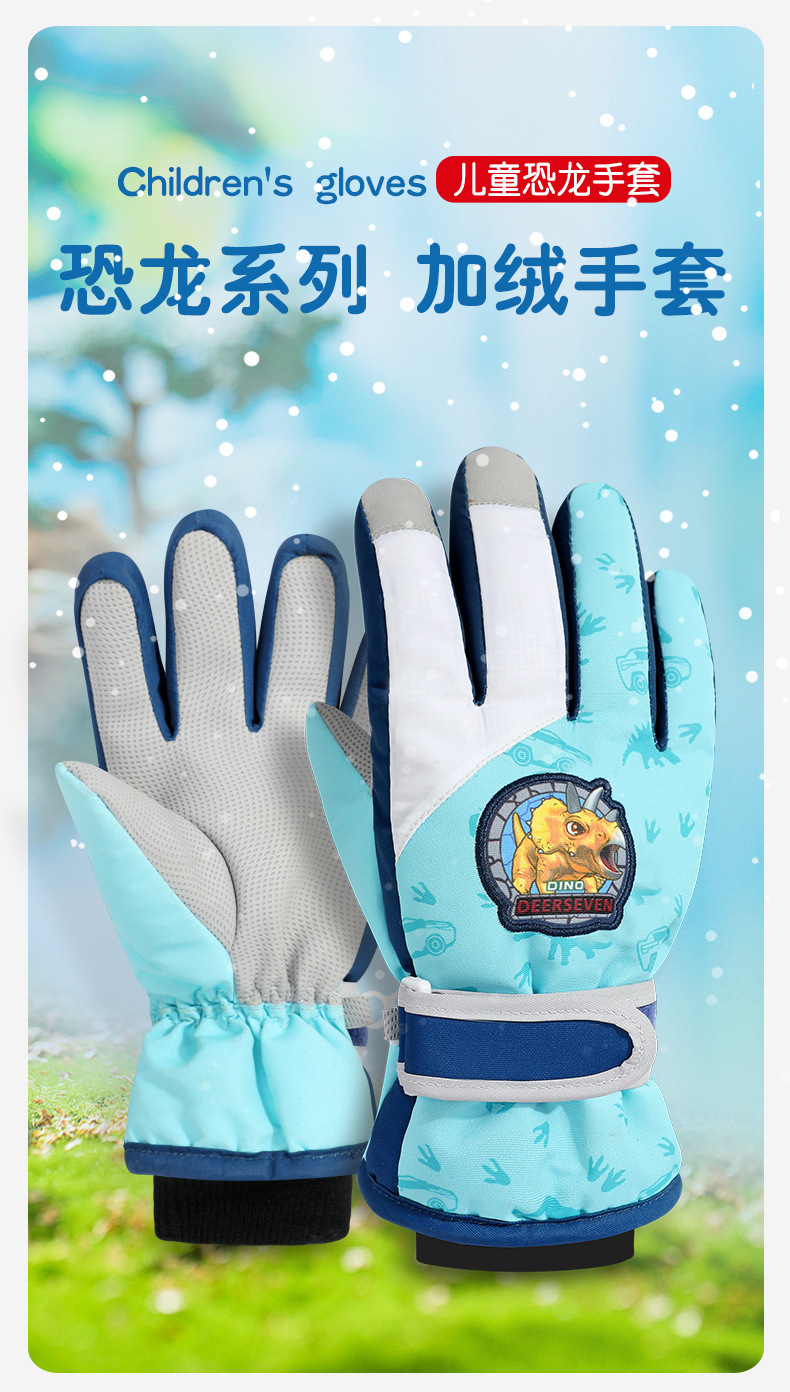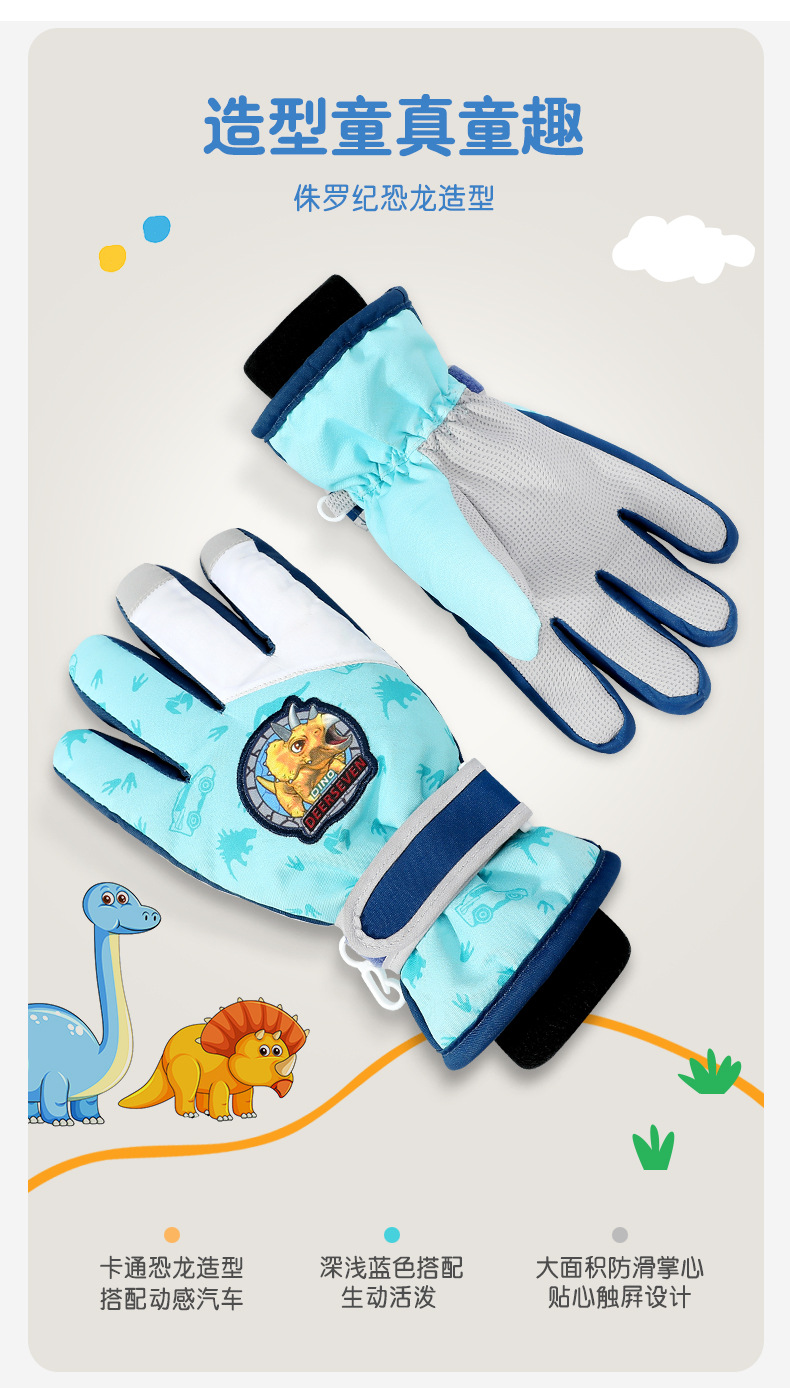 어린이 따뜻한 장갑 방풍 자전거 터치 스크린 방수 기모 5 손가락 공룡 타고 학생 스키 장갑