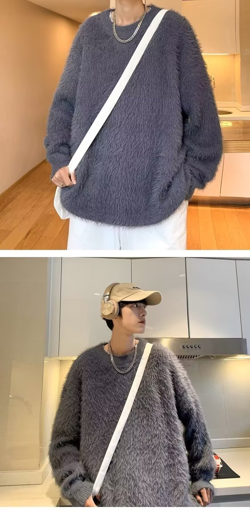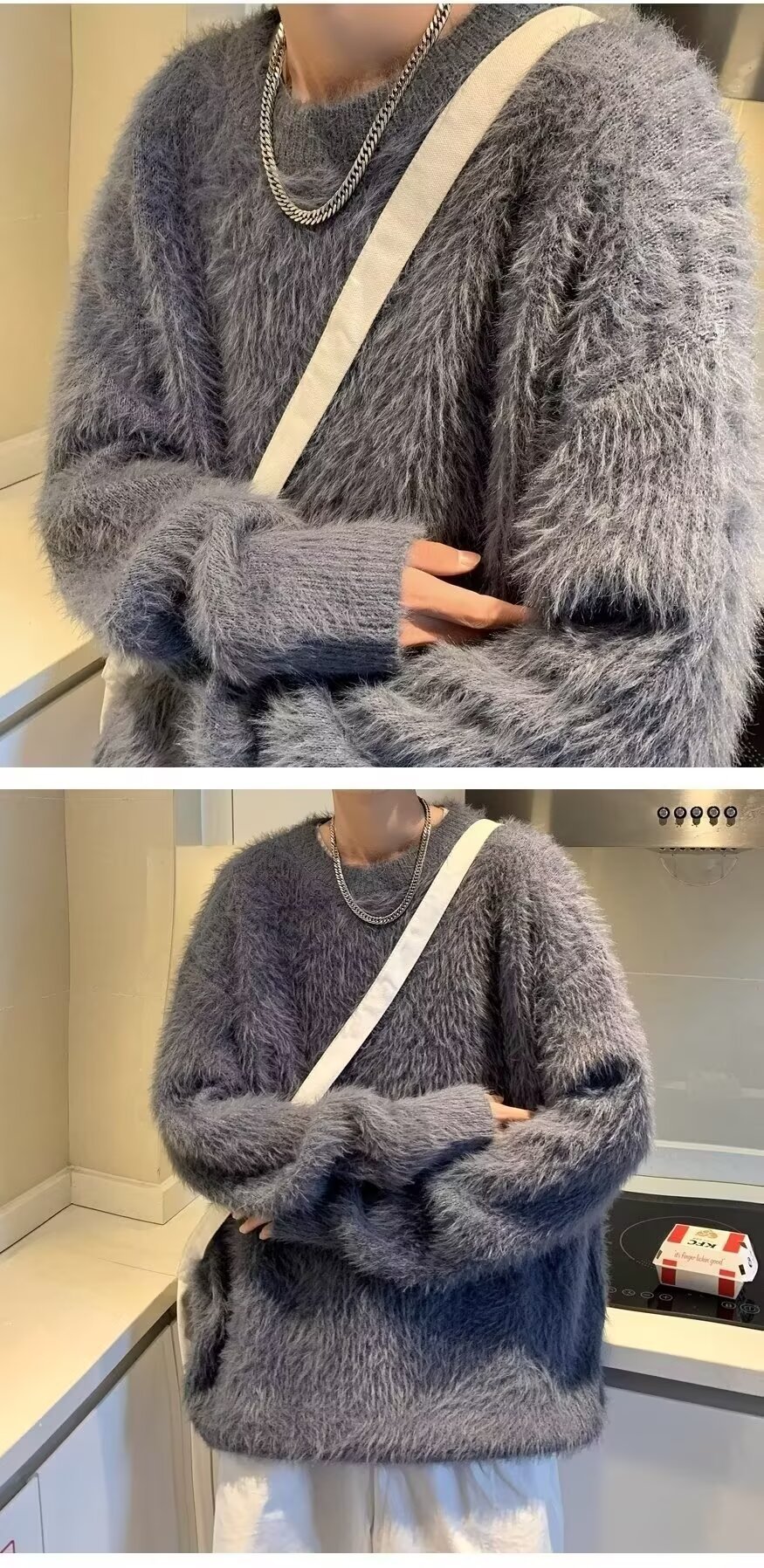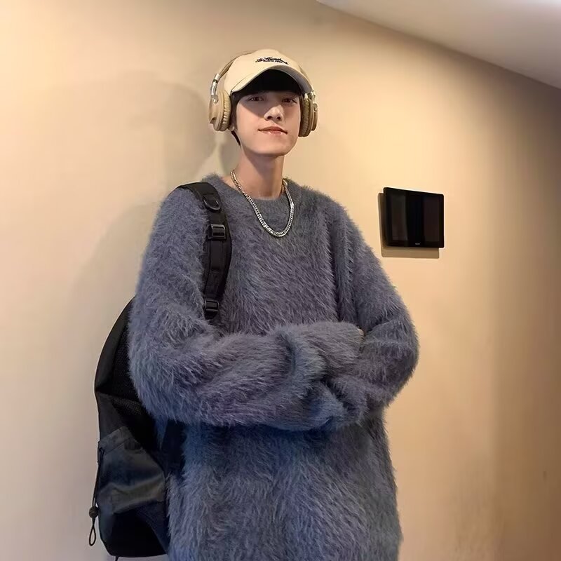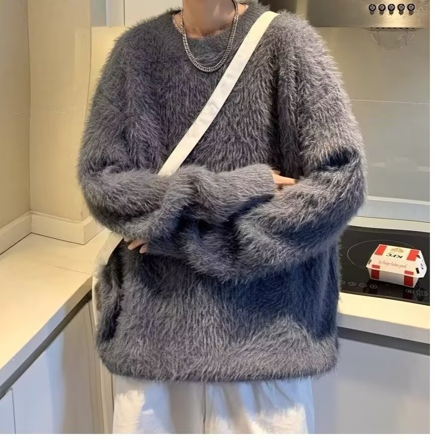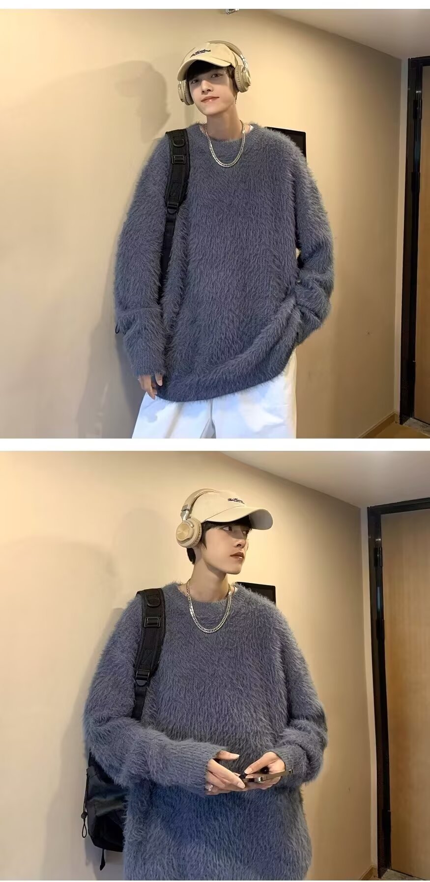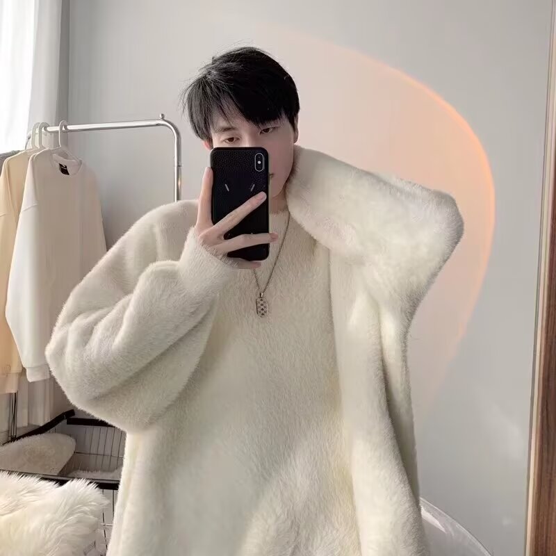 2024 년 가을과 겨울 트렌디 한 남자의 새로운 남자 크루 넥 스웨터 두꺼운 올 매치 솔리드 컬러 커플의 니트베이스 셔츠 탑