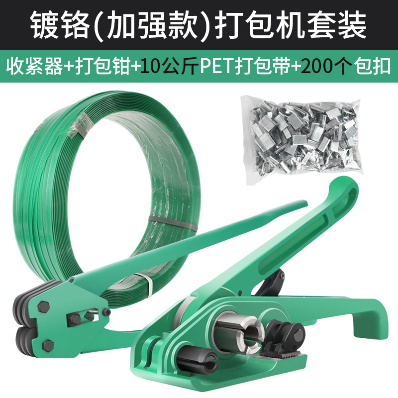• 크롬 도금 [향상된 버전] 포장기 + 10kg 포장 스트랩 + 200 커버 버클