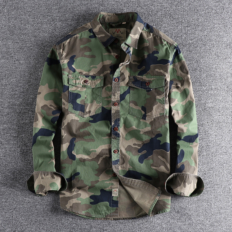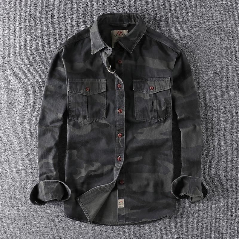 국경 간 대외 무역 세척 위장 미국 스타일 작업복 긴팔 셔츠 남자 더블 포켓 올 매치 캐주얼 군사 청소년 탑스토어 가기