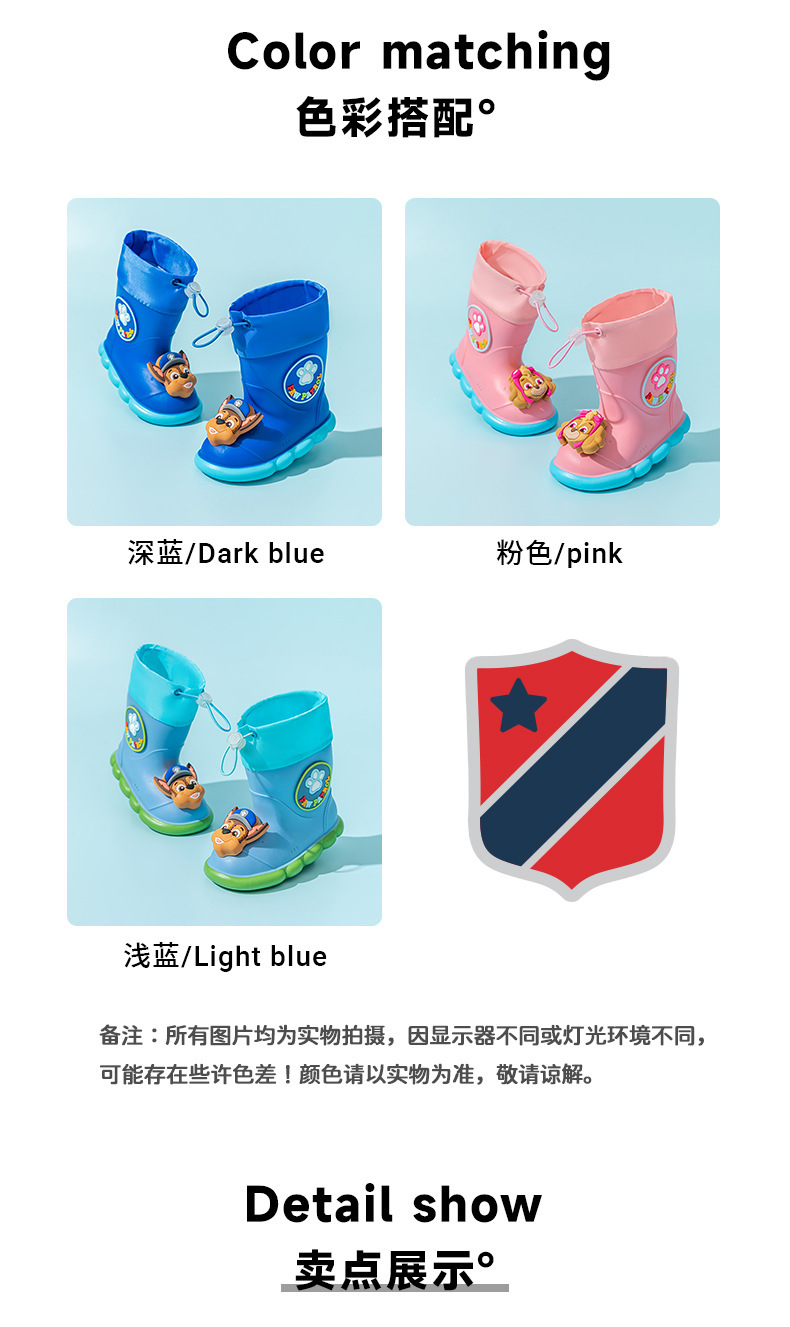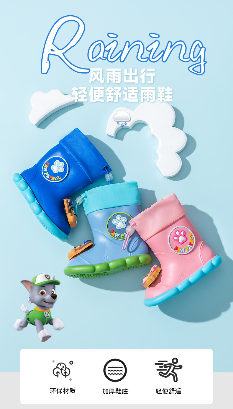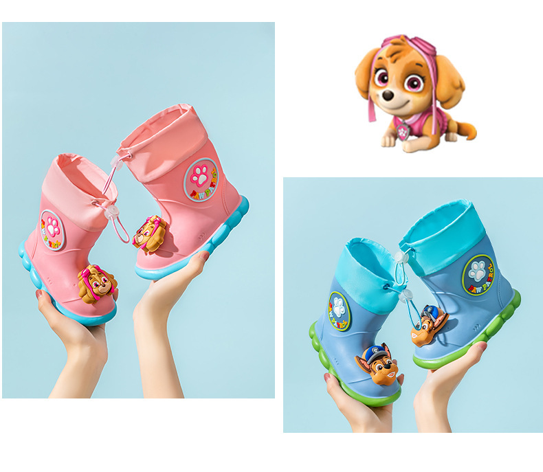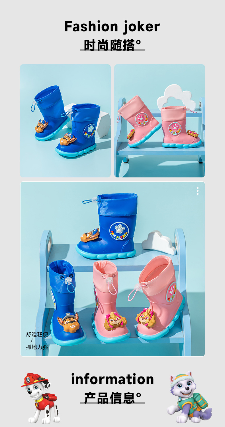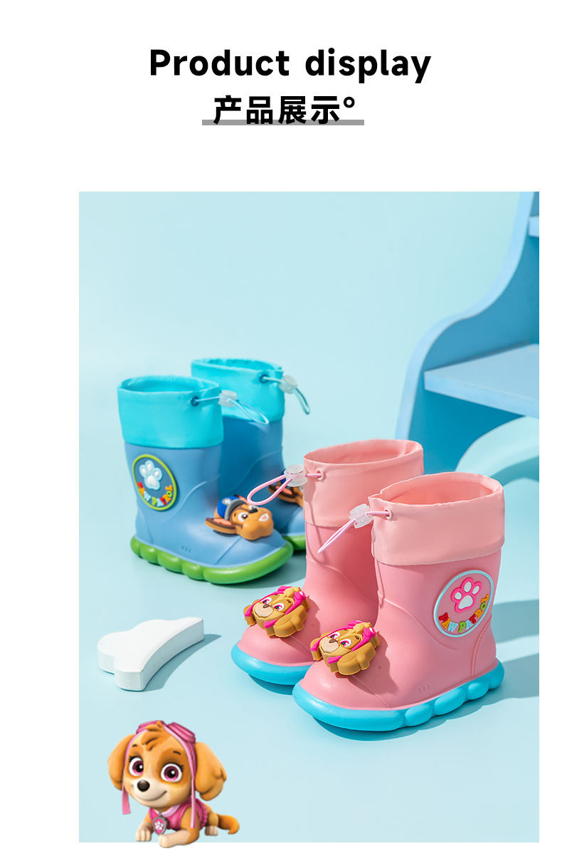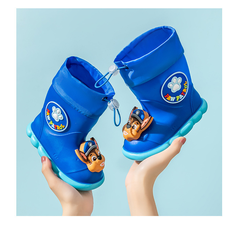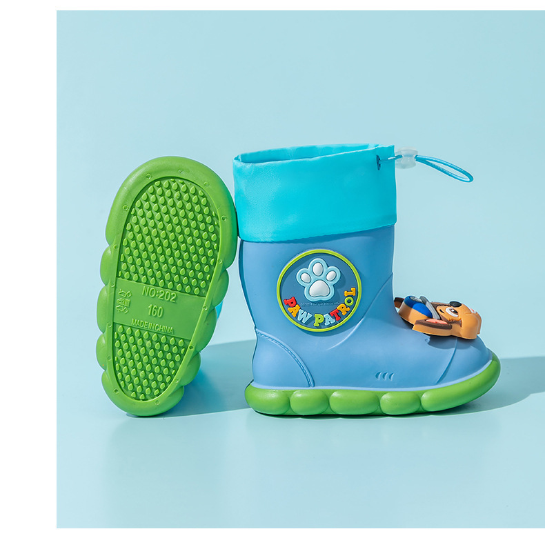 새로운 도착 왕 왕 팀 어린이 장화 초등학교 학생을위한 귀여운 만화 미끄럼 방지 방수 부츠 남성용 야외 베블 방수 신발스토어 가기