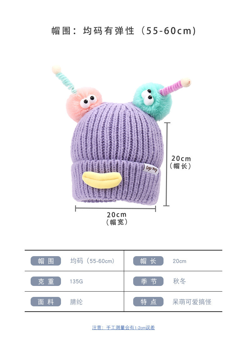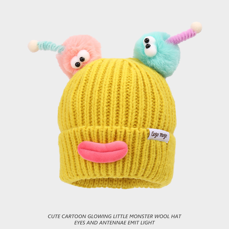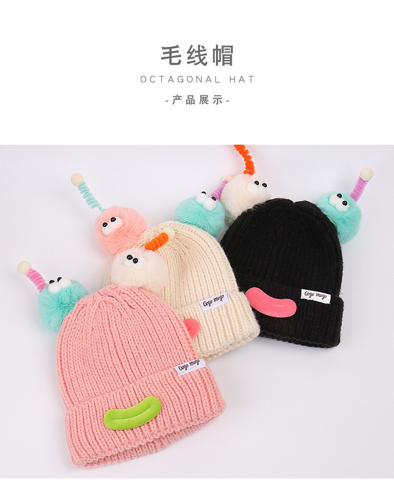 소시지 입 가을과 겨울 양모 모자 어린이 한국 만화 눈 촉수 남성과 여성 파티 따뜻한 니트 모자 도매스토어 가기