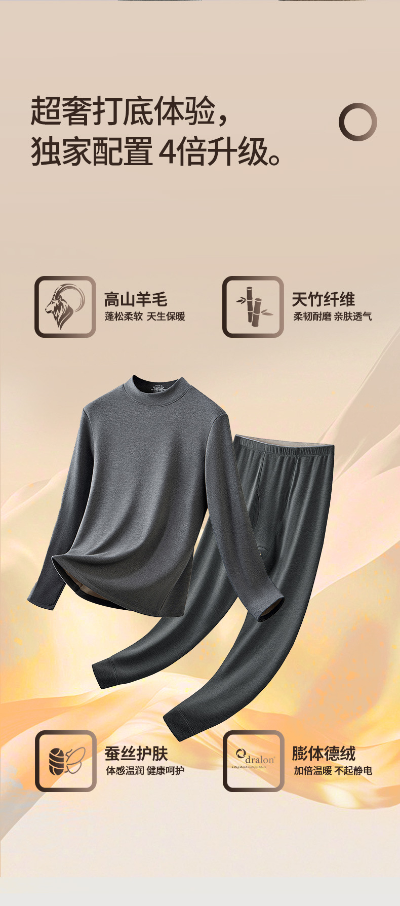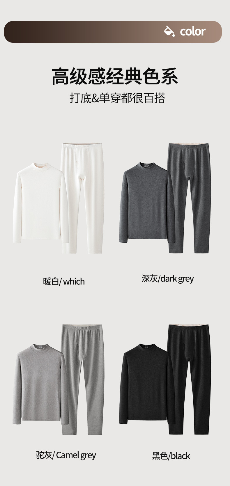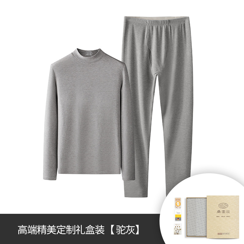 새로운 국경 가을과 겨울 남자 실크 양모 기모 두꺼운 열 속옷 높은 칼라베이스 가을 옷과 바지 세트