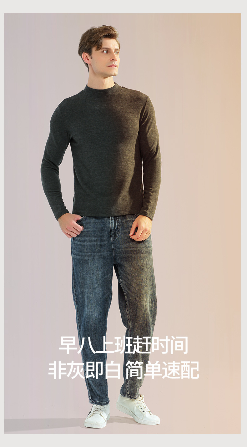 새로운 국경 가을과 겨울 남자 실크 양모 기모 두꺼운 열 속옷 높은 칼라베이스 가을 옷과 바지 세트스토어 가기