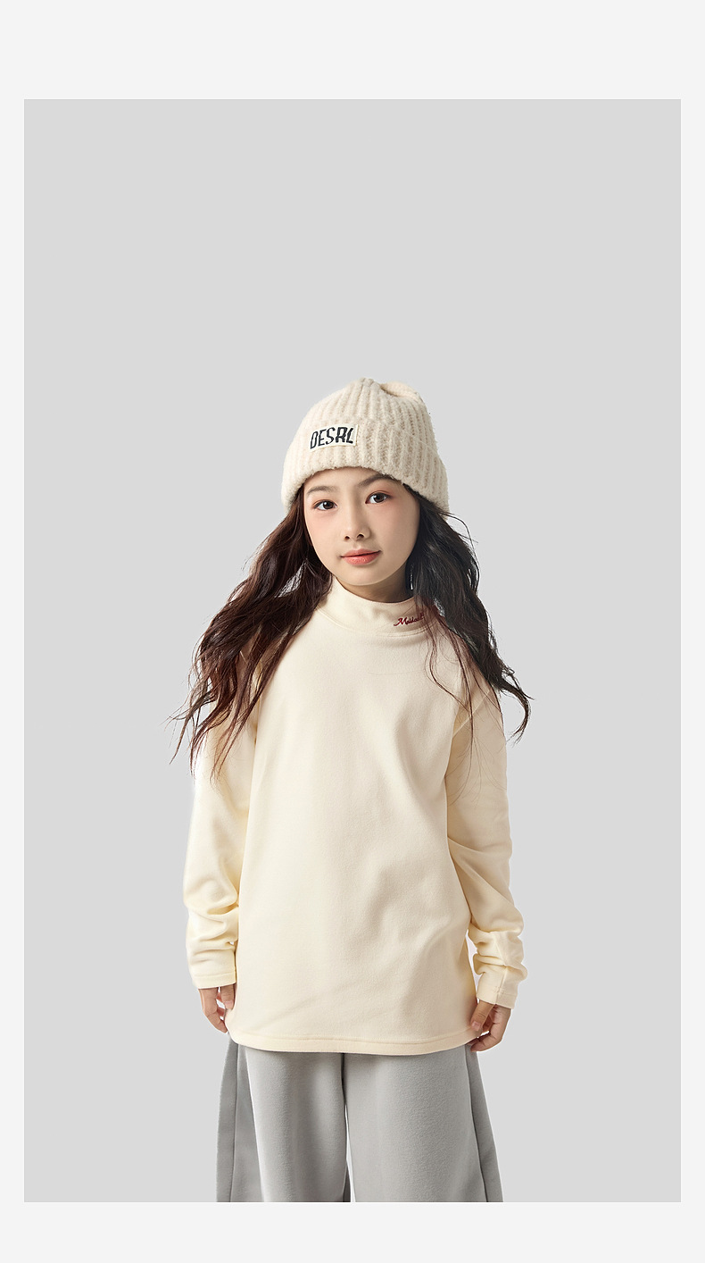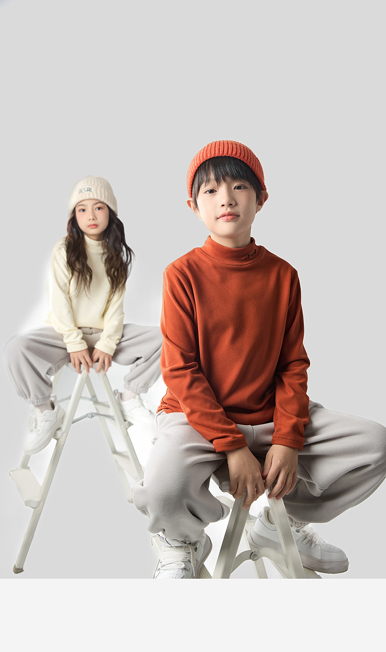 2025 가을 겨울 신상 하프 터틀넥 자수 아동용 독일산 벨벳 이너웨어 남아 여아용 보온 상의 도매스토어 가기