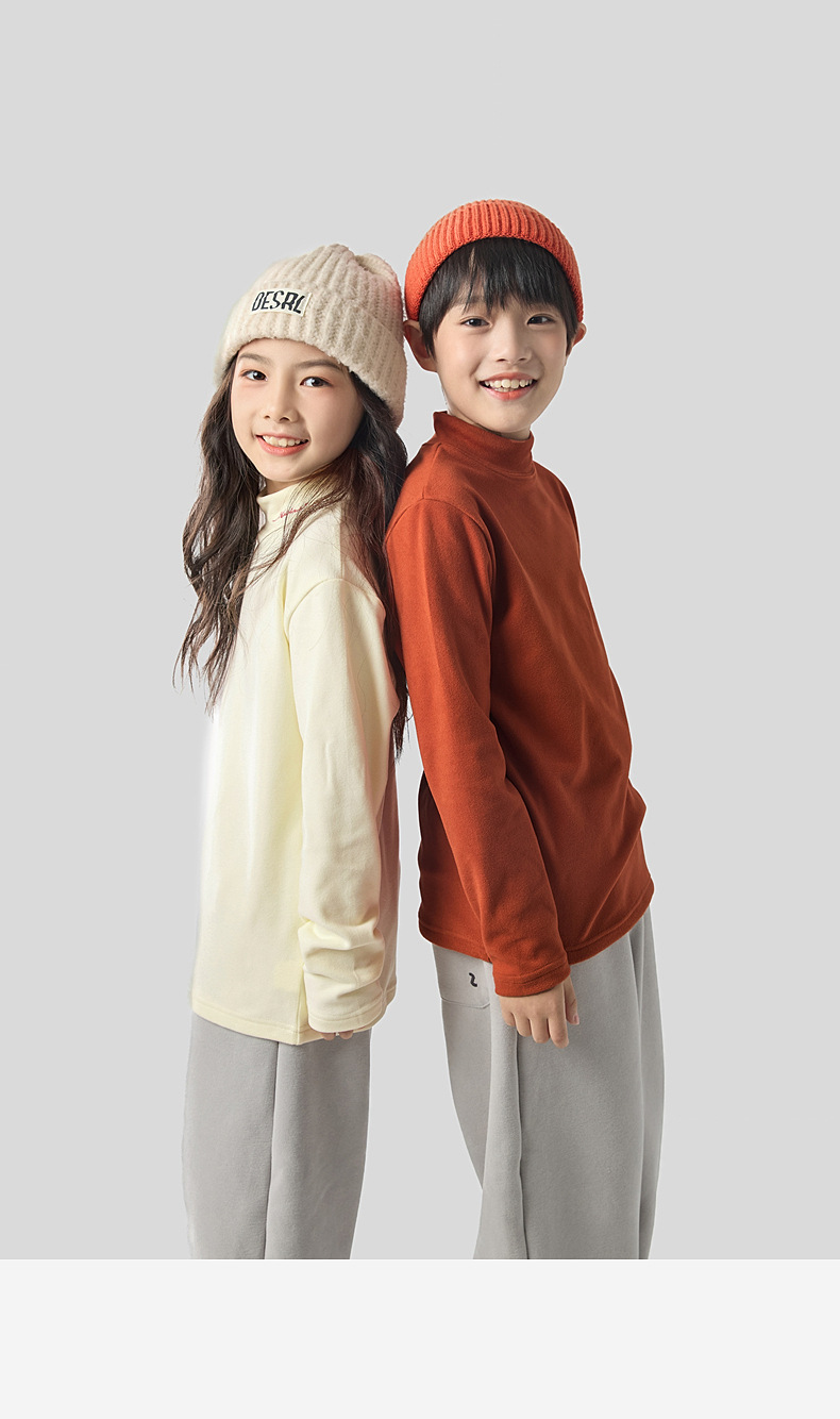 2025 가을 겨울 신상 하프 터틀넥 자수 아동용 독일산 벨벳 이너웨어 남아 여아용 보온 상의 도매