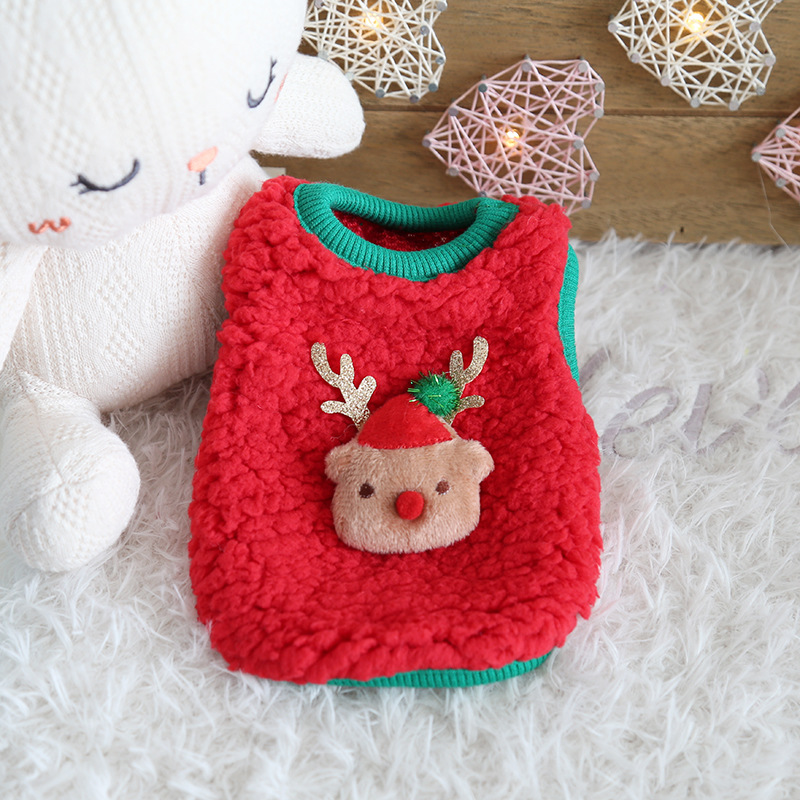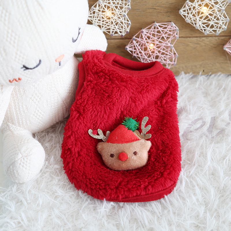 Petstyle 크리스마스 우유 개 옷 귀여운 따뜻한 벨벳 강아지 강아지 고양이 옷 신생아 고양이