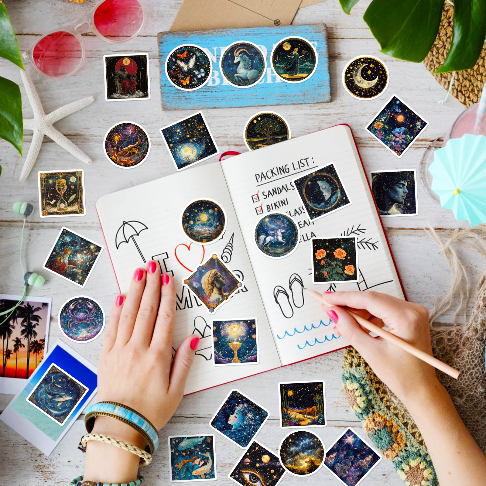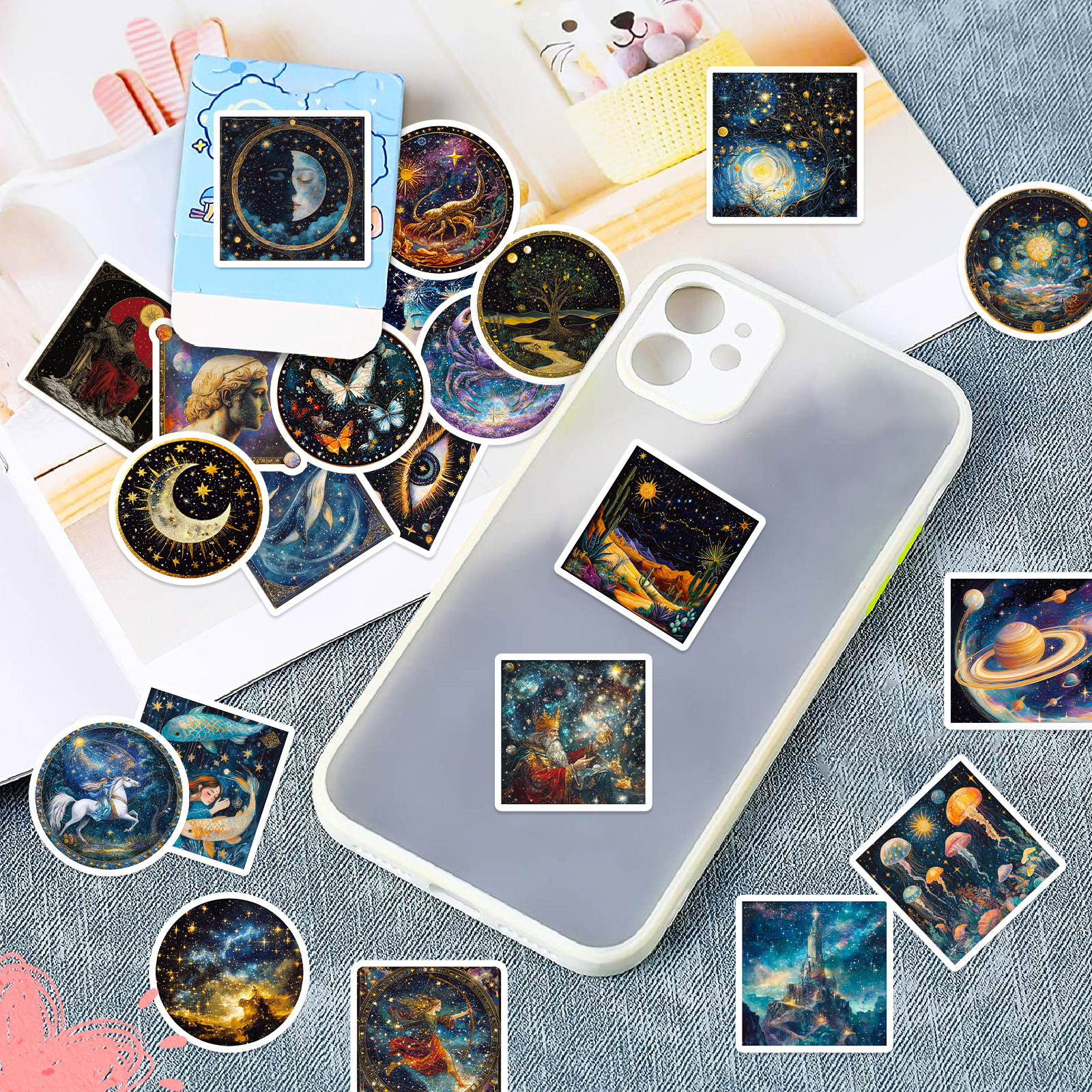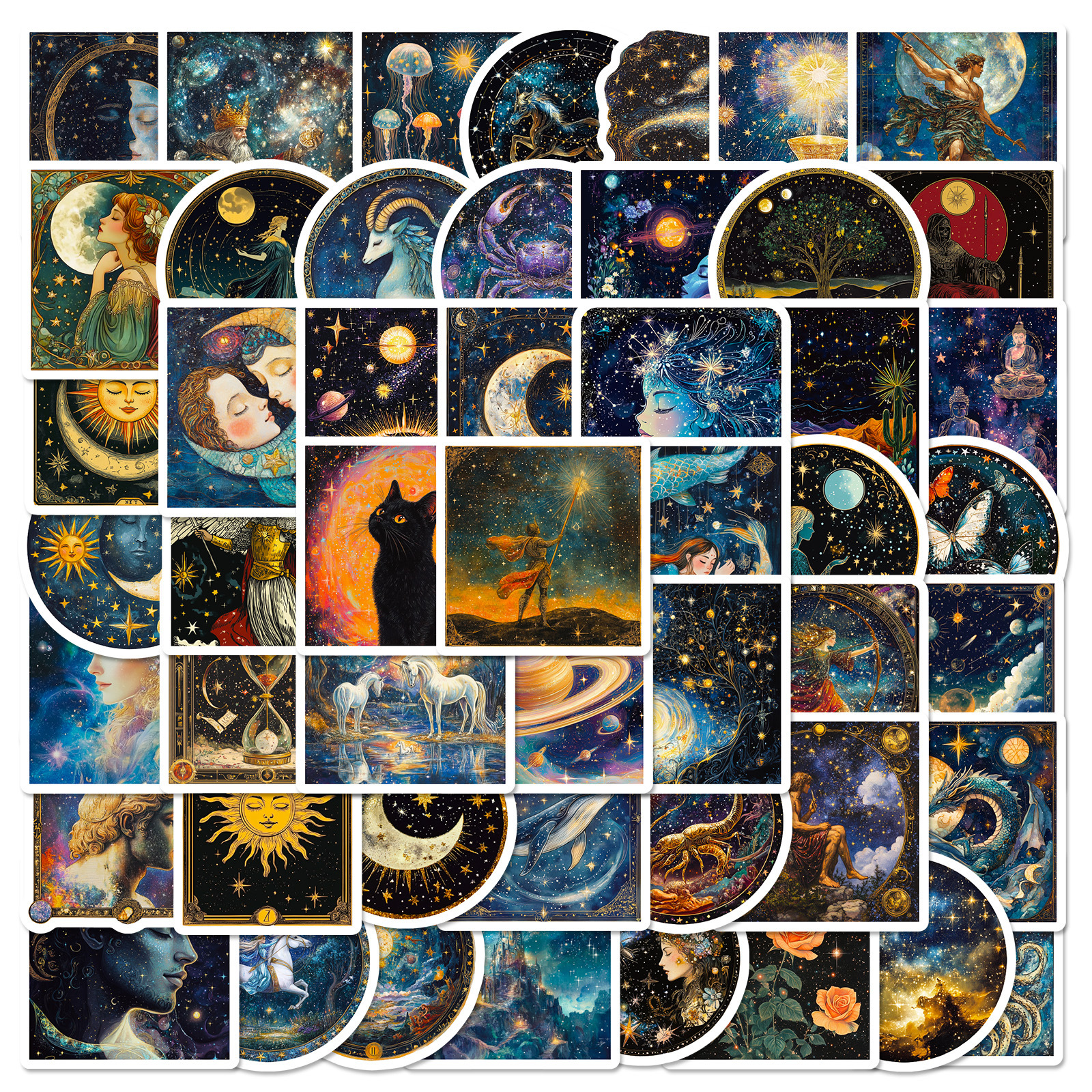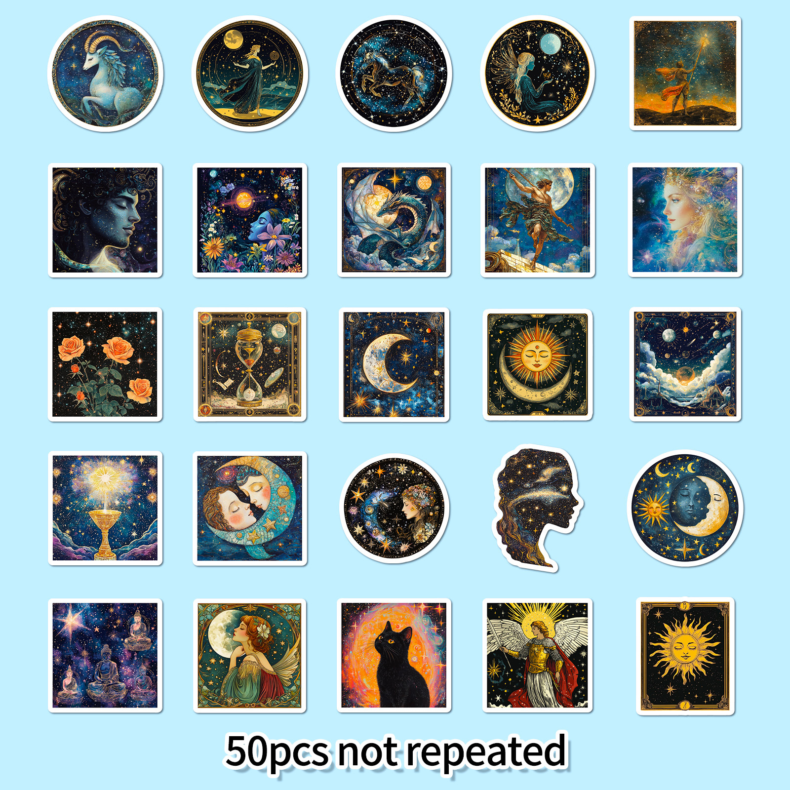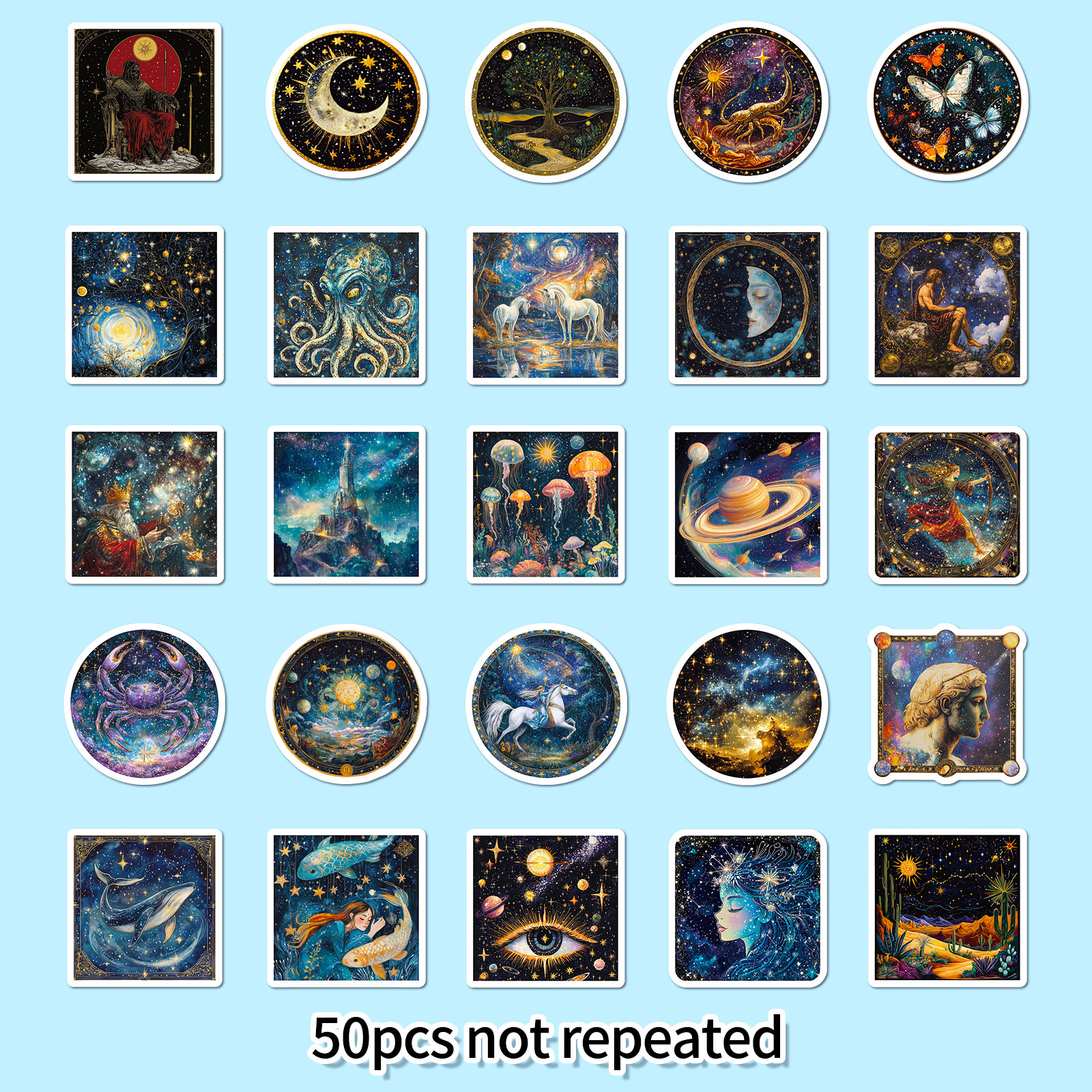 50 판타지 우주 별 신화 시리즈 장식 스티커 태양 달 해파리 행성 반복 스티커 없음스토어 가기